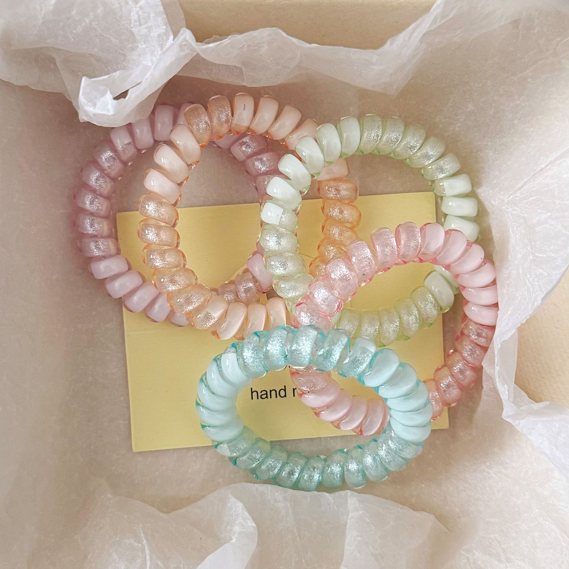 여름 신선한 반짝이 젤리 컬러 전화 라인 헤어 링 한국 스타일 하이 뷰티 스위트 소녀 스타일 포니 테일 헤어 로프 헤어 액세서리