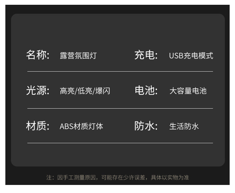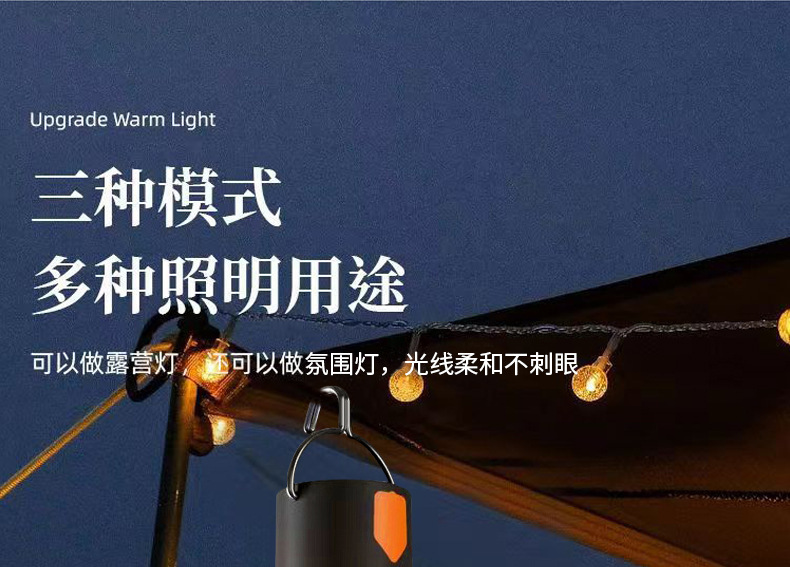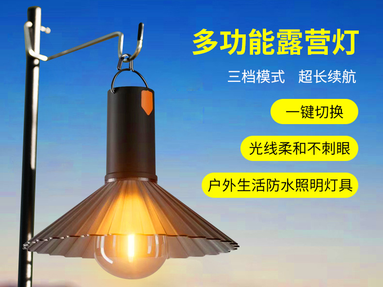 국경 간 새로운 야외 캠핑 조명 캠프 조명 USB 충전 텐트 조명 야외 캠핑 비상 조명 분위기 조명