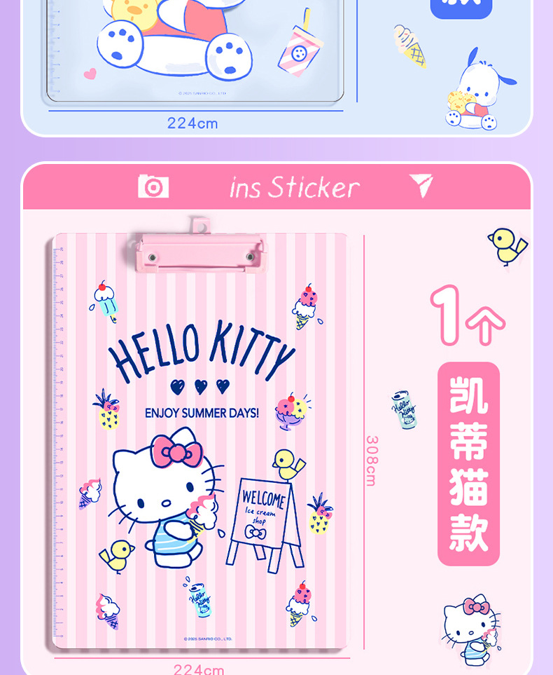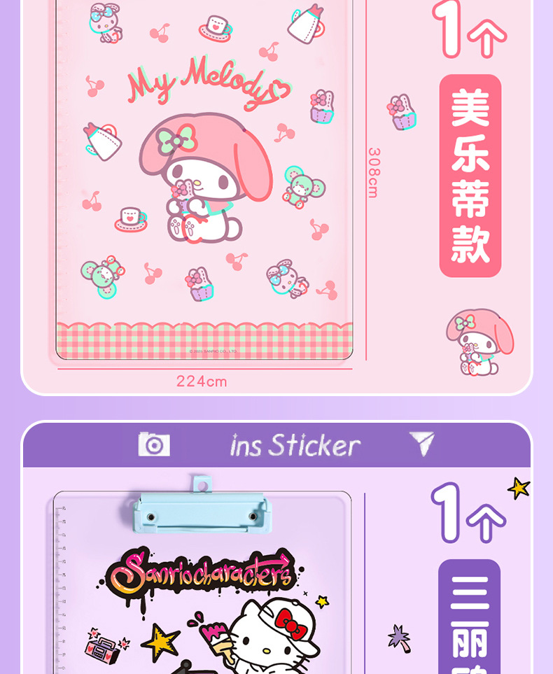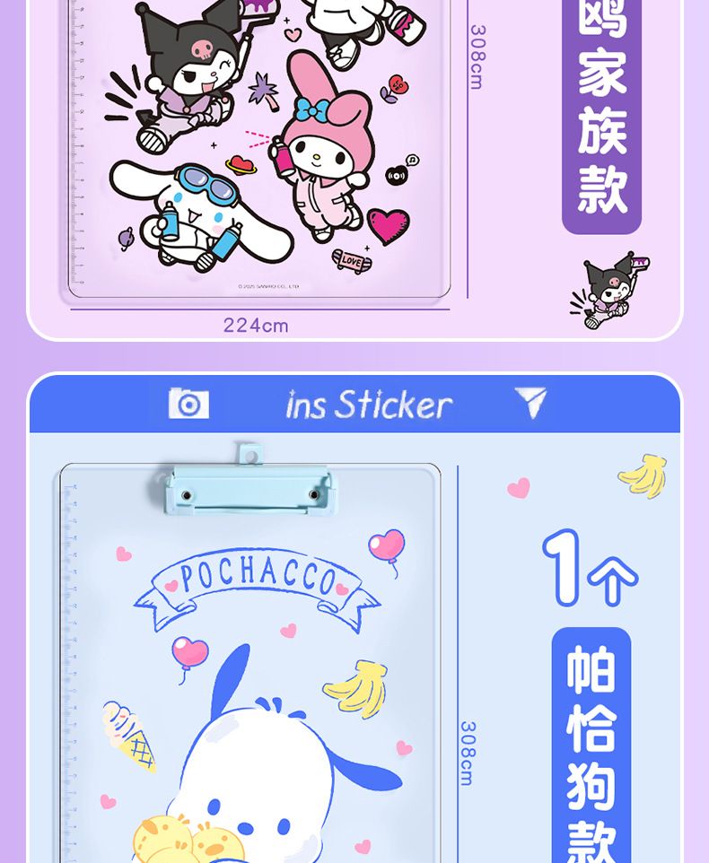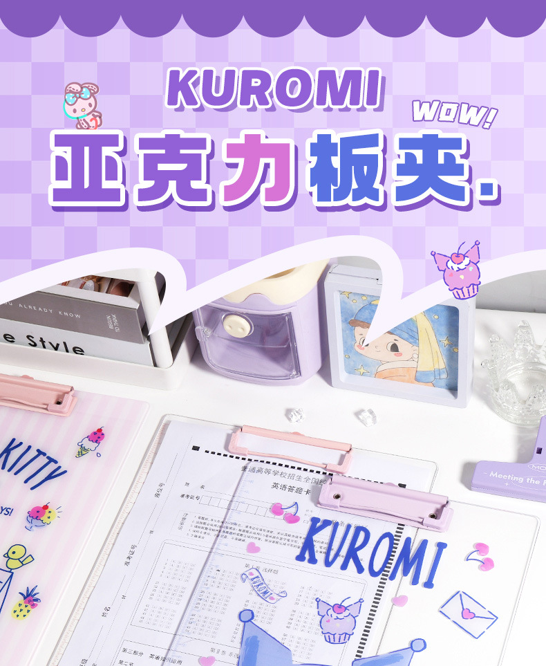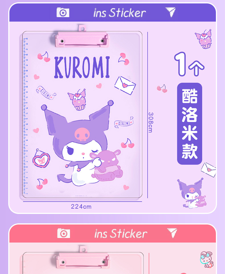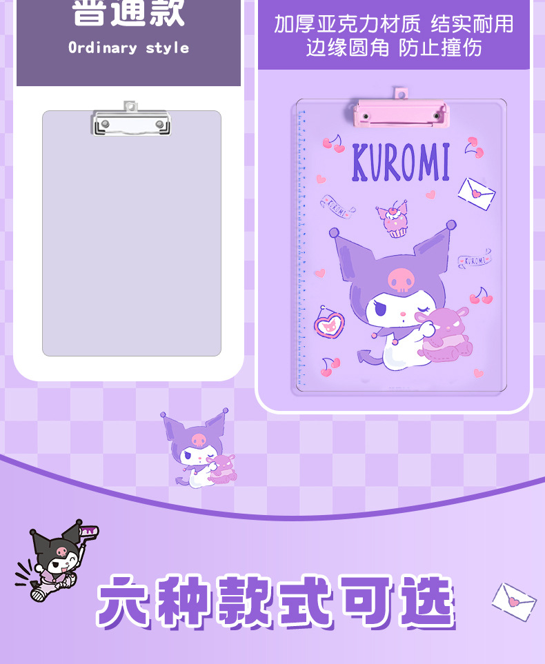 산리오 부목 아크릴 문구 학생 보드 클립 쿨로 미 귀여운 A4 데이터 테스트 종이 쓰기 스케치 패드스토어 가기