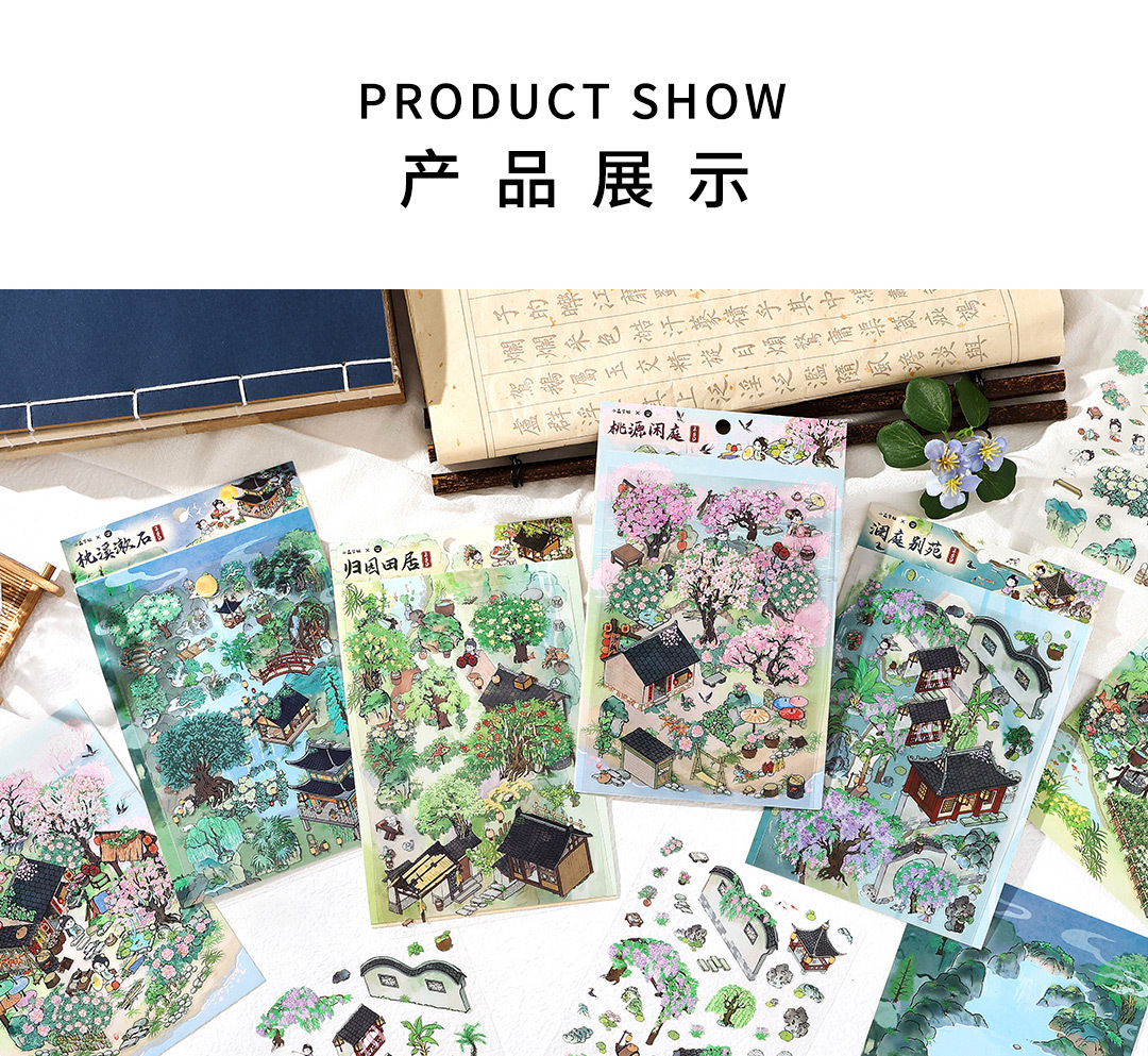 Inell. me 내 오두막 네 번째 폭탄 시리즈 PET 화이트 카드 2.5D 조경 스티커 3 에 Lanting Bie Garden