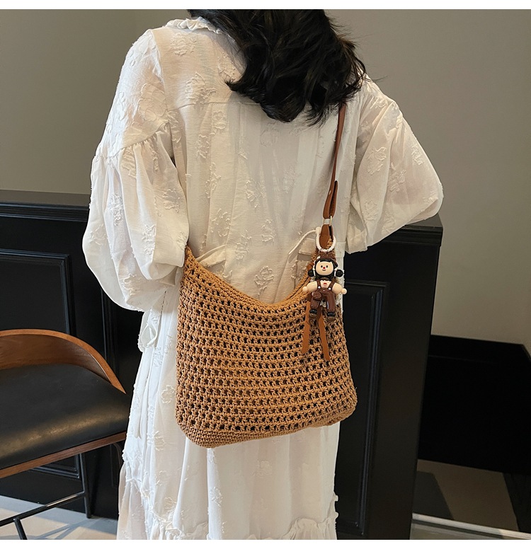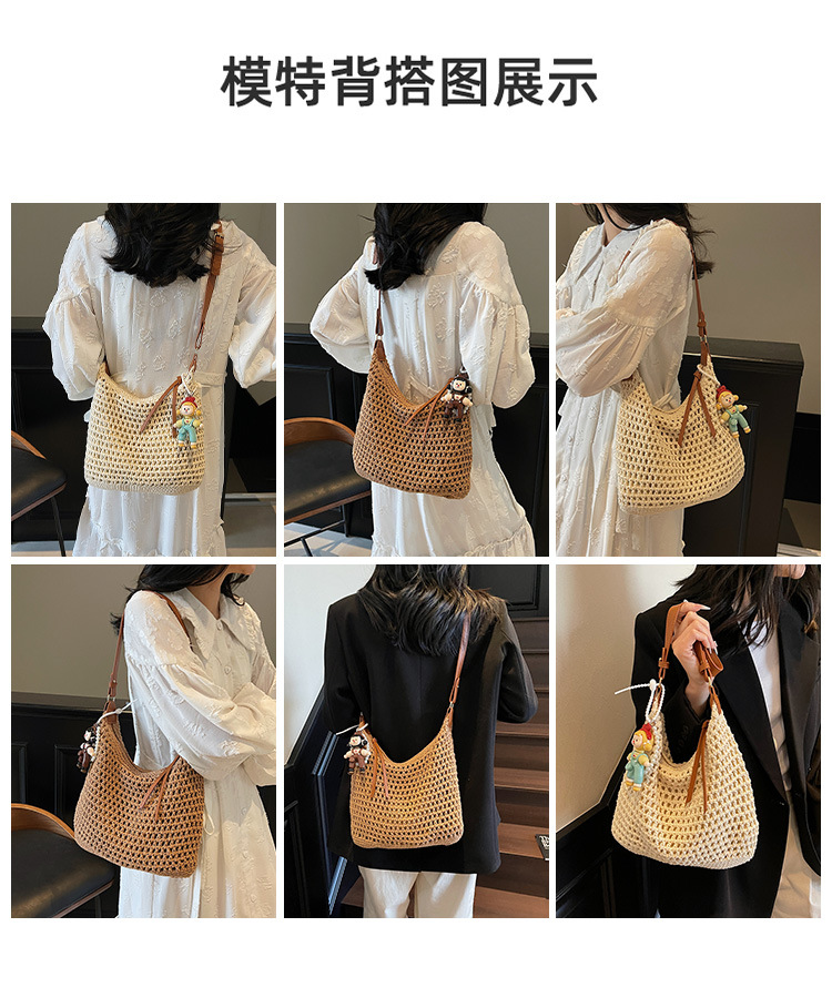 여성을위한 여름 밀짚 가방 2025 여름 새로운 유행 어깨 해변 다목적 비치 가방 여성을위한 숲 밀짚 가방 짠 가방스토어 가기