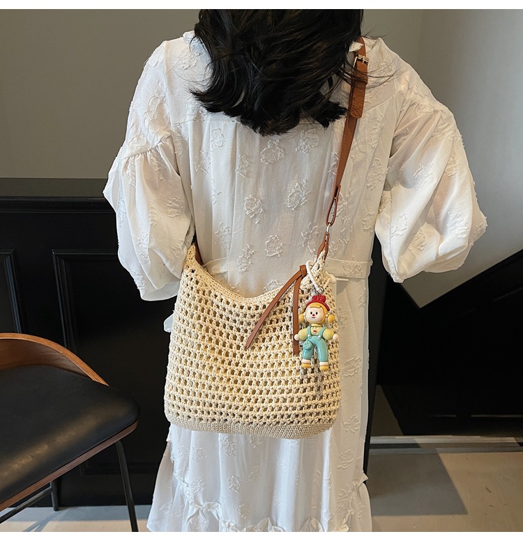 여성을위한 여름 밀짚 가방 2025 여름 새로운 유행 어깨 해변 다목적 비치 가방 여성을위한 숲 밀짚 가방 짠 가방
