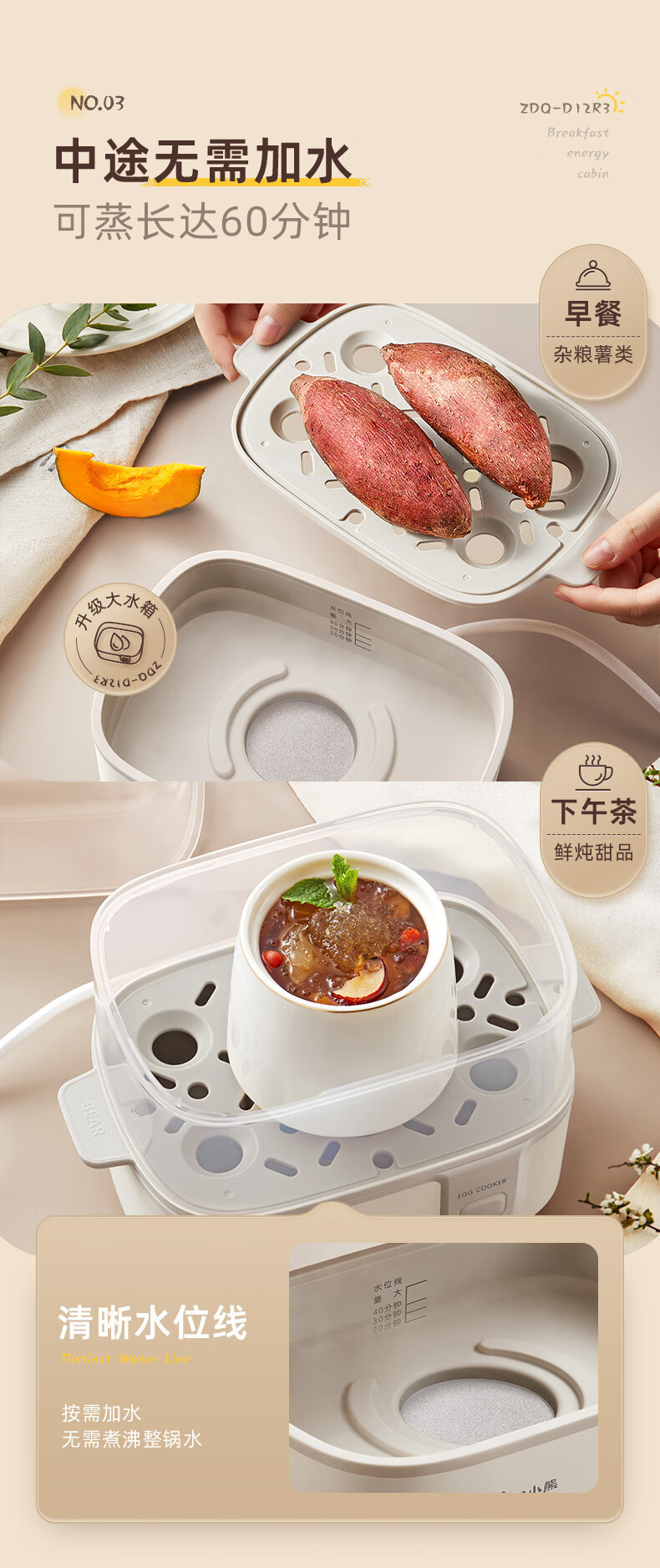 곰 ZDQ-D12R3 계란찜기 계란찜기 더블 레이어 가정용 다기능 아침 계란찜 미니