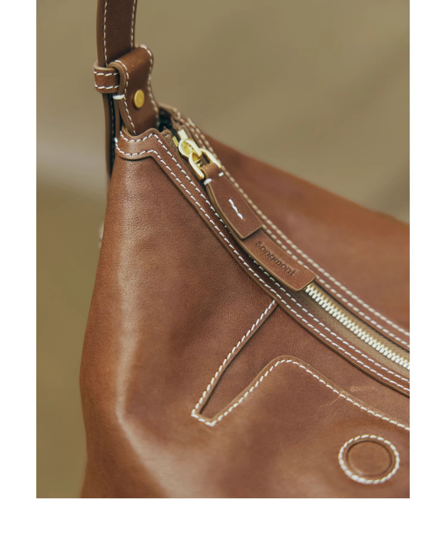 Songmont Mountain Loose 추적 시리즈 얕은 호보 가방 야채 태닝 Cowhide 통근자 언더암 가방 여성용 핸드백스토어 가기