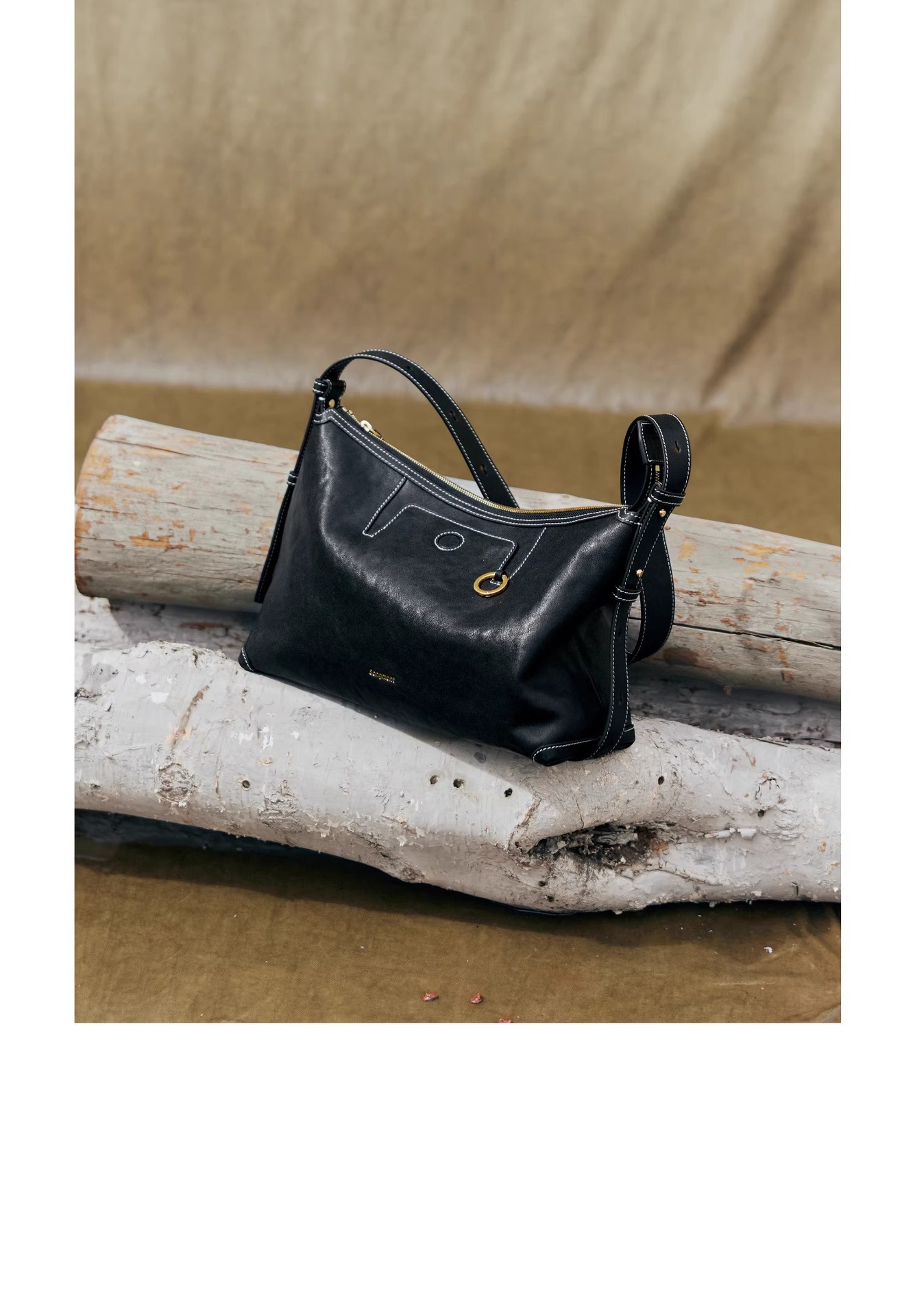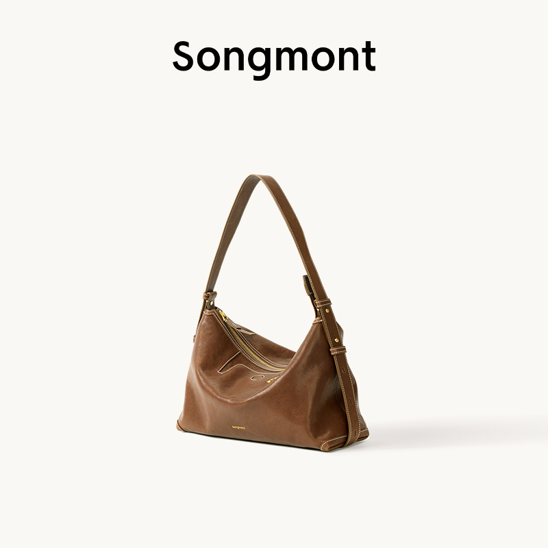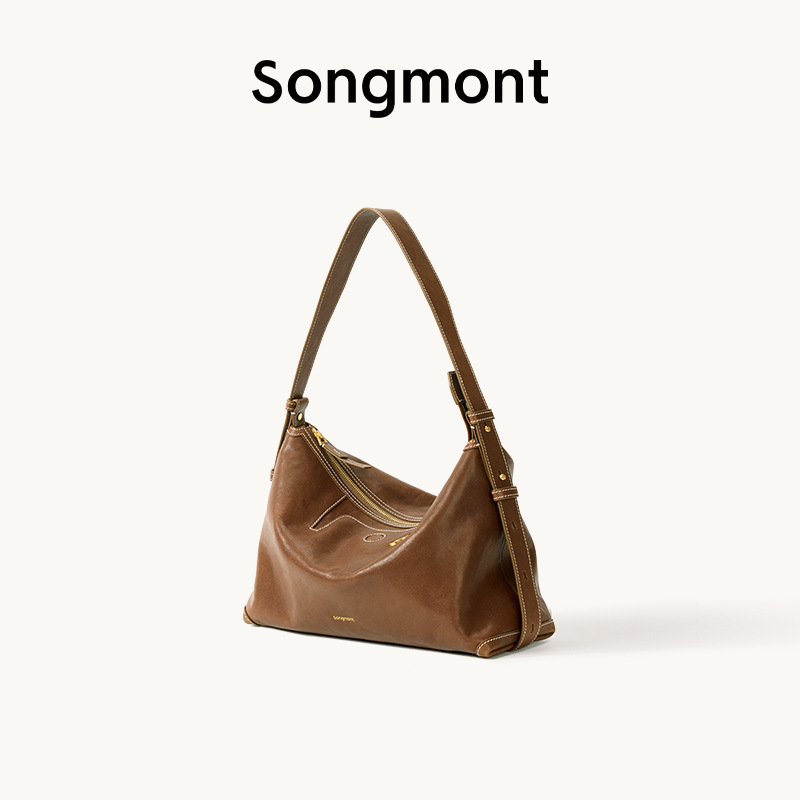 Songmont Mountain Loose 추적 시리즈 얕은 호보 가방 야채 태닝 Cowhide 통근자 언더암 가방 여성용 핸드백
