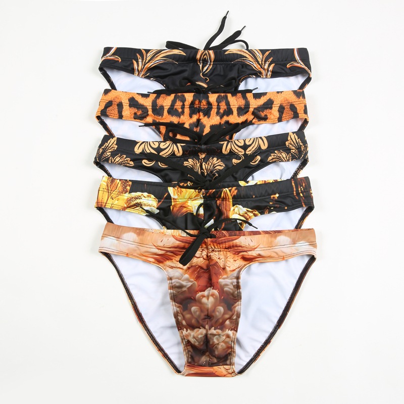 새로운 수영복 남자 수영 트렁크 연습 수영 바지 남자 편안한 고탄성 패션 인쇄 낮은 허리 남자 삼각형 수영 trunks