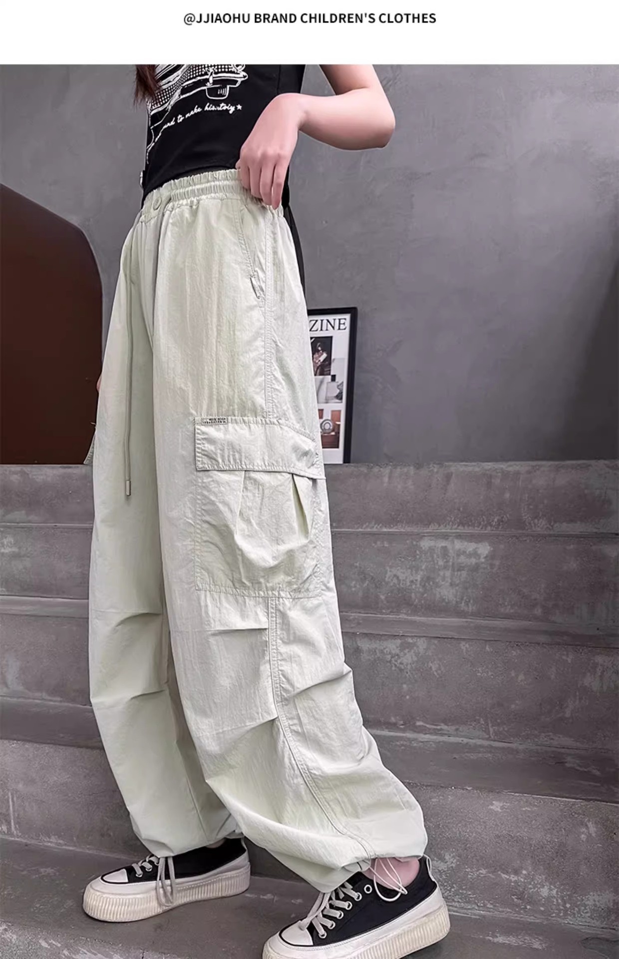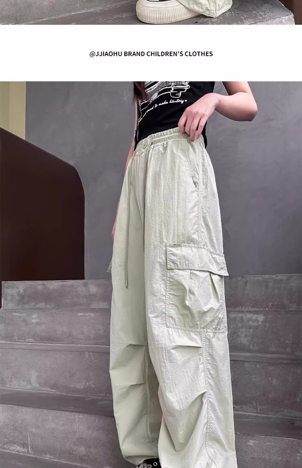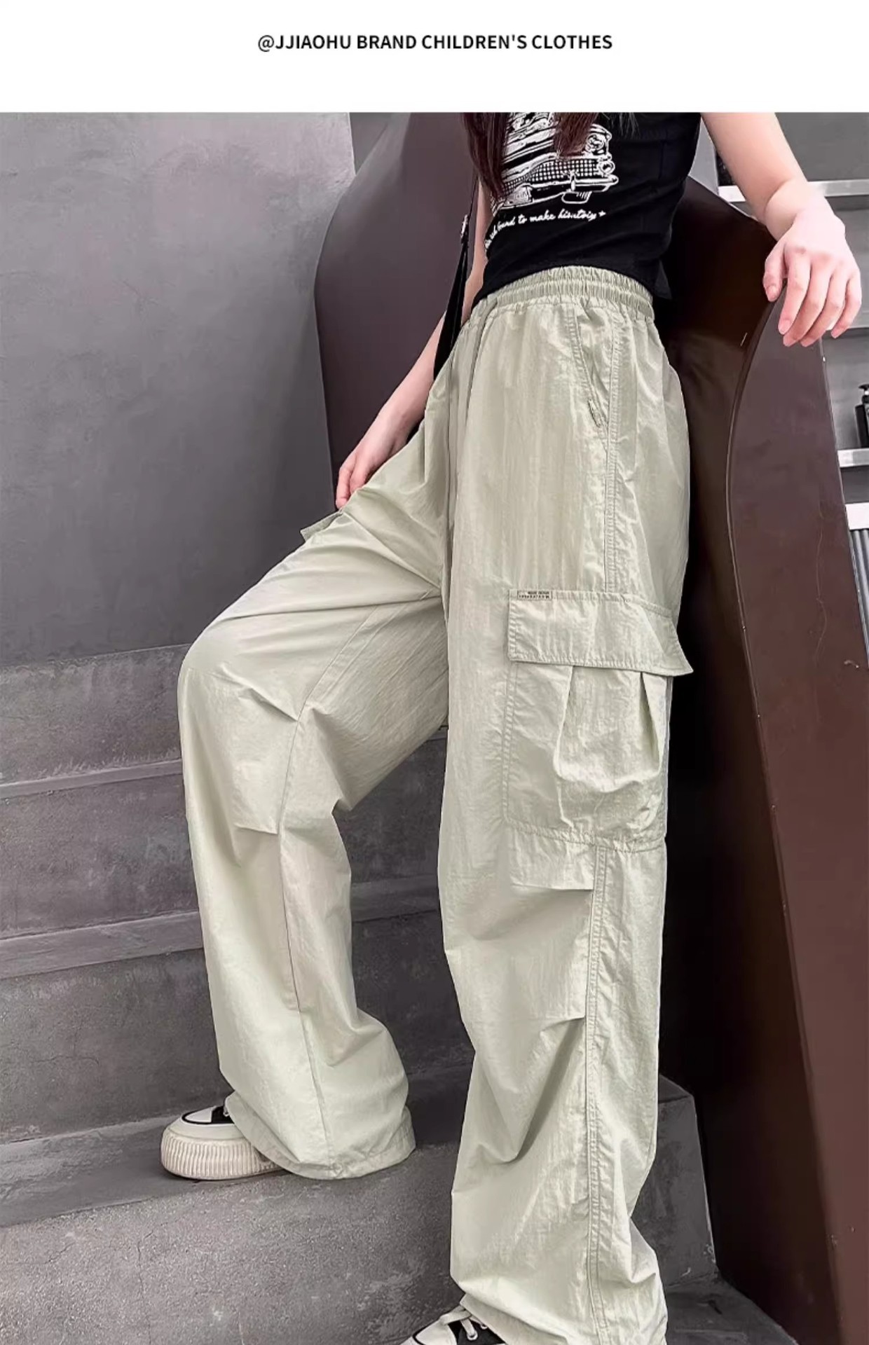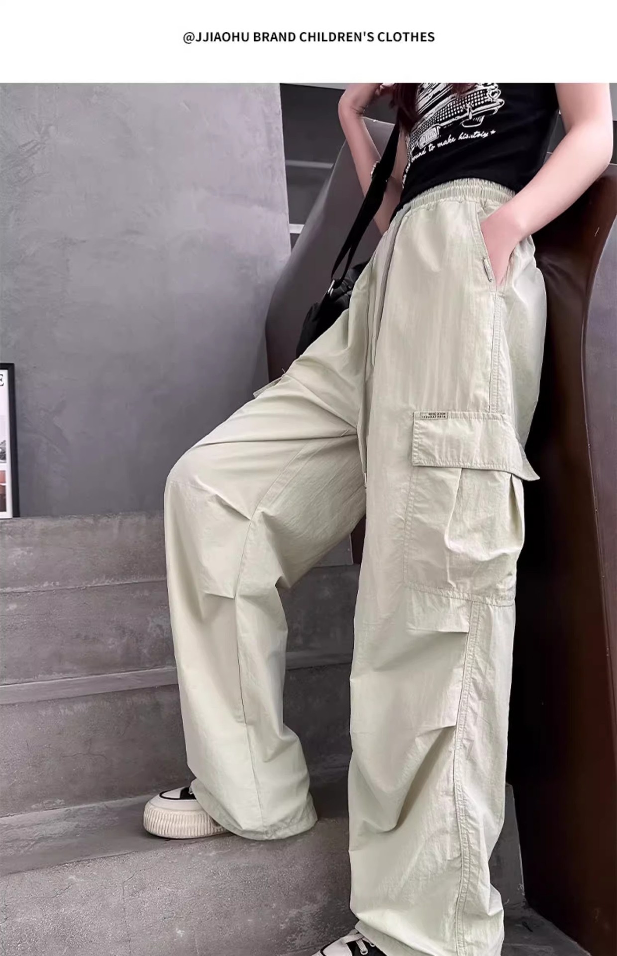 2025 여름 폭발 아이스 실크 바지 한국 스타일 크록 바지 여자 대학 스타일 얇은 봄 새로운 중학교 학생 유행스토어 가기