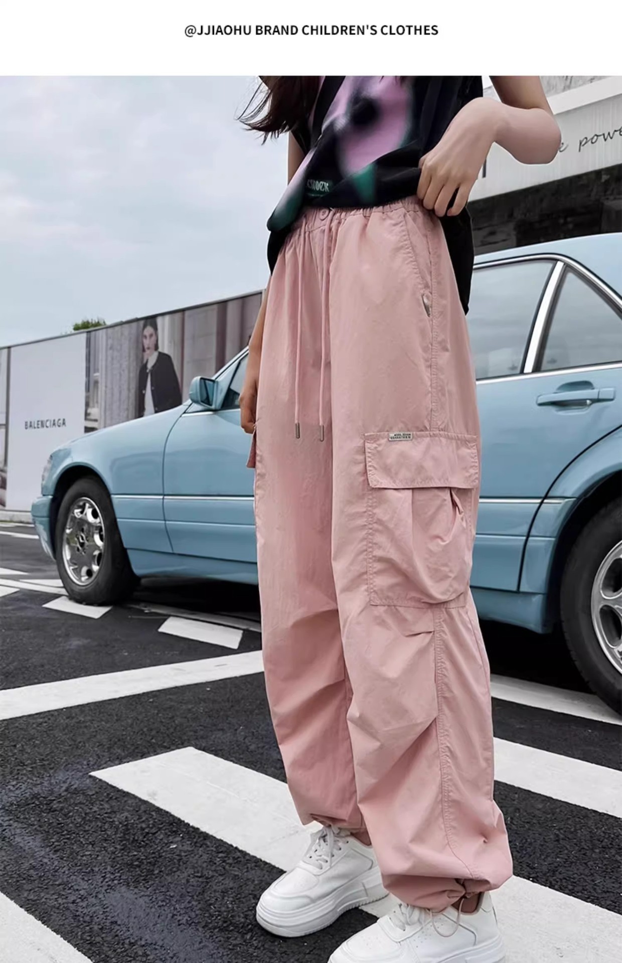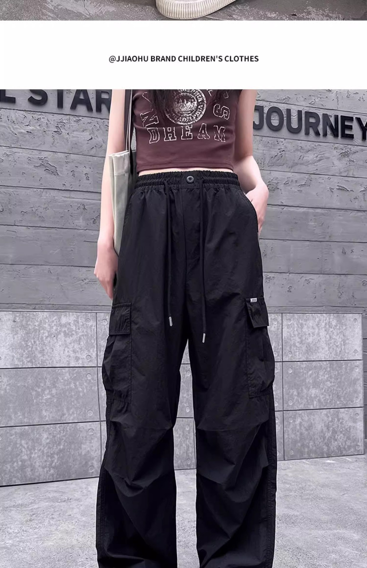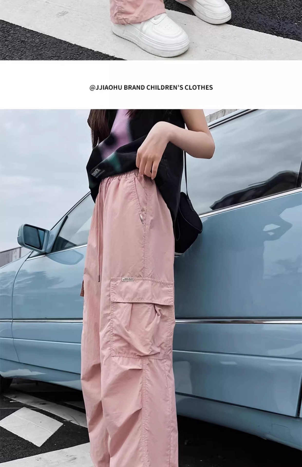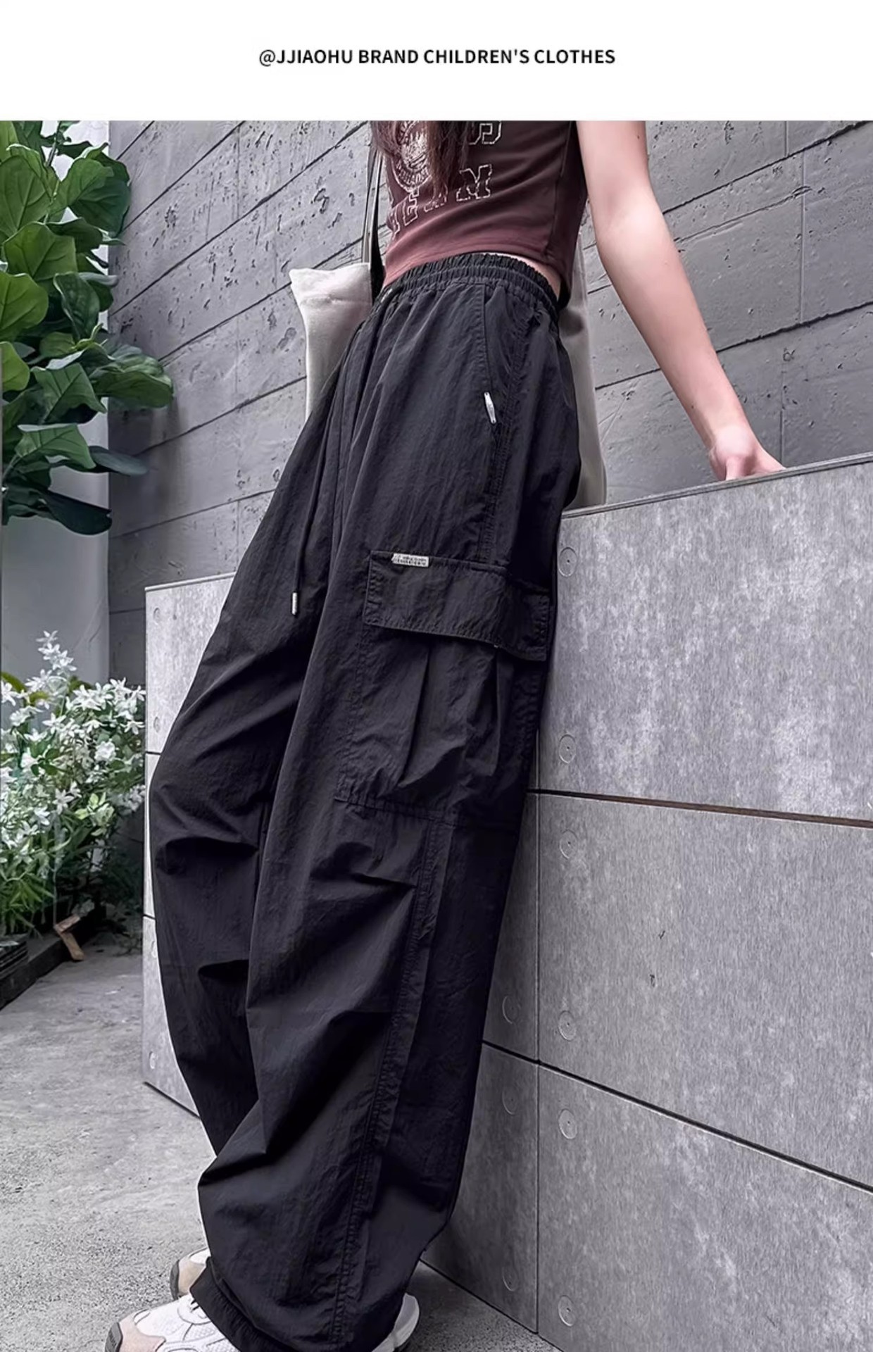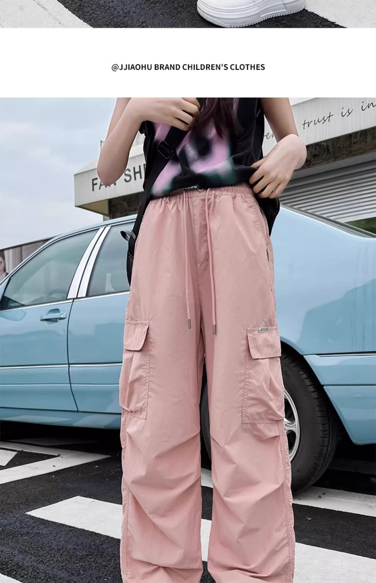 2025 여름 폭발 아이스 실크 바지 한국 스타일 크록 바지 여자 대학 스타일 얇은 봄 새로운 중학교 학생 유행스토어 가기
