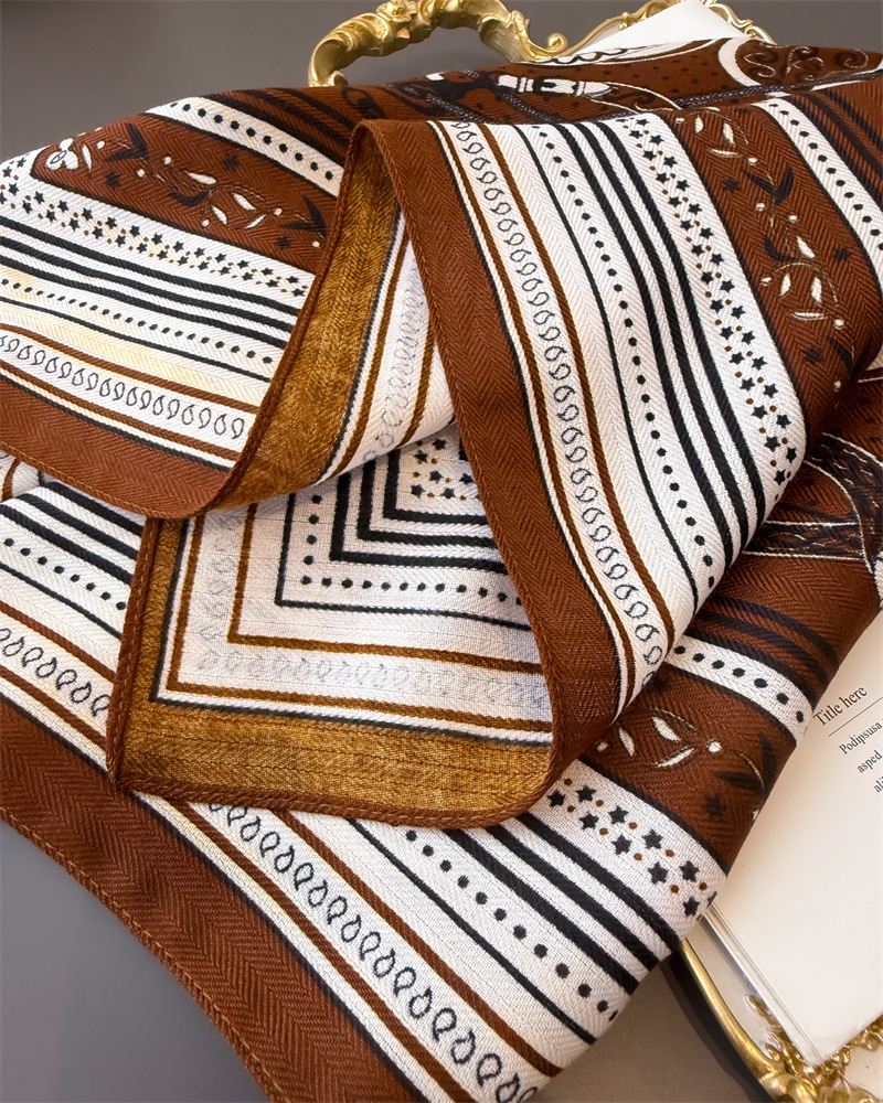 체인 패턴 헤링본 코튼 리넨 작은 스퀘어 실크 스카프 모방 벨벳 헤드 스카프 목도리 선스크린 스카프 여성용 스카프