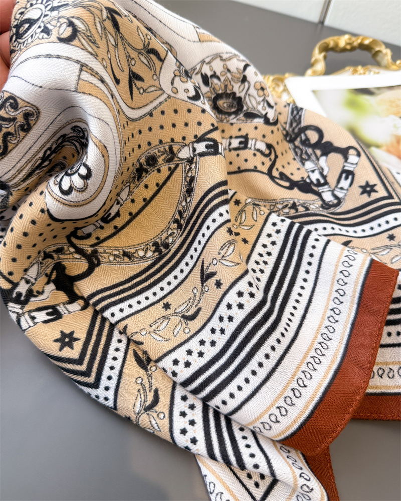 체인 패턴 헤링본 코튼 리넨 작은 스퀘어 실크 스카프 모방 벨벳 헤드 스카프 목도리 선스크린 스카프 여성용 스카프스토어 가기