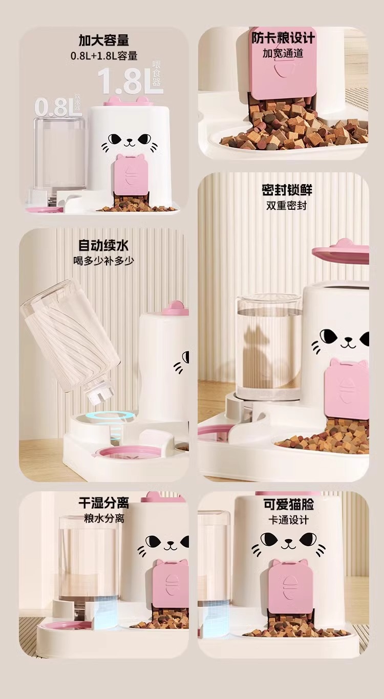 국경 간 고양이 얼굴 피더 물 식품 통합 피더 먹이 그릇 건조하고 젖은 분리 개 그릇 고양이 그릇 식품 저장 그릇