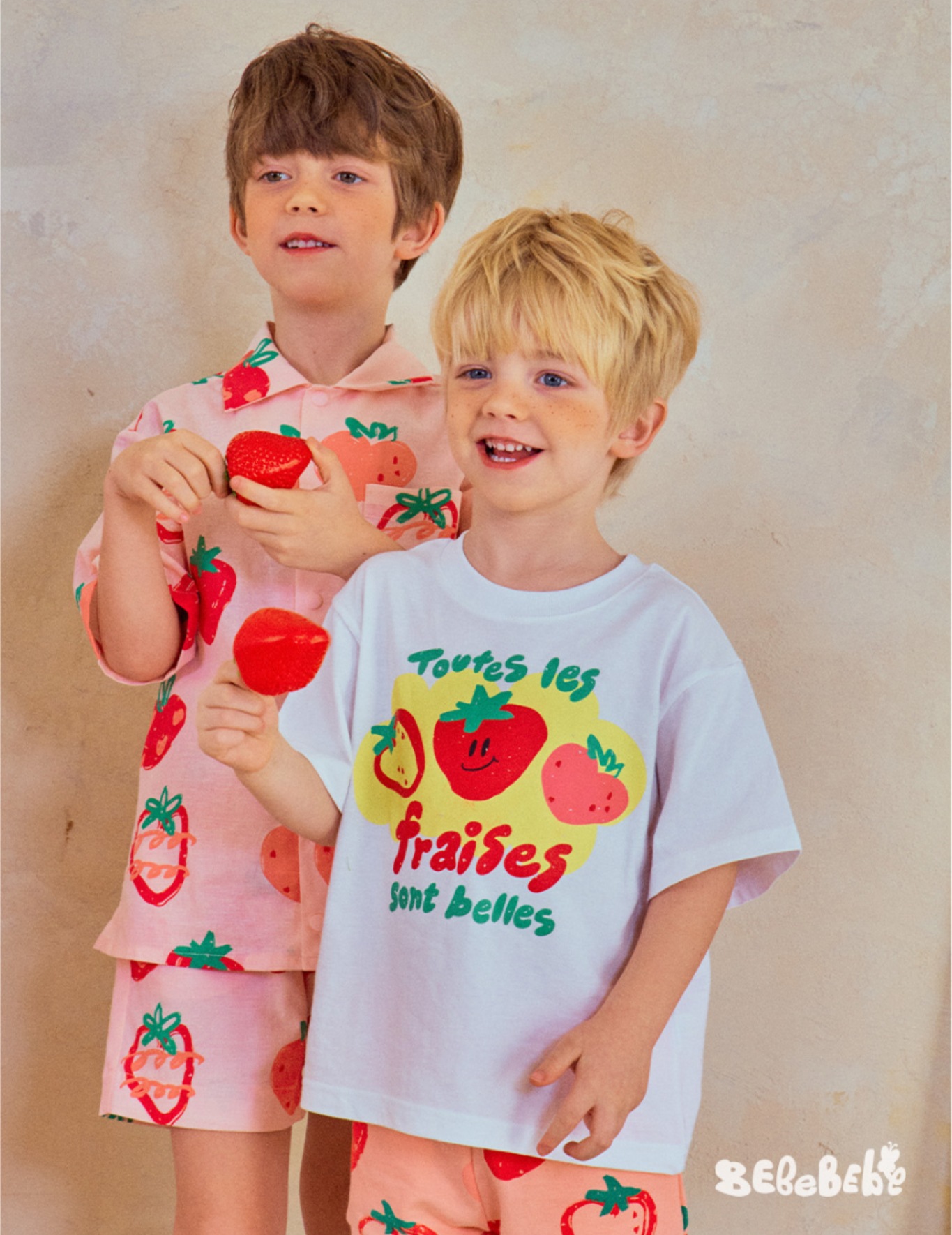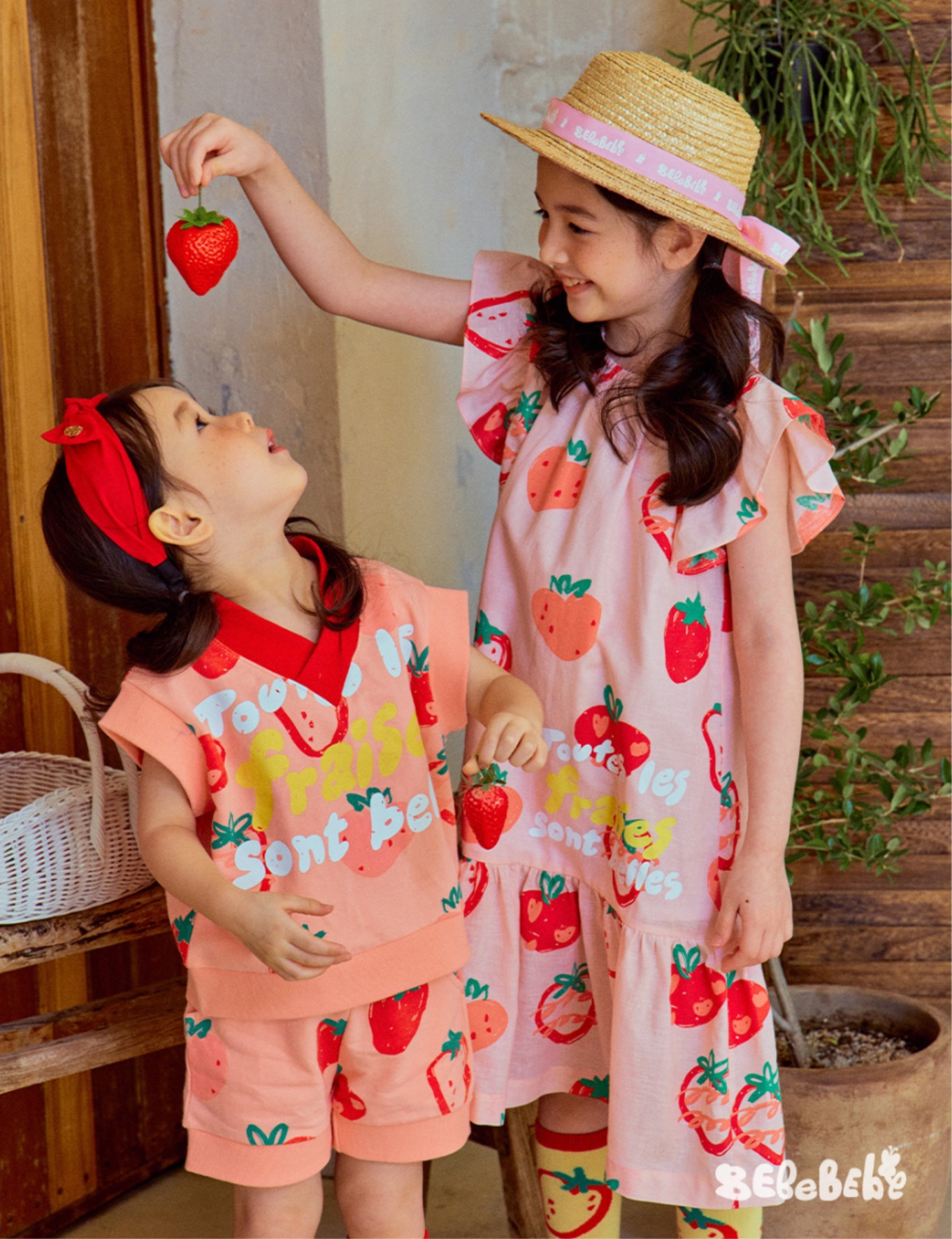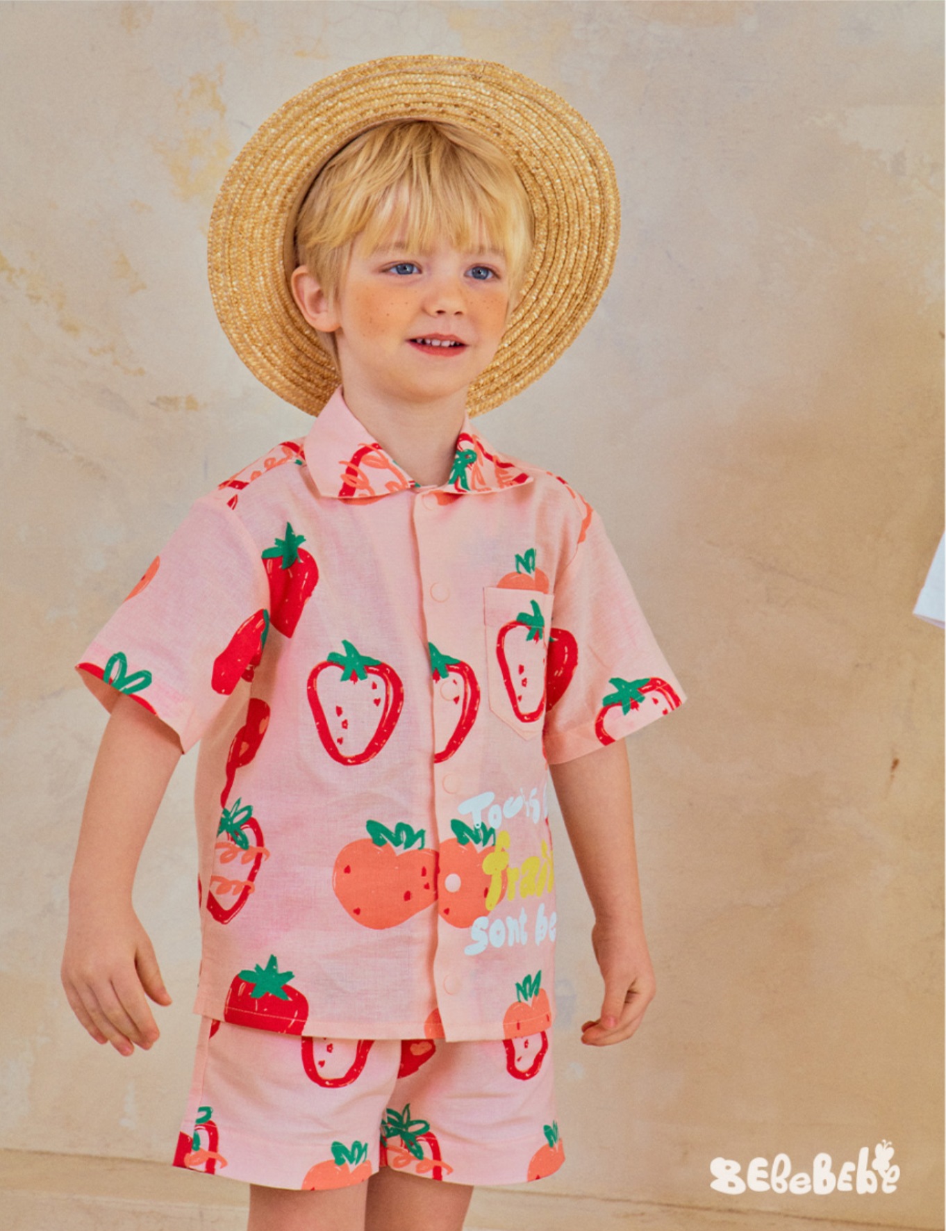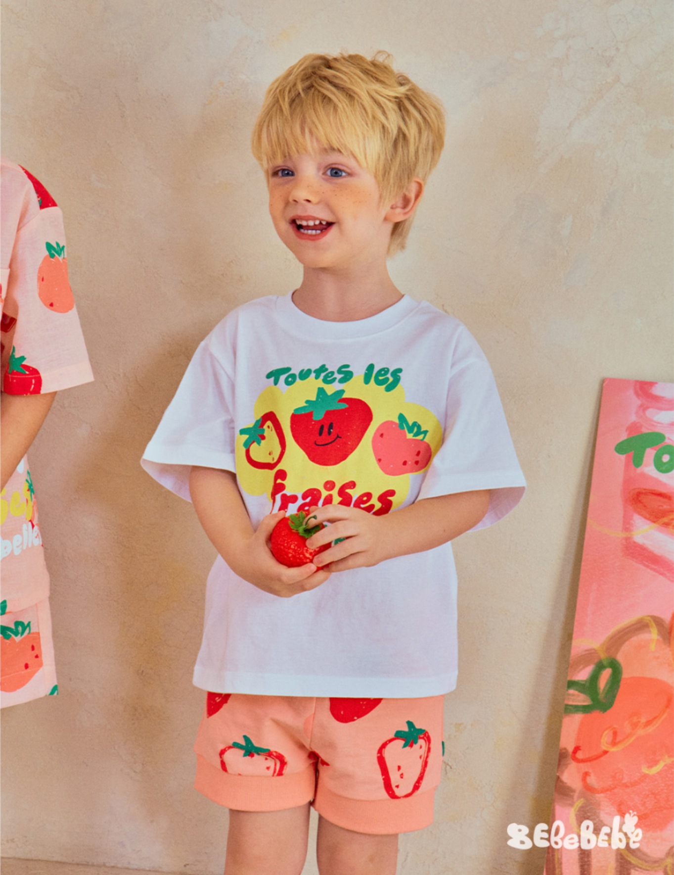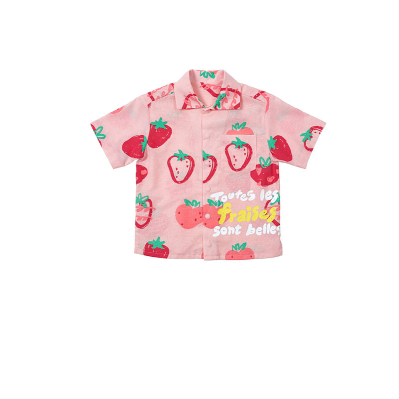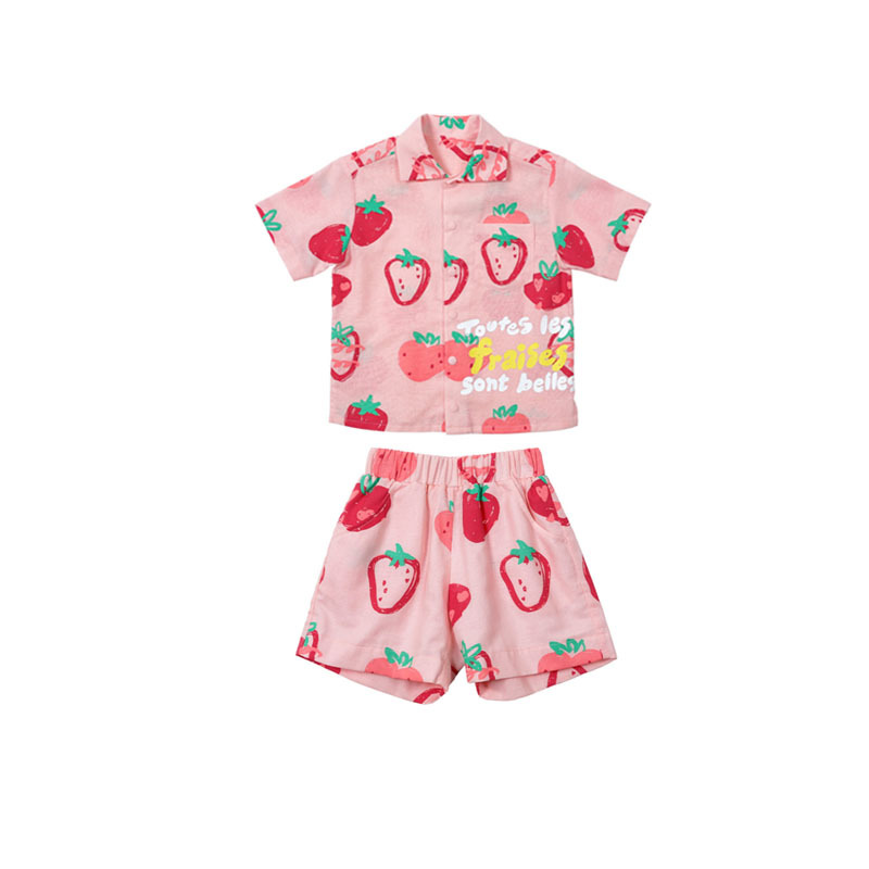 • BE 핑크 스트로베리 셔츠 + 반바지 세트