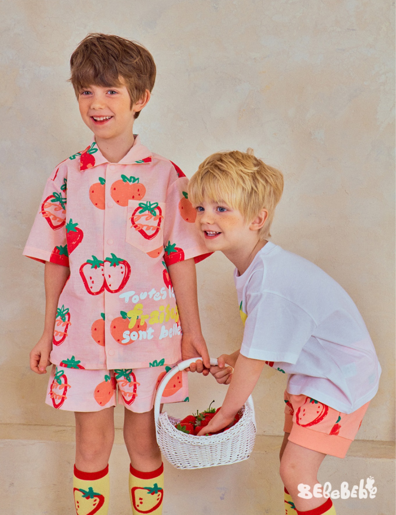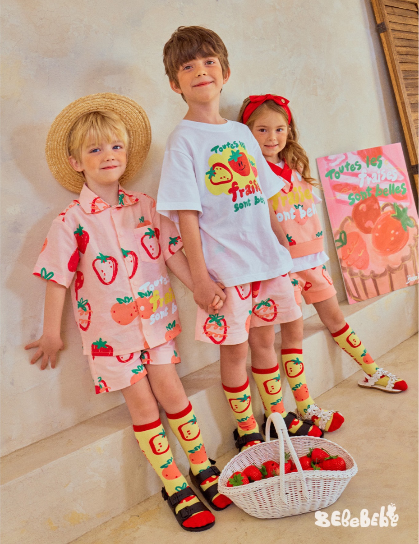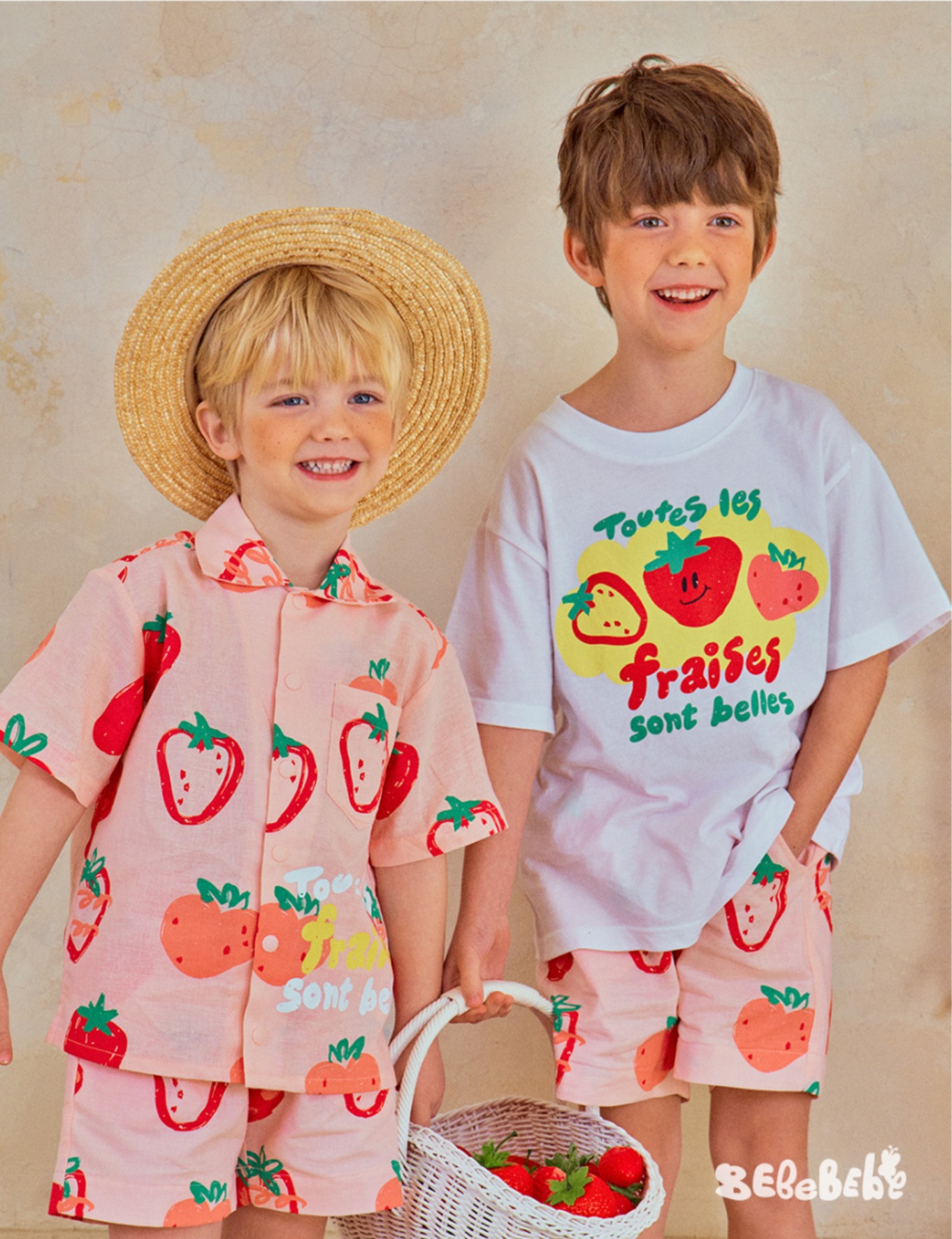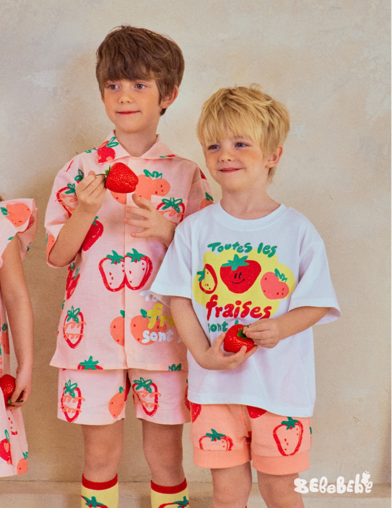 • BE 핑크 스트로베리 셔츠 + 반바지 세트