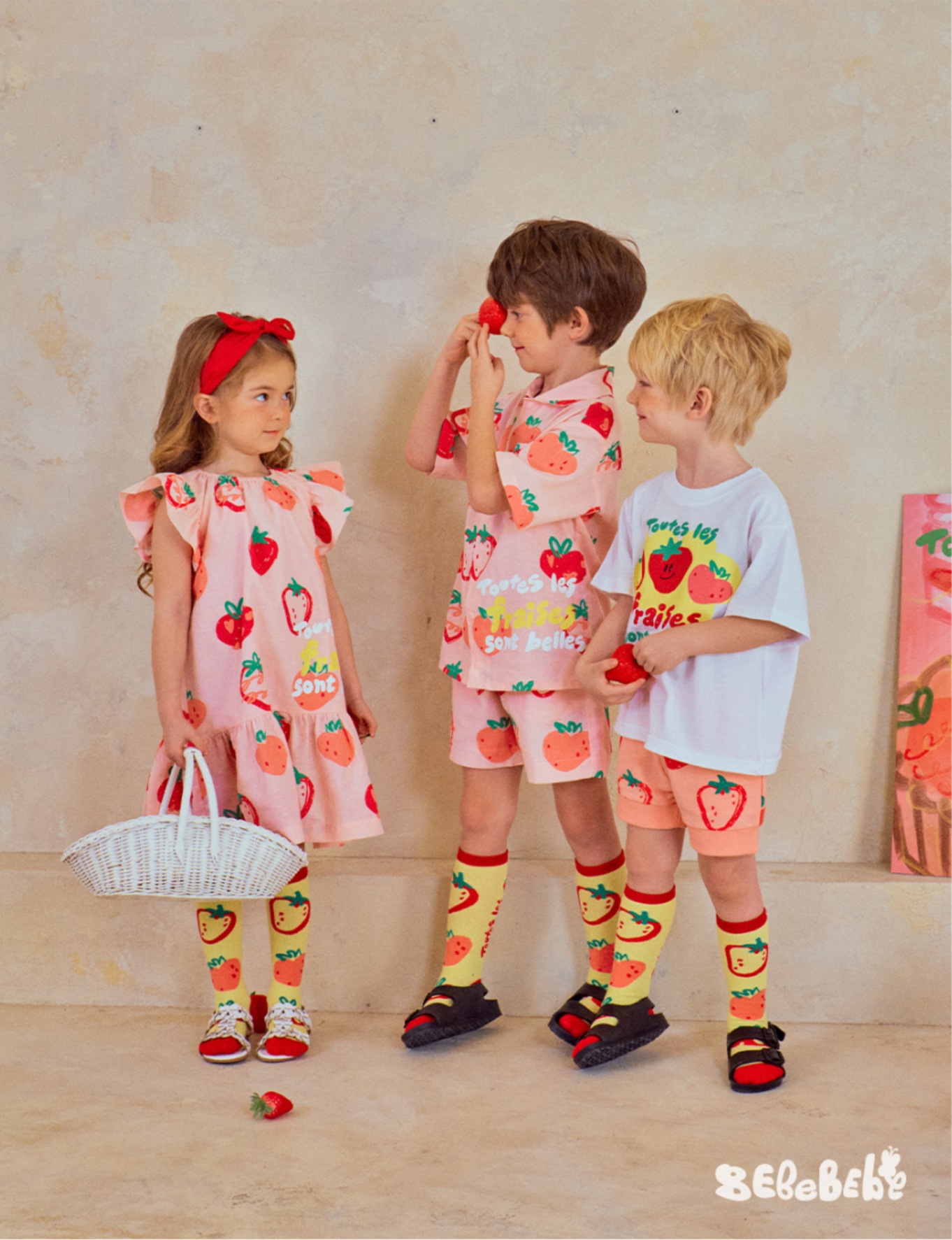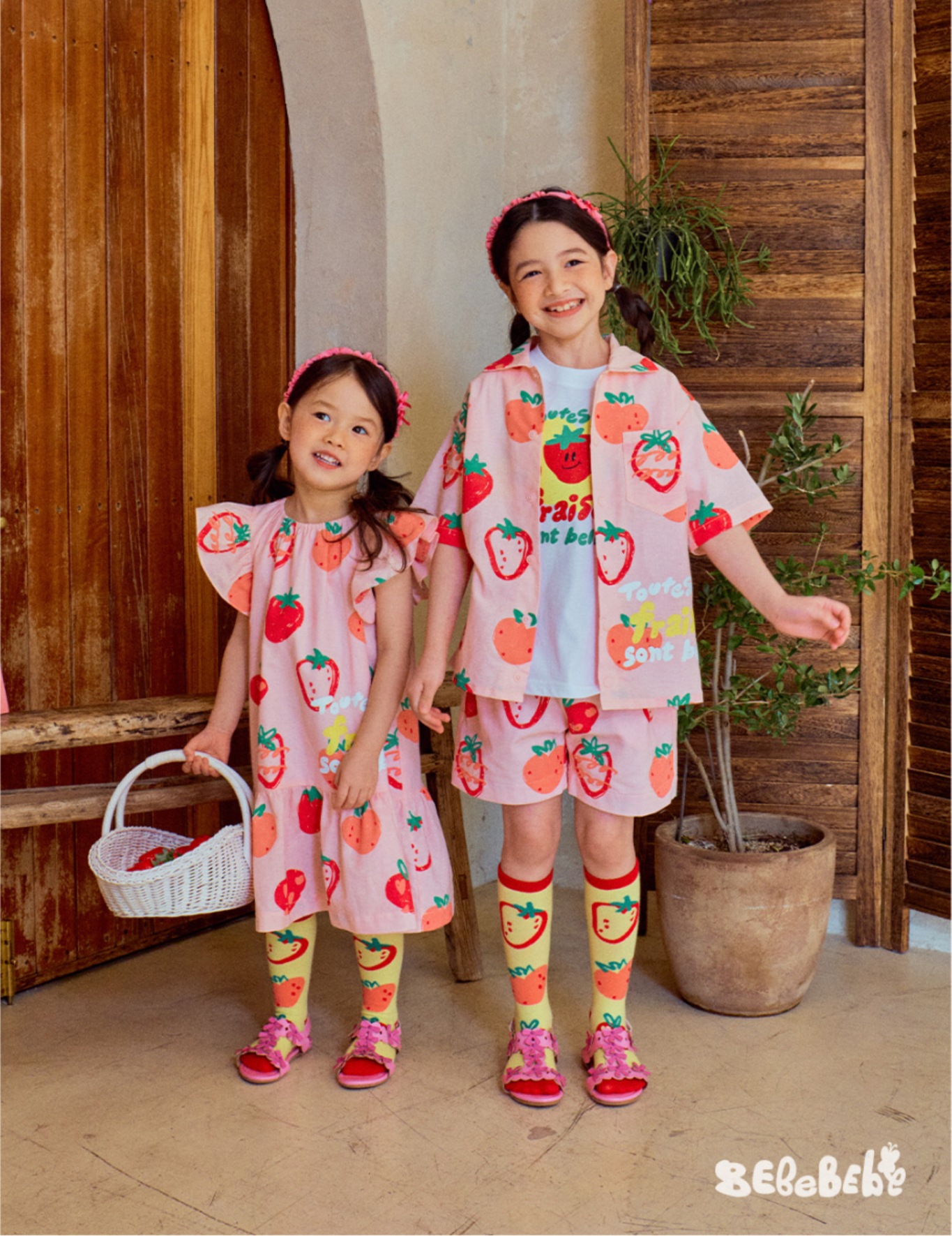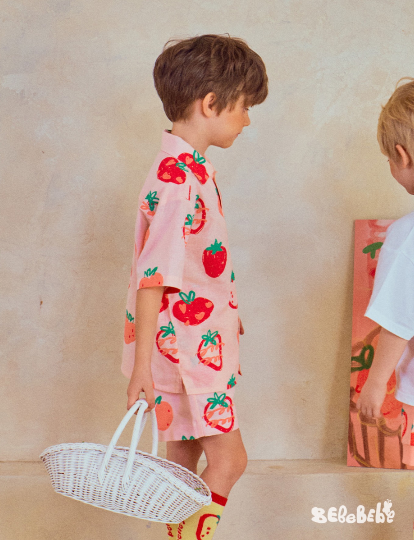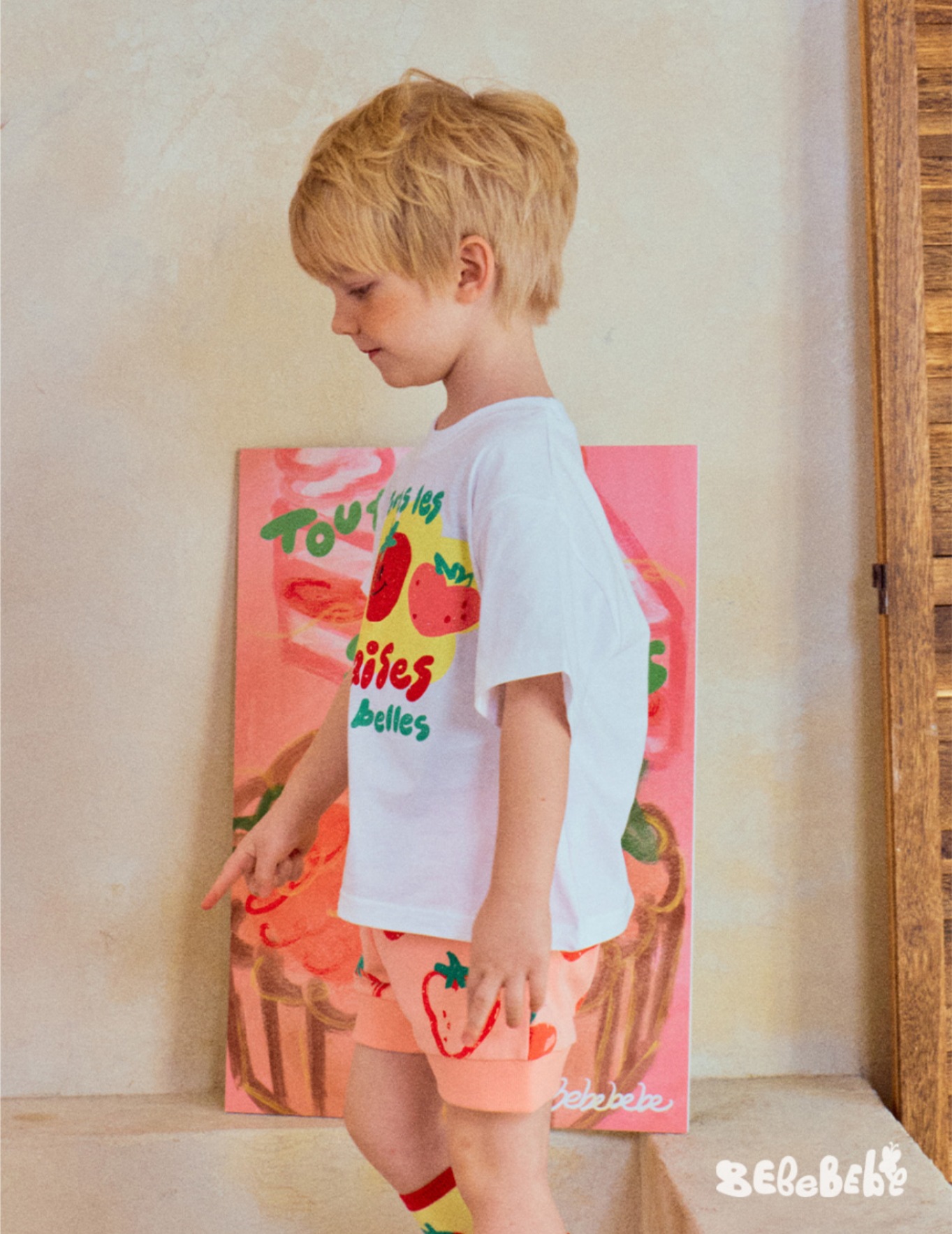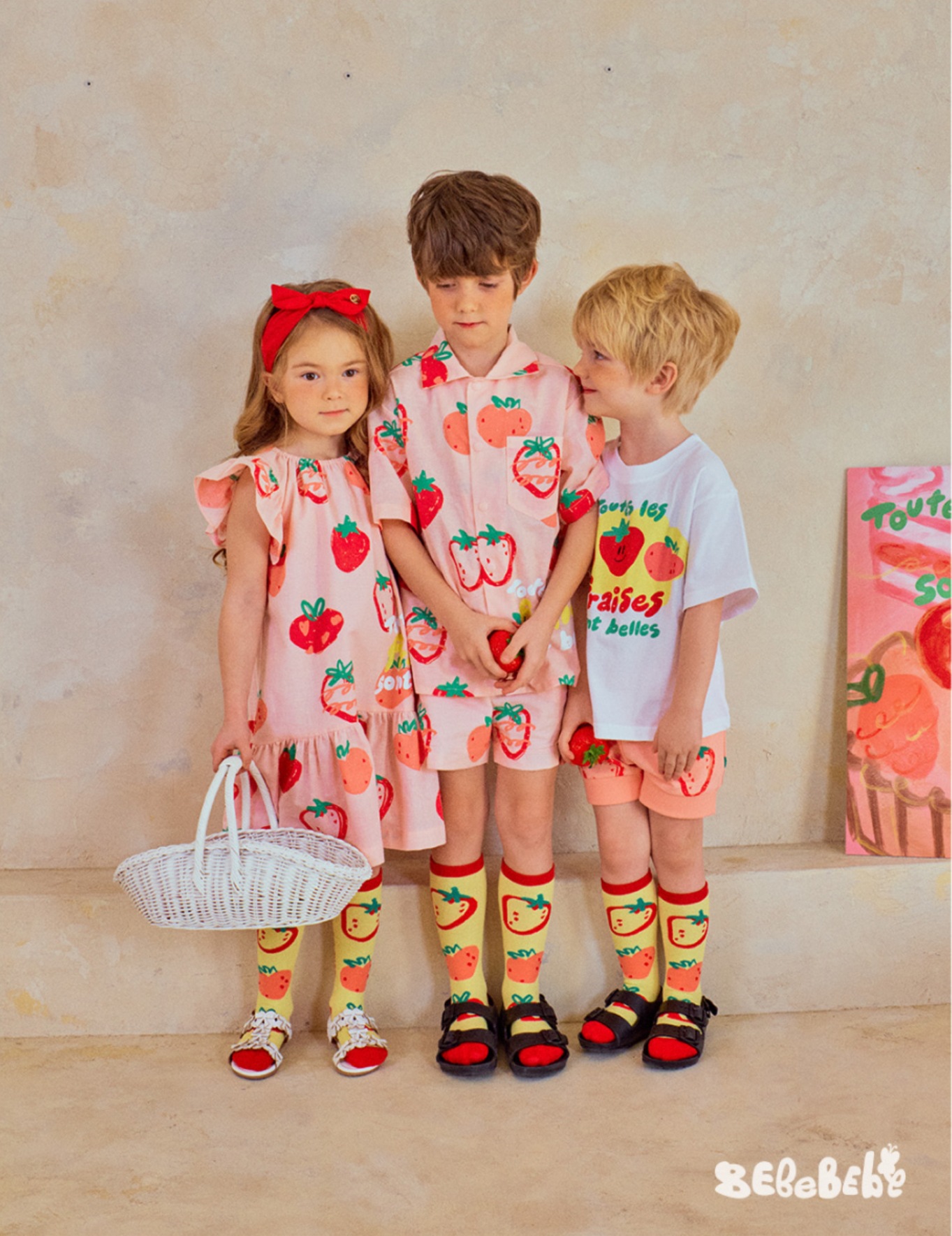 • BE 핑크 스트로베리 셔츠 + 반바지 세트