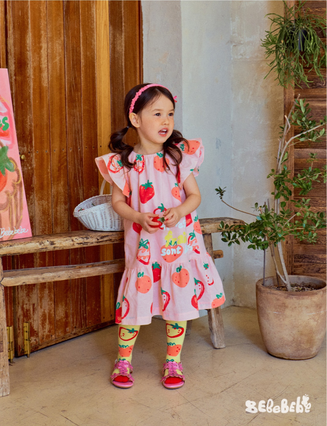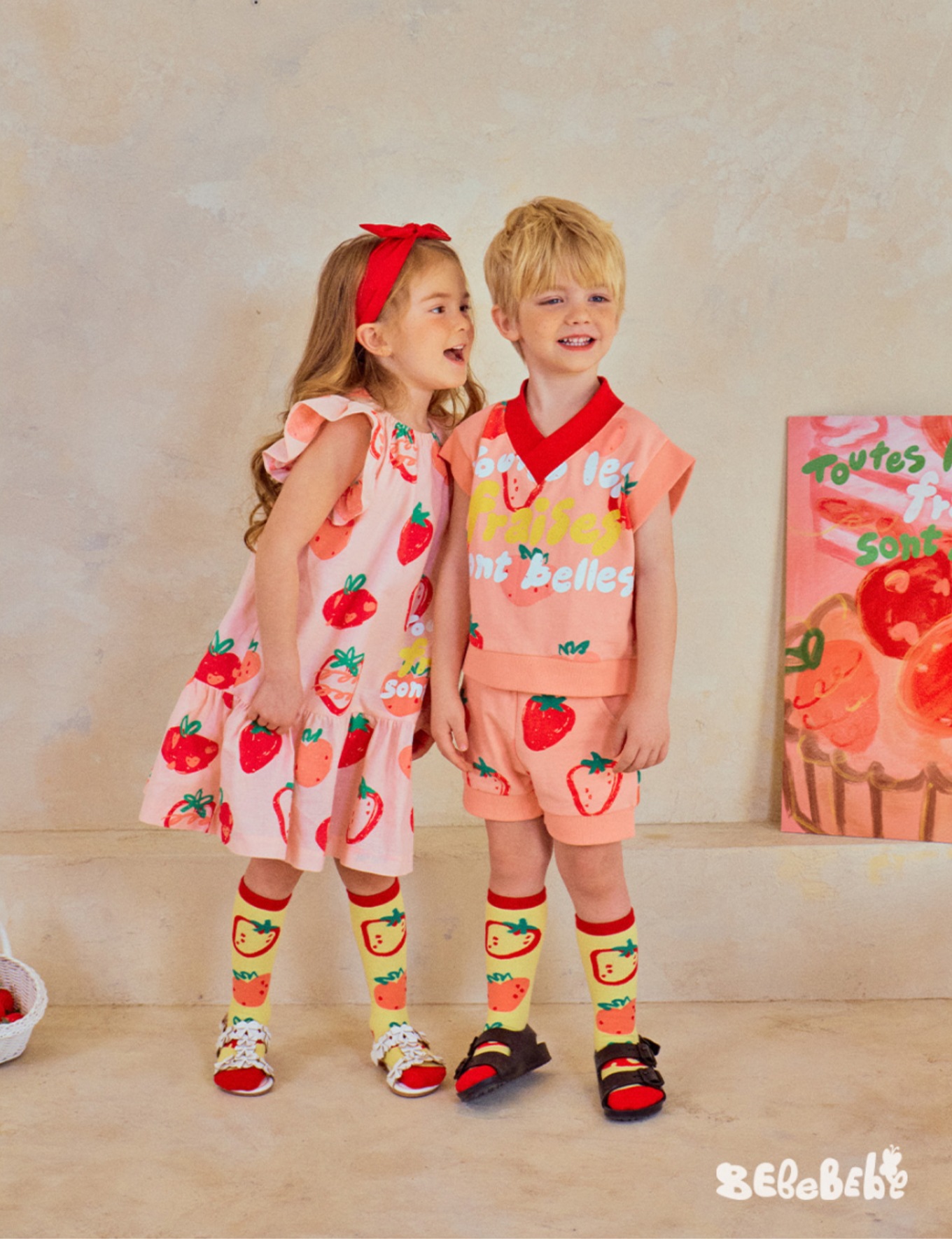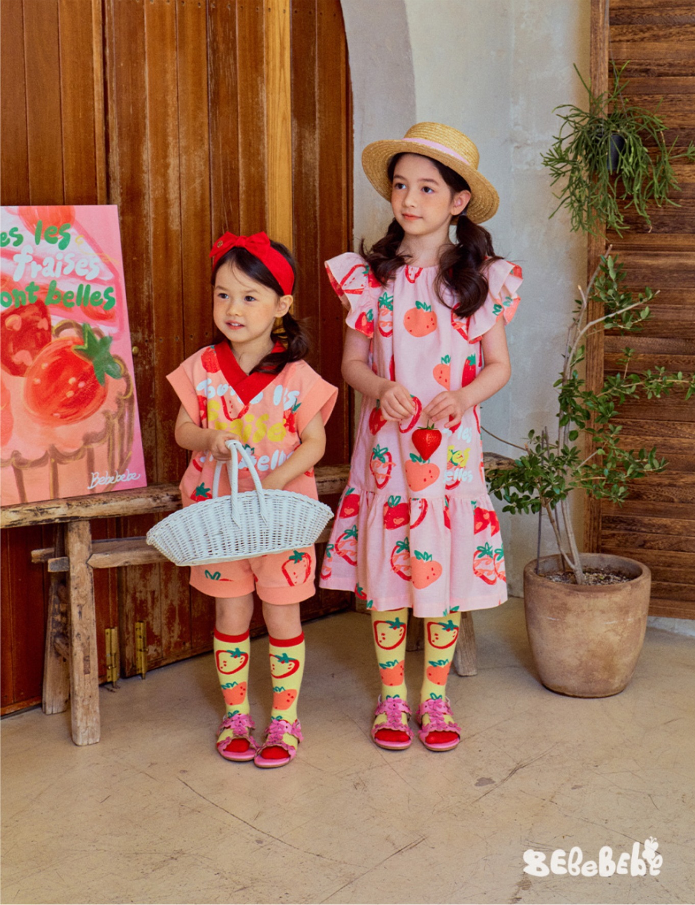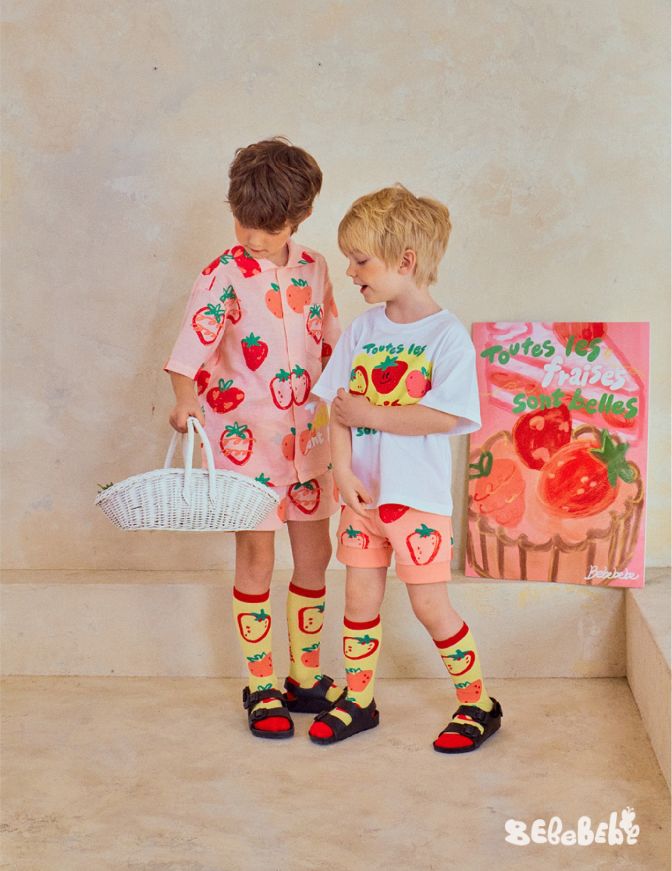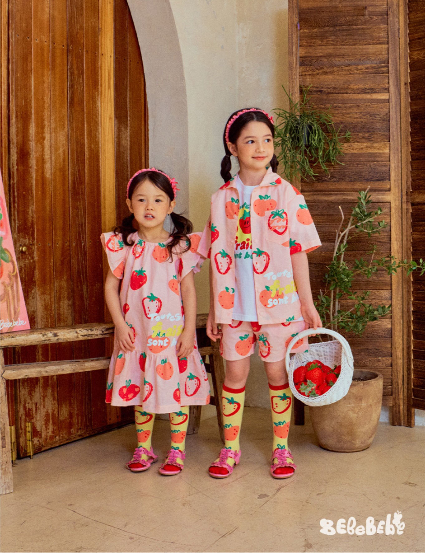 • BE 핑크 스트로베리 셔츠 + 반바지 세트