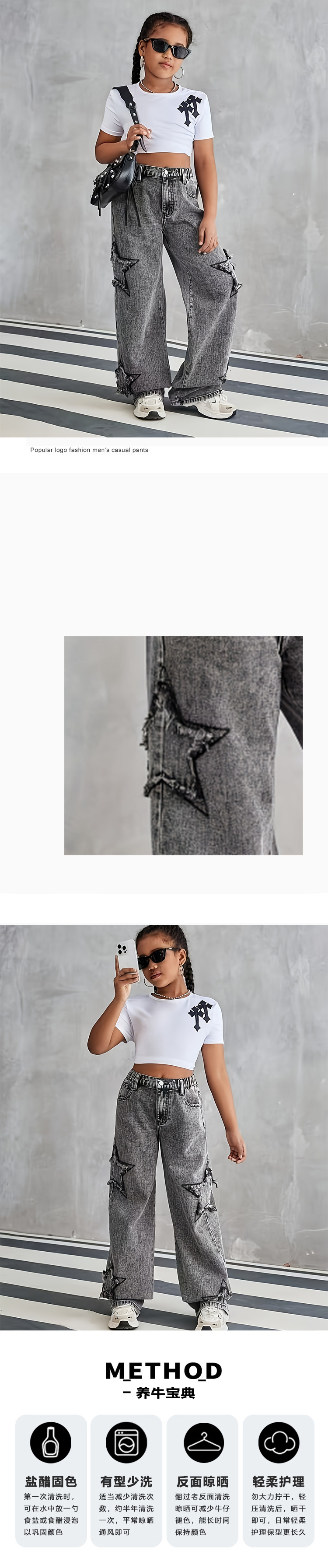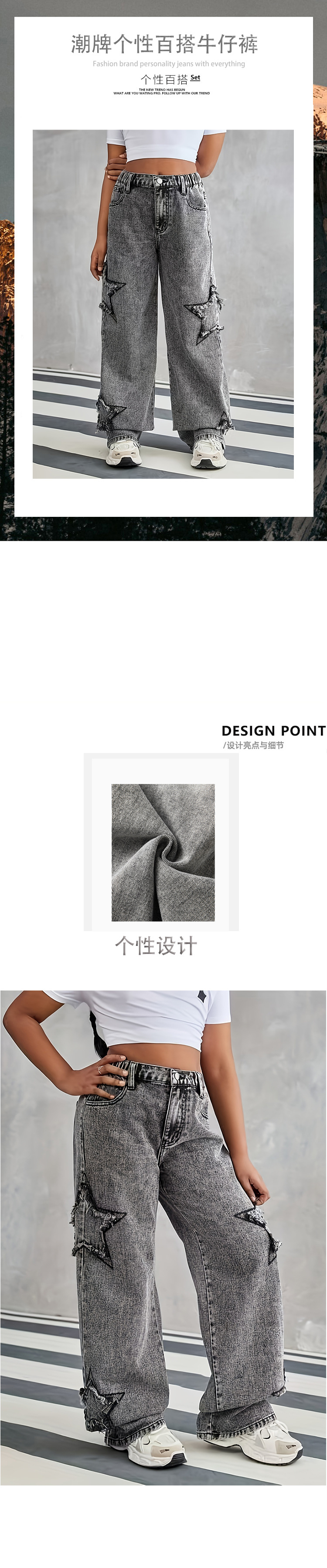 10 대 소년 소녀를위한 국경 간 아마존 AliExpress 새로운 스타 스티커 스파이스 소녀 넓은 다리 청바지