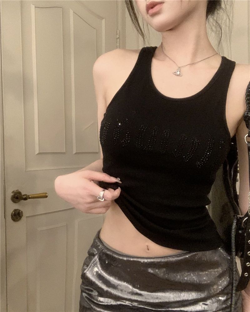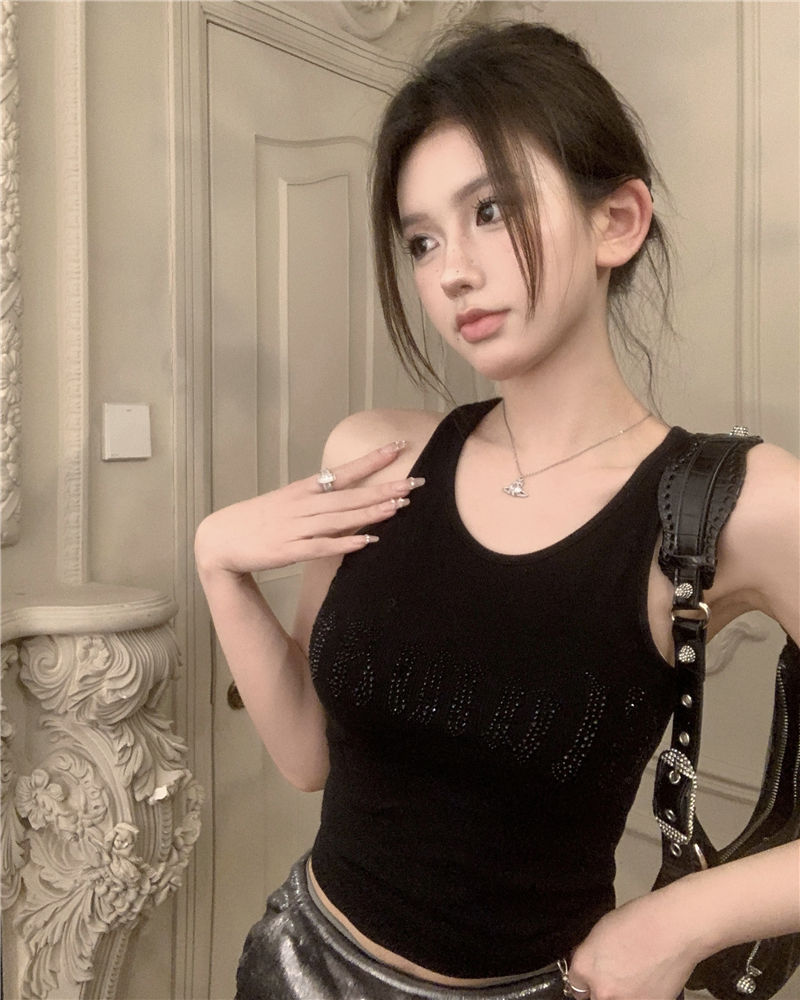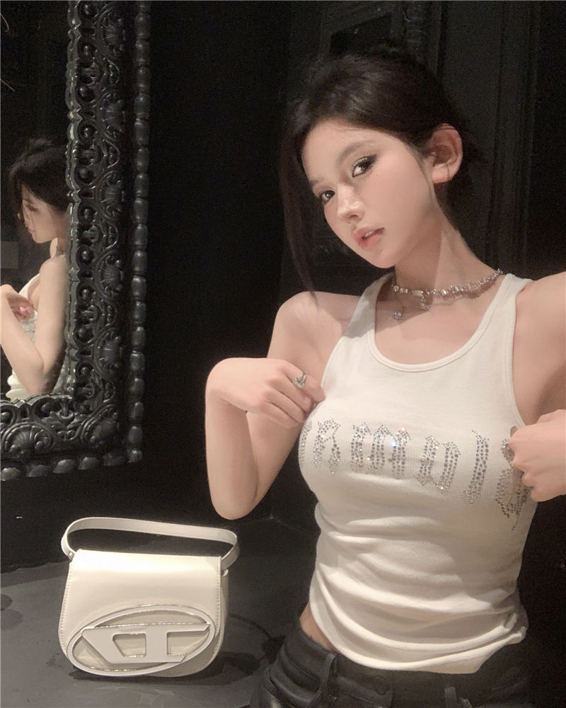 스파이스 걸스 빛나는 편지 핫 다이아몬드 슬링 스트랩 I 자형 조끼 여성용 가슴 패드 슬림핏 슬리밍 내부와 외부 착용베이스 탑