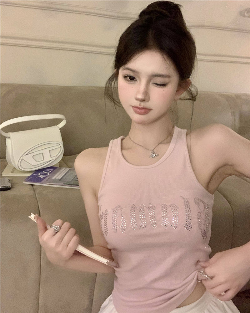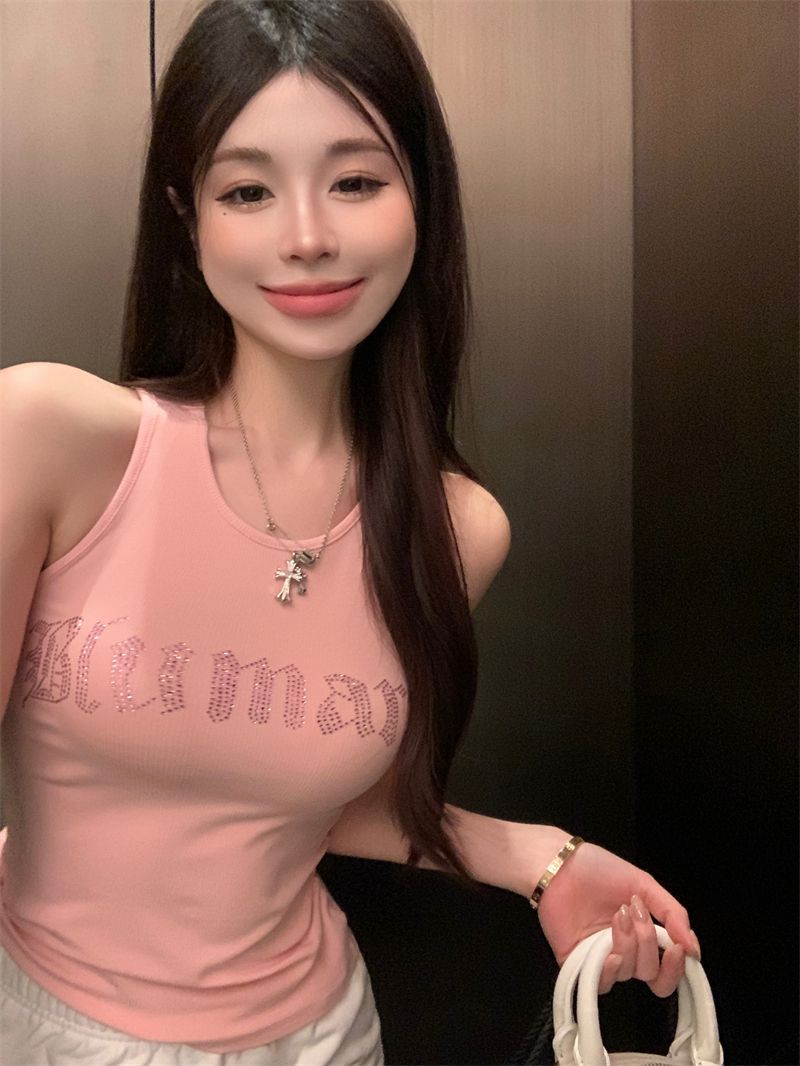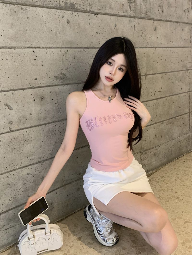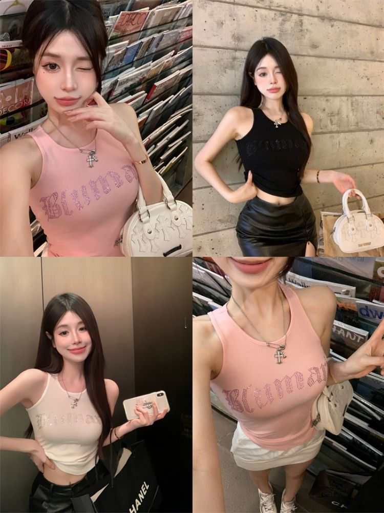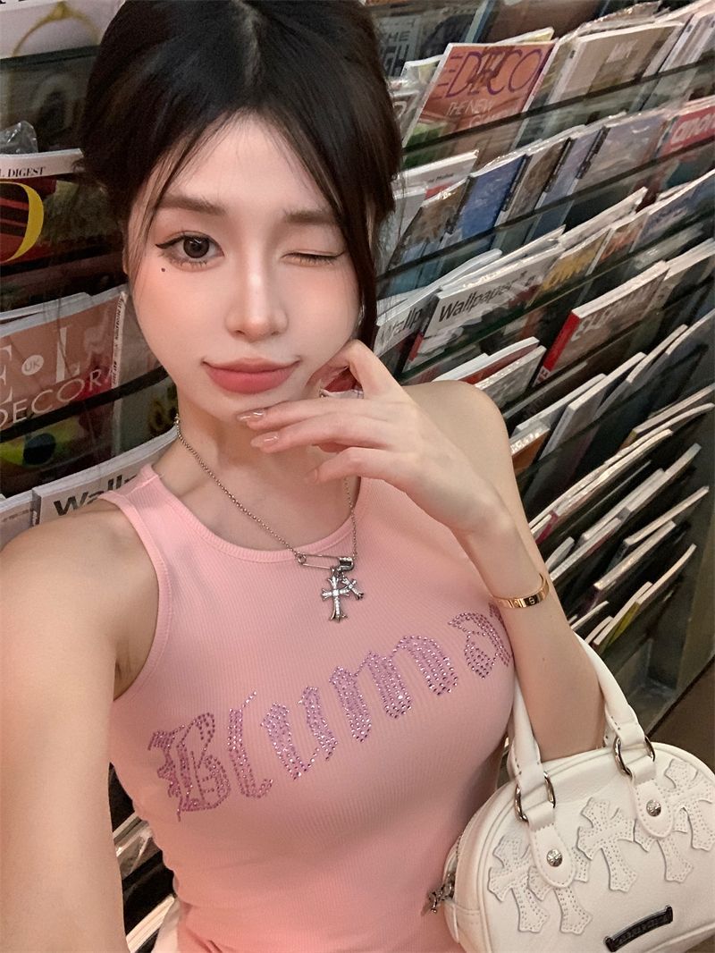 스파이스 걸스 빛나는 편지 핫 다이아몬드 슬링 스트랩 I 자형 조끼 여성용 가슴 패드 슬림핏 슬리밍 내부와 외부 착용베이스 탑스토어 가기