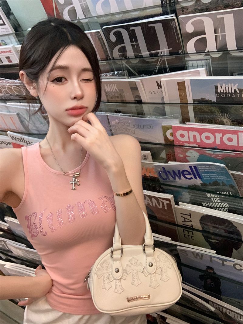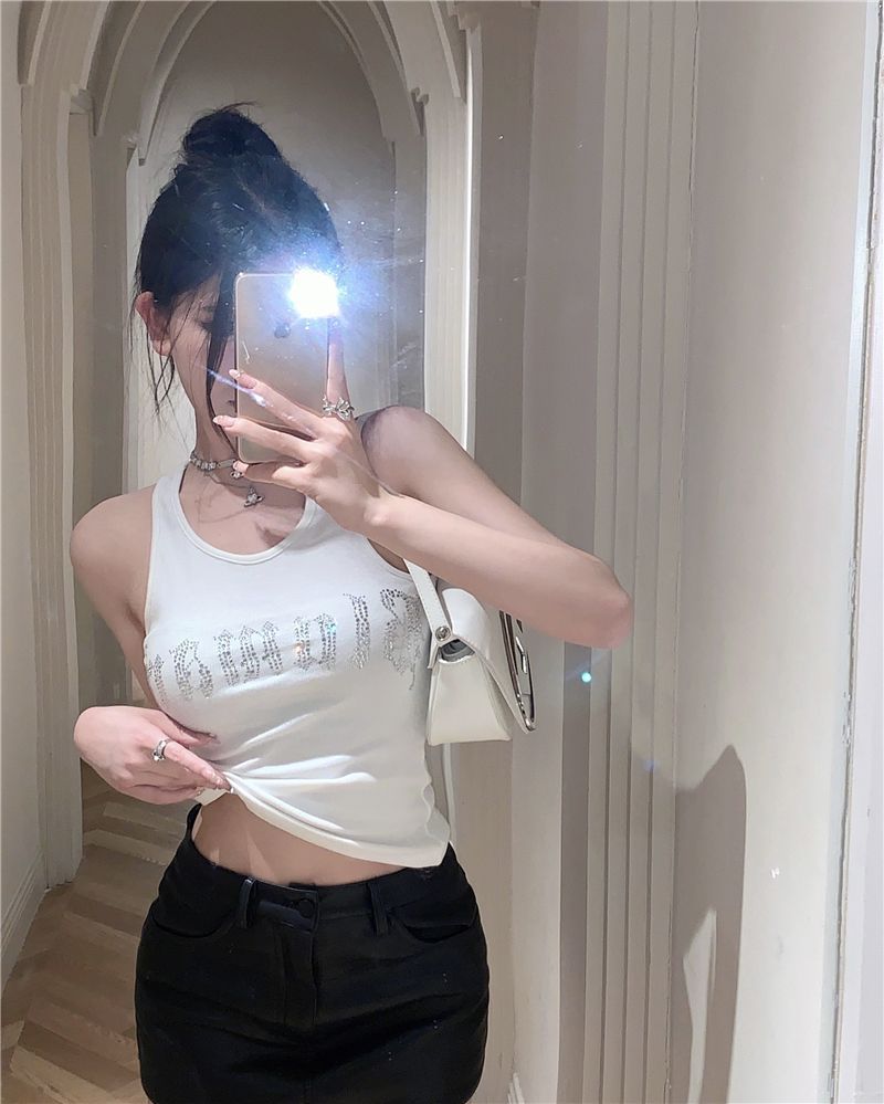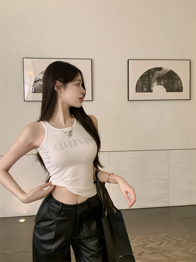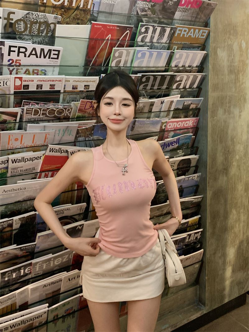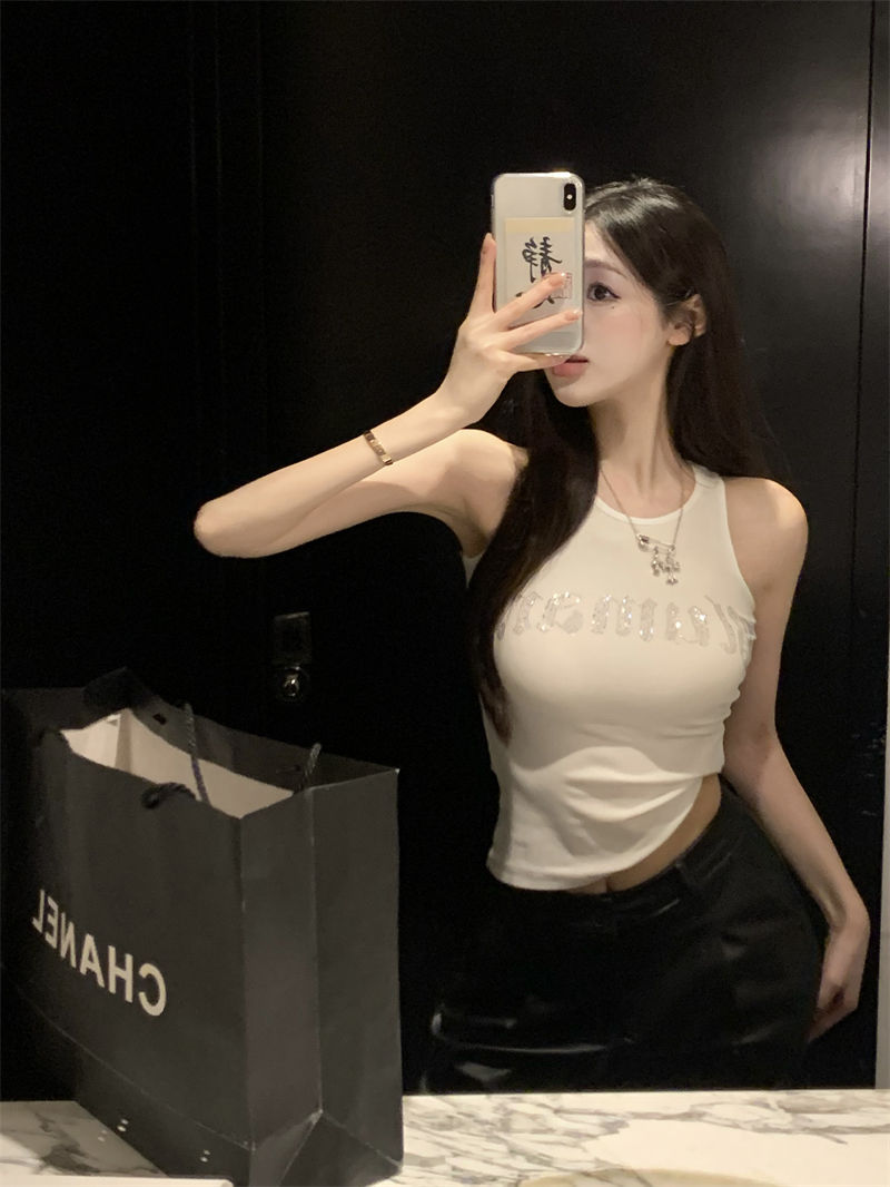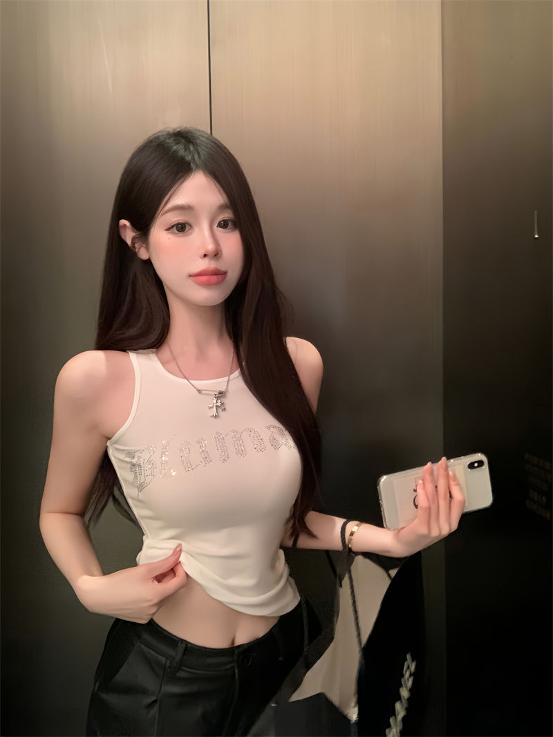 스파이스 걸스 빛나는 편지 핫 다이아몬드 슬링 스트랩 I 자형 조끼 여성용 가슴 패드 슬림핏 슬리밍 내부와 외부 착용베이스 탑스토어 가기