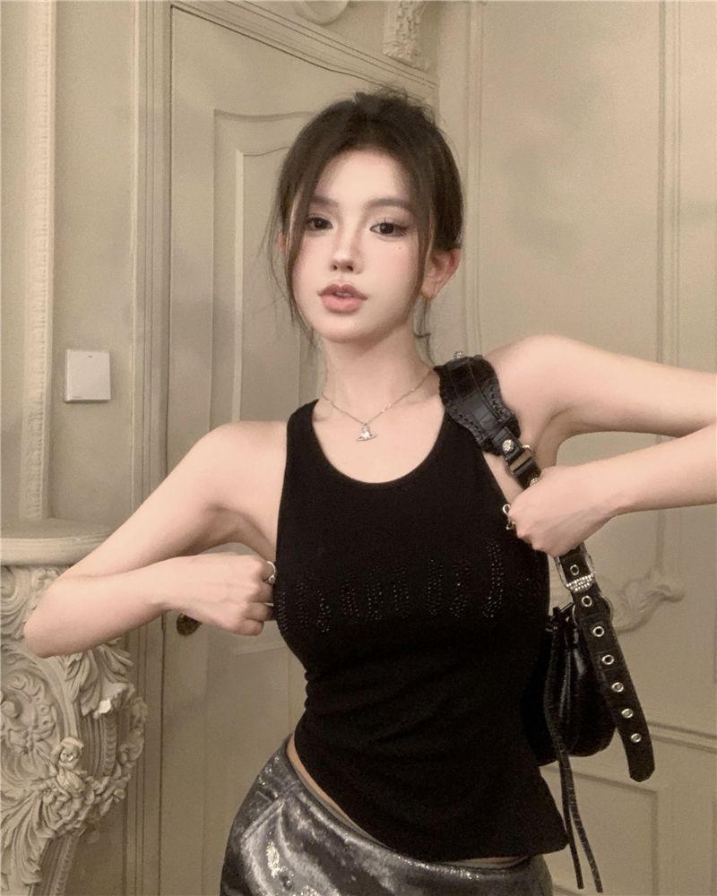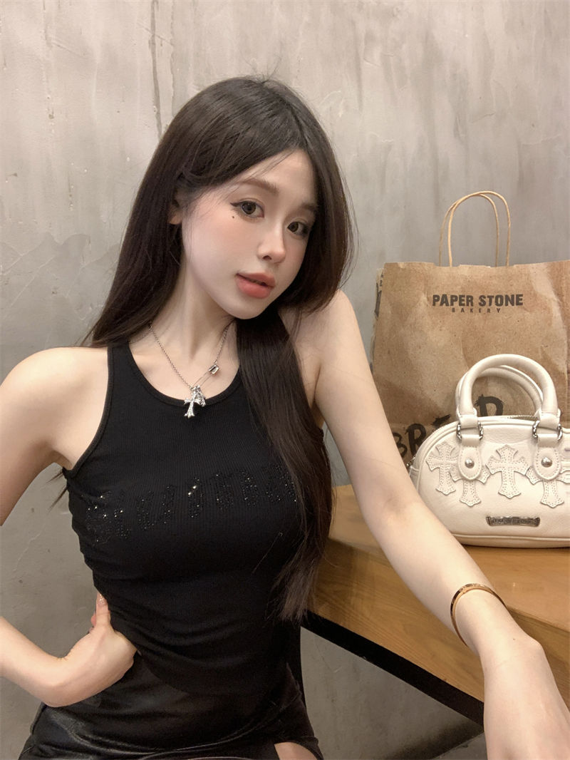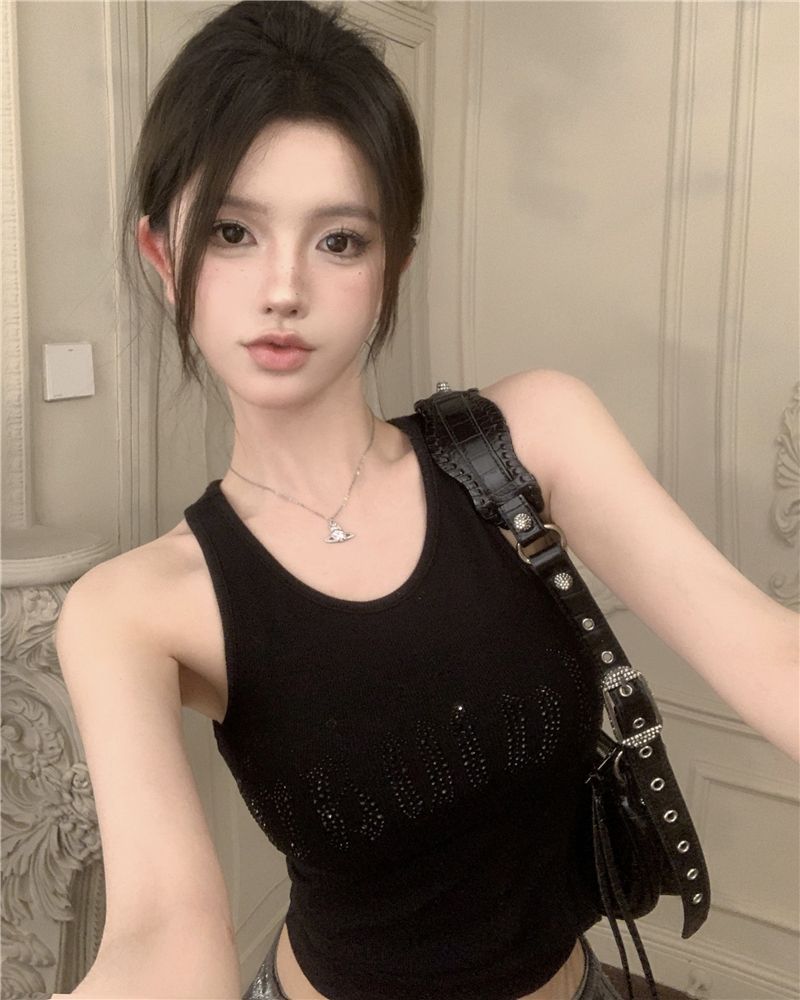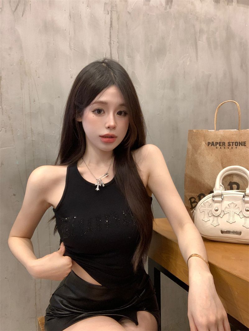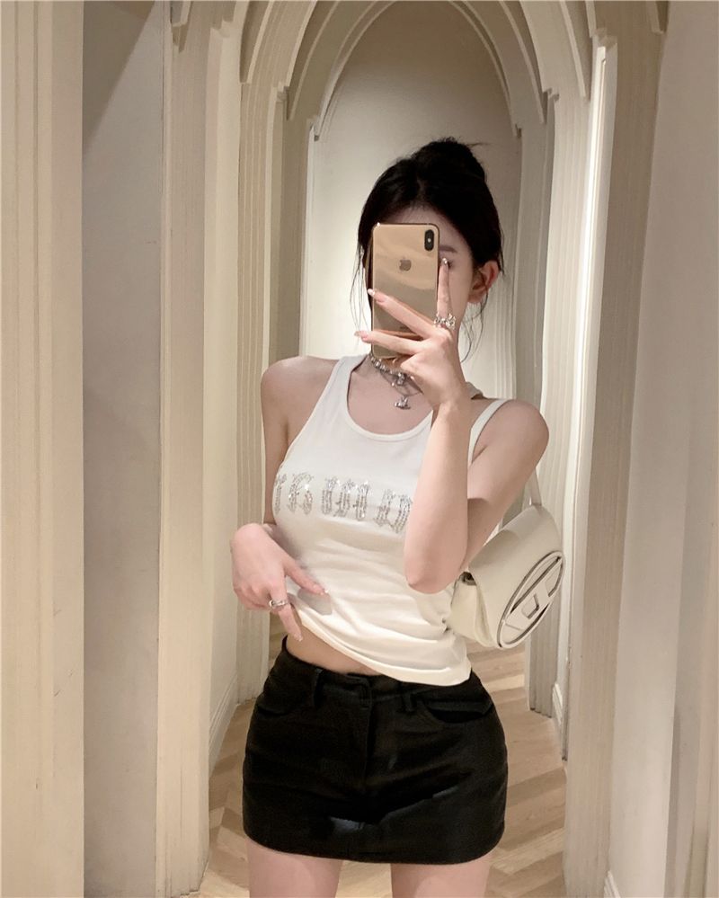 스파이스 걸스 빛나는 편지 핫 다이아몬드 슬링 스트랩 I 자형 조끼 여성용 가슴 패드 슬림핏 슬리밍 내부와 외부 착용베이스 탑스토어 가기