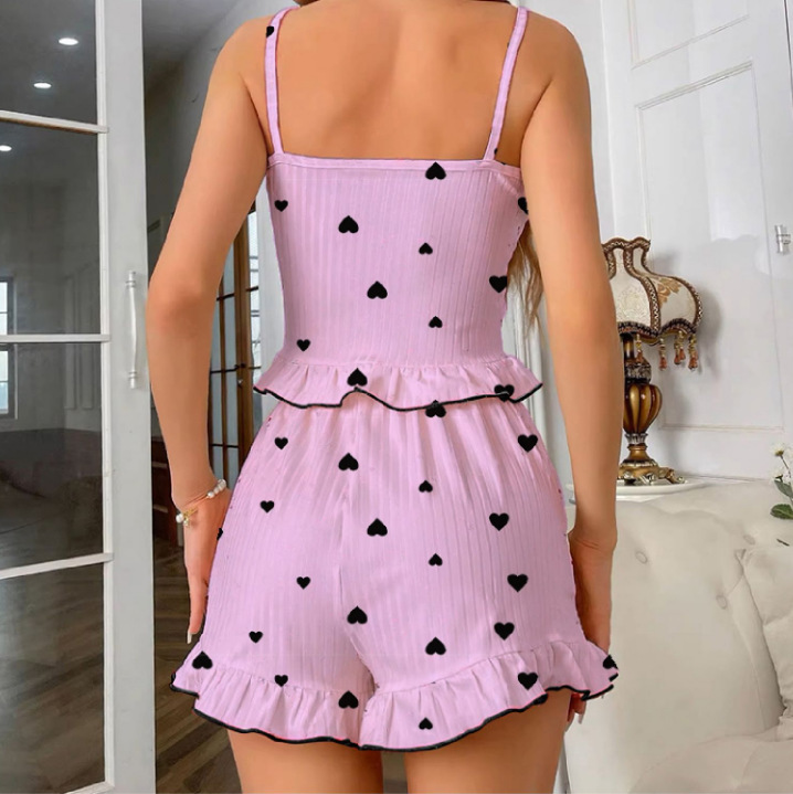 유럽과 미국의 국경 간 새로운 인쇄 된 여성 잠옷 슬링 반바지 투피스 여름 섹시한 달콤한 홈 의류 세트