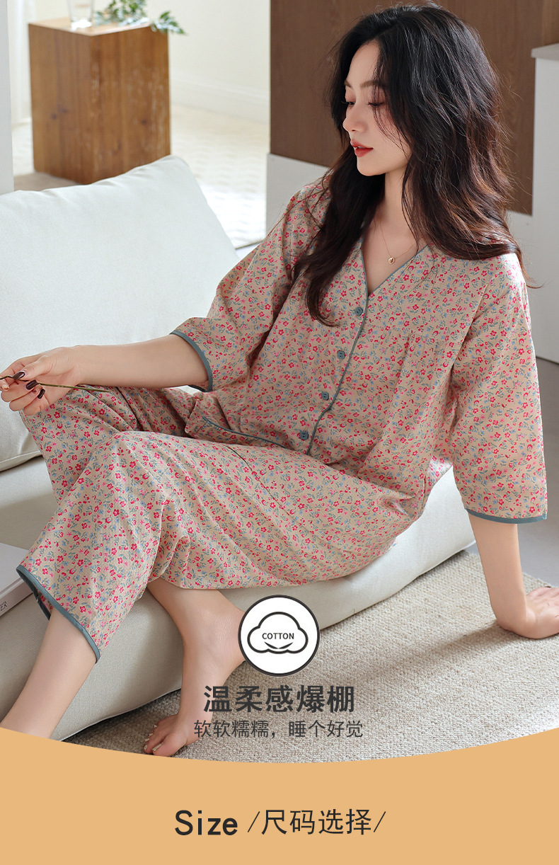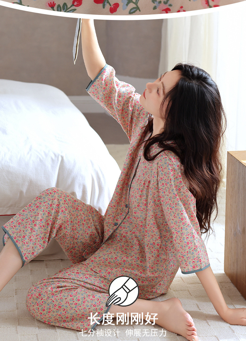 잠옷 여성의 여름 구름 면 7 점 소매 봄과 여름 얇은 플러스 사이즈 여름 홈 옷은 새로운 스타일의 세트 입을 수 있습니다스토어 가기