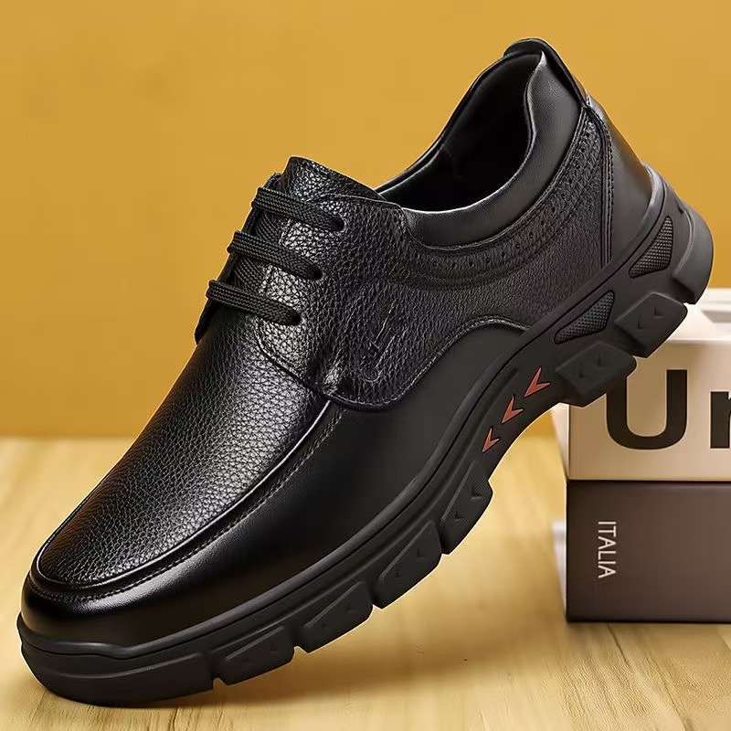 남성용 가죽 신발 남성 비즈니스 원피스 신발 영국 스타일 유행 캐주얼 남성 신발 소프트 하단 레이스 업 편안한 아빠 신발스토어 가기