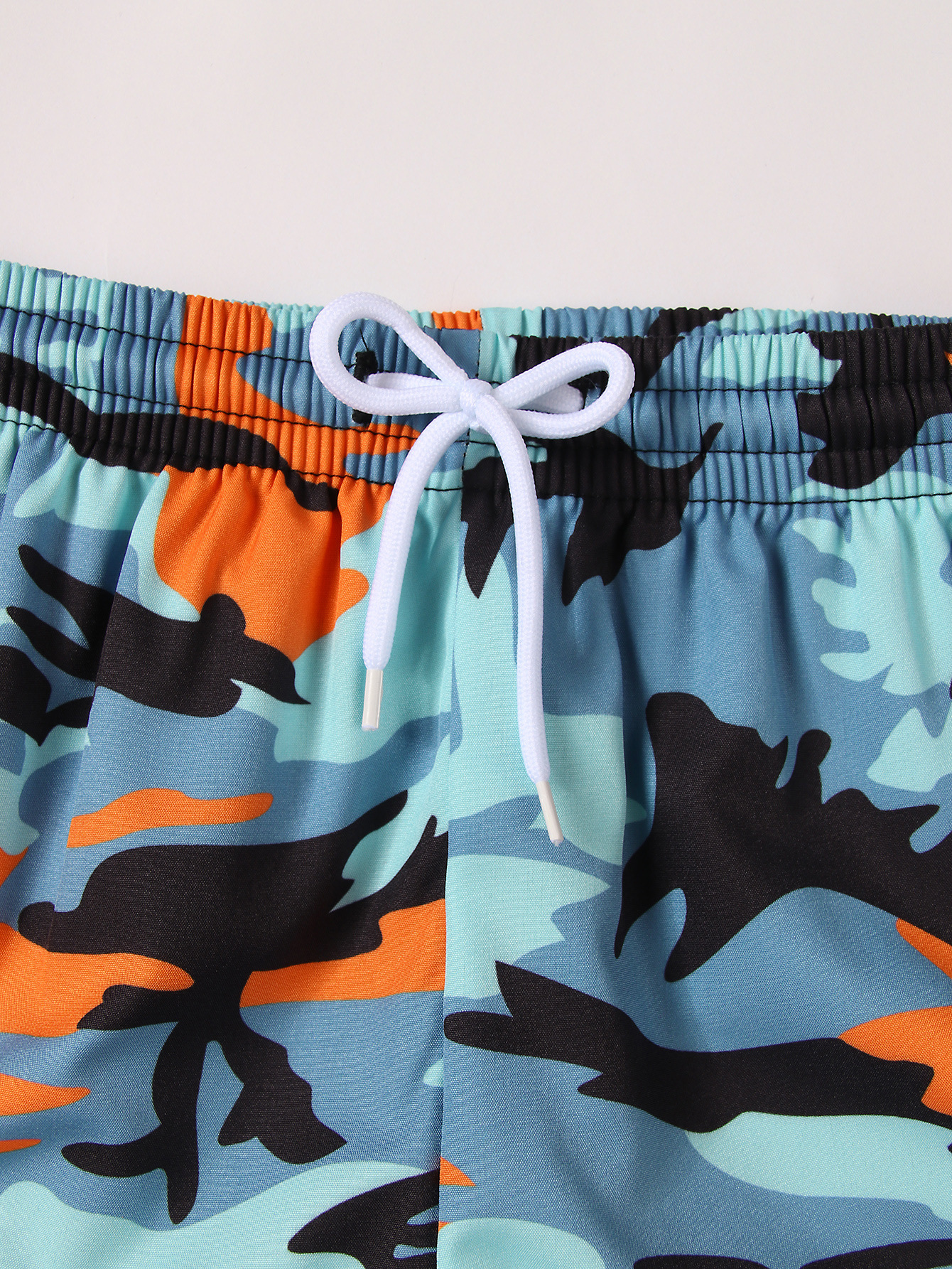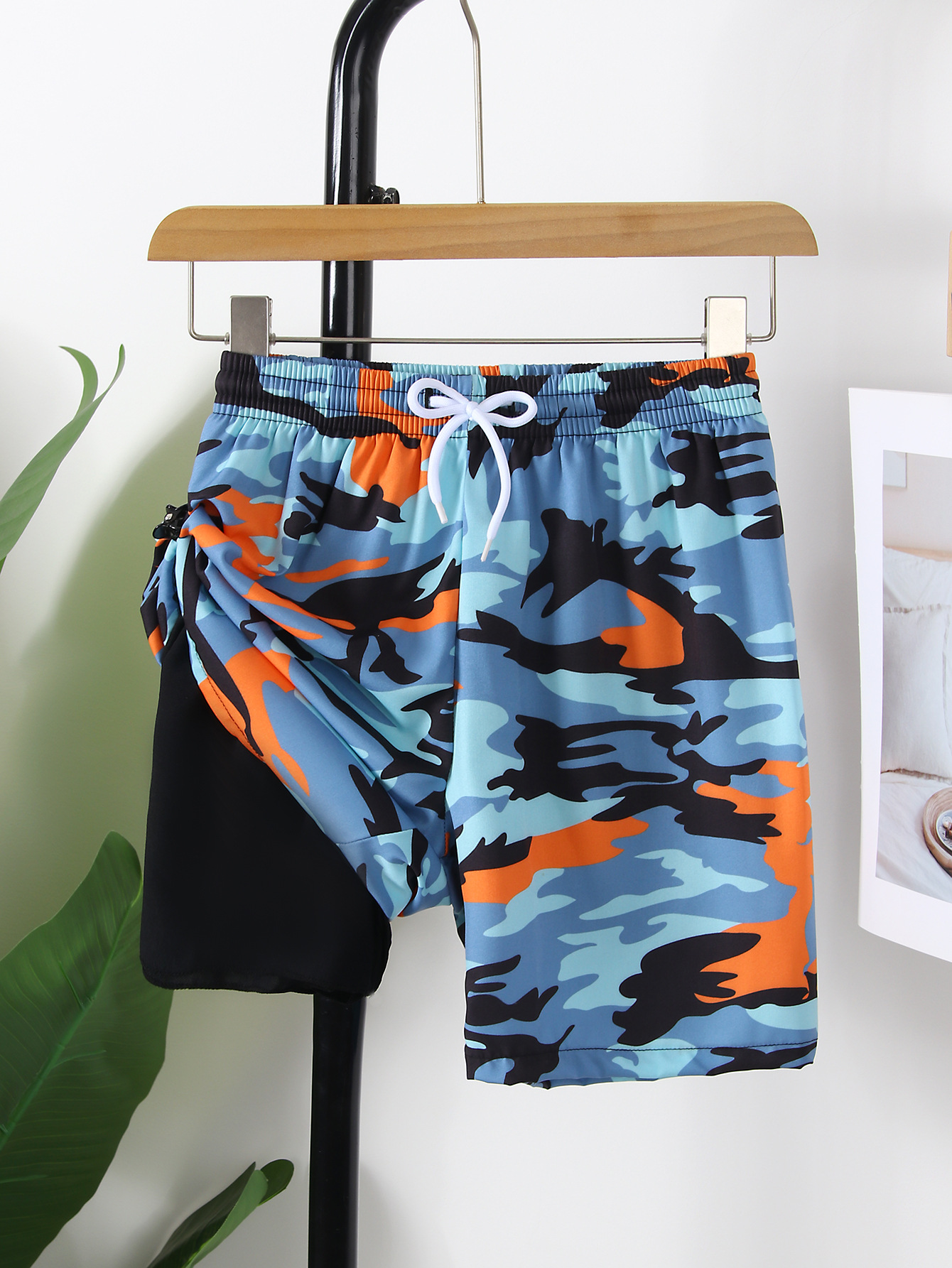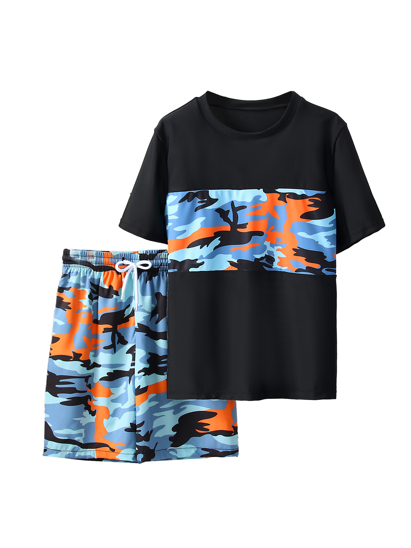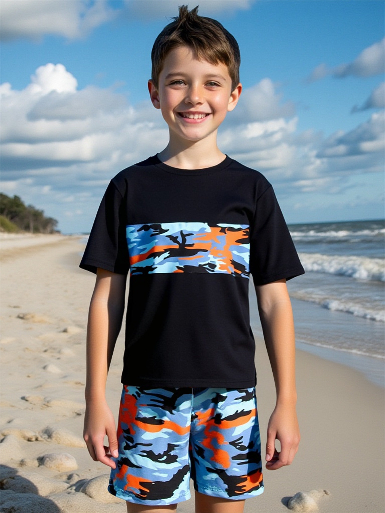 어린이 수영복 소년 스플릿 수영복 2025 새로운 반팔 비치 반바지 속건성 위장 소년 수영복