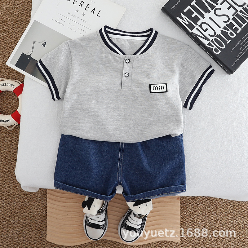 소년 여름 바나나 목걸이 짧은 소매 세트 2025 새로운 여름 어린이 아기 유행 반바지 옷스토어 가기