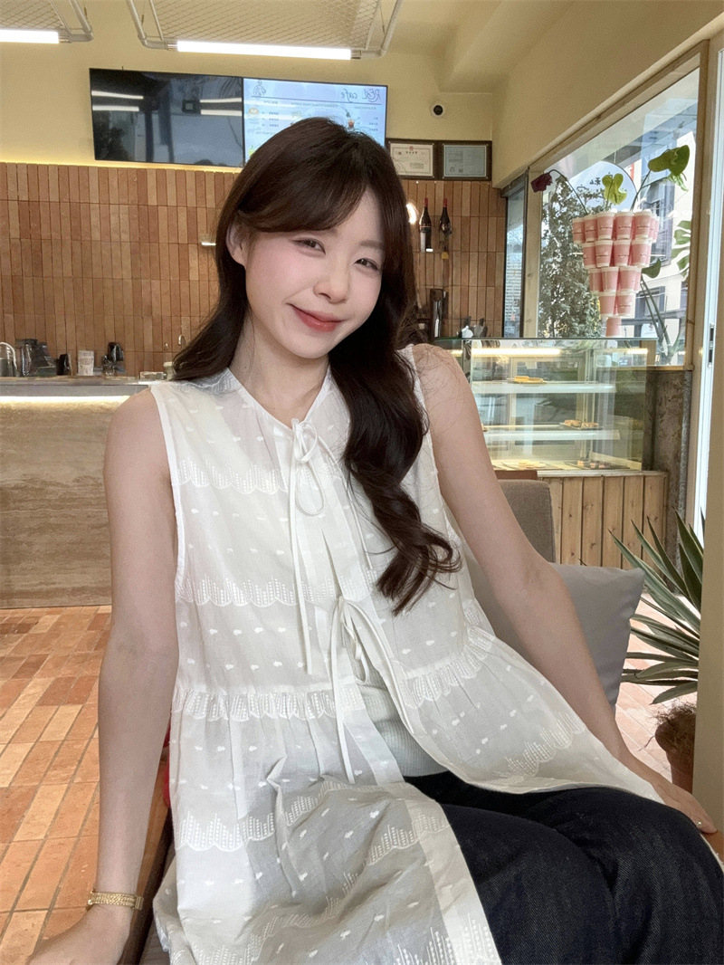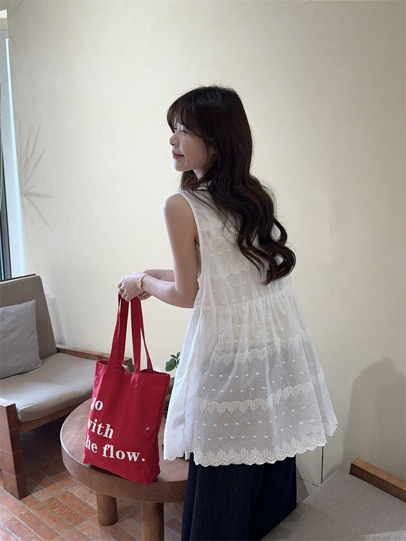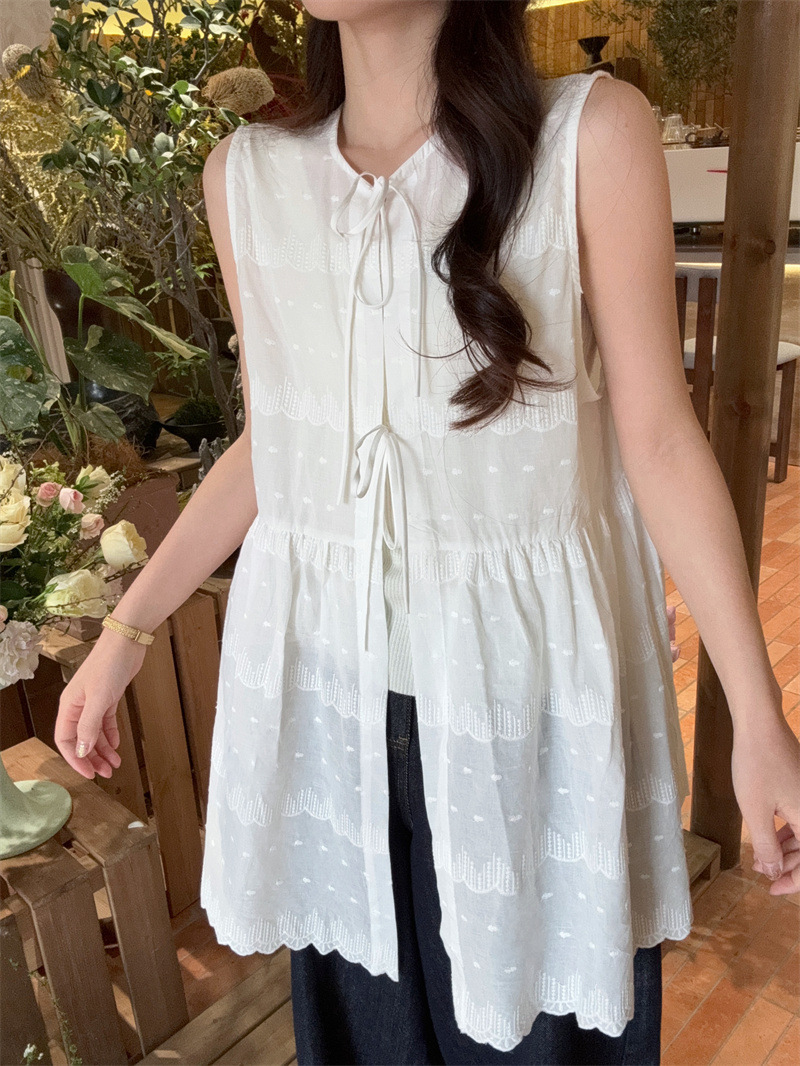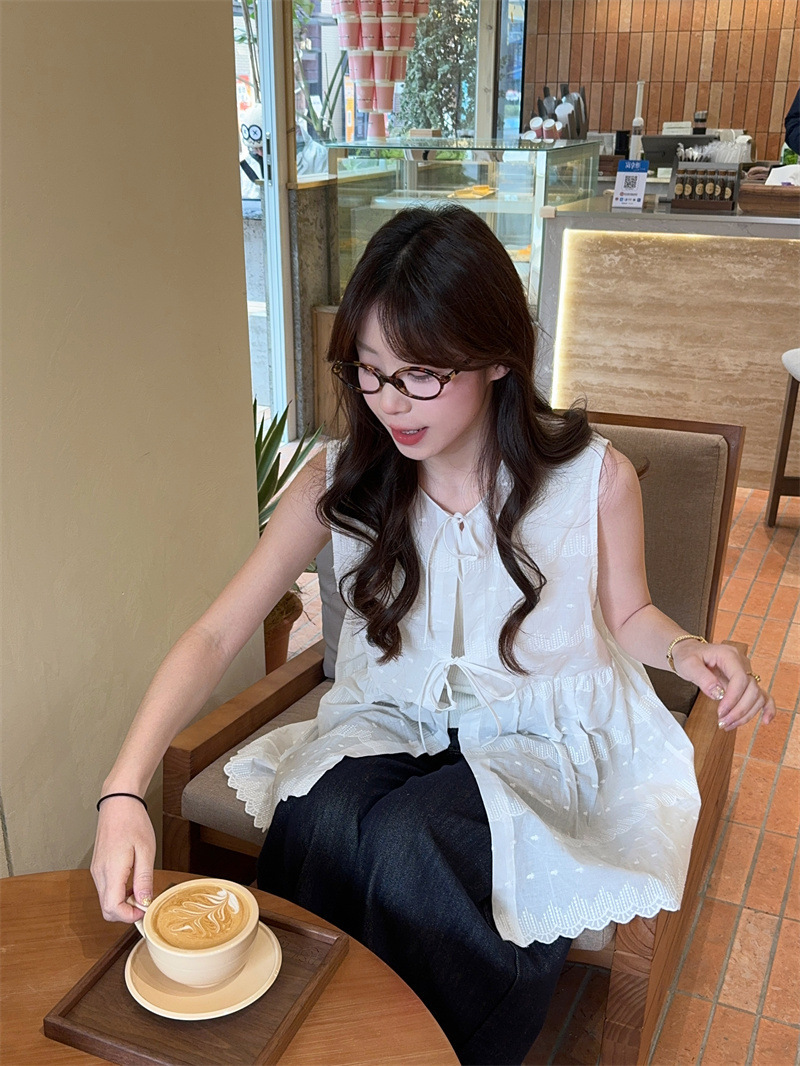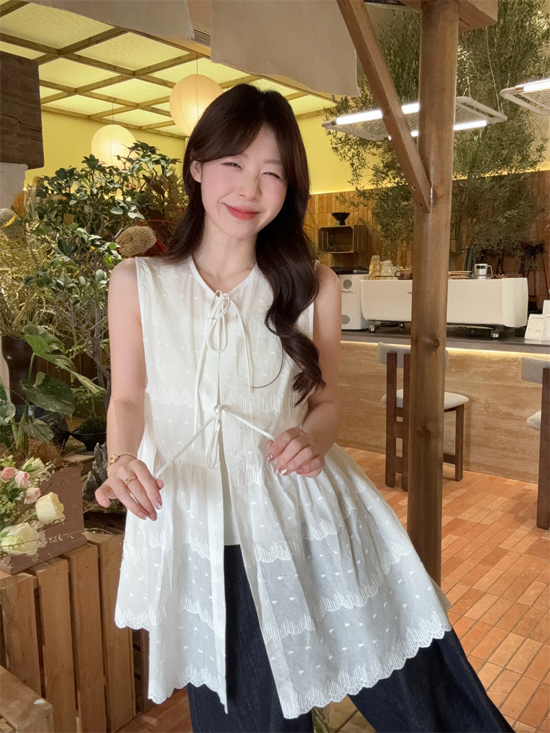 프랑스 매운 자수 민소매 블라우스 스택 디자인 빅 원피스스토어 가기