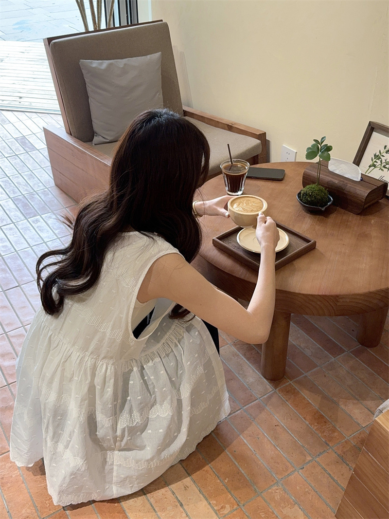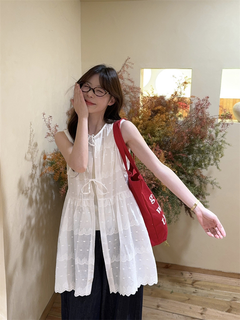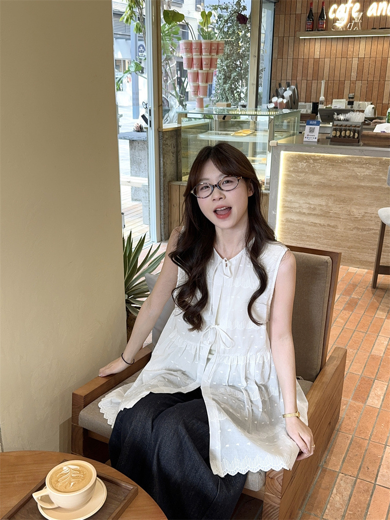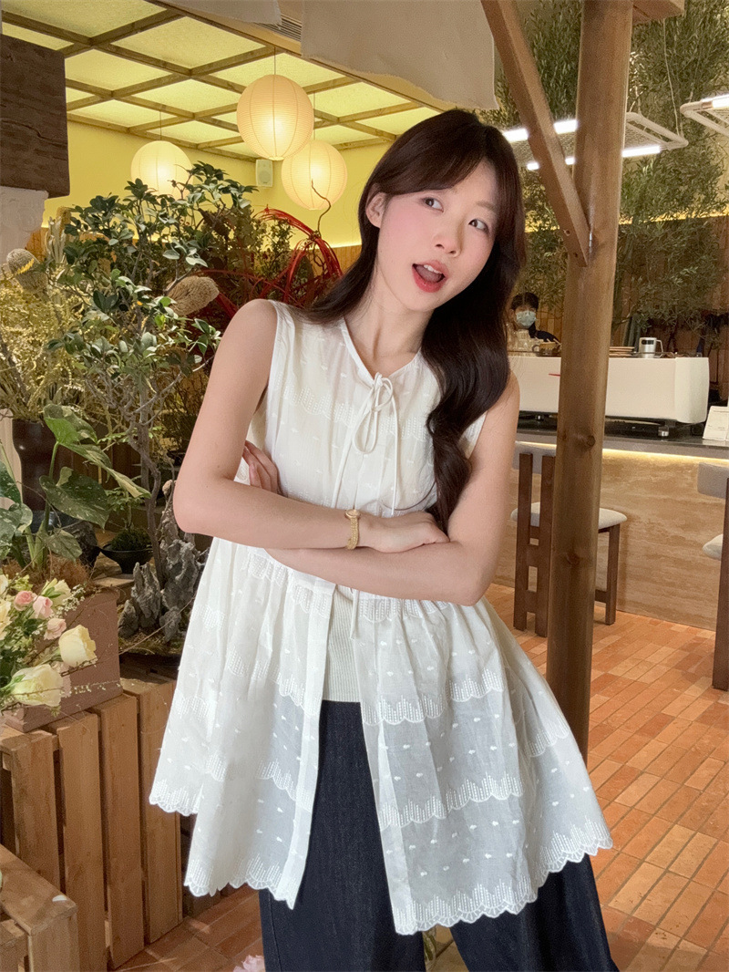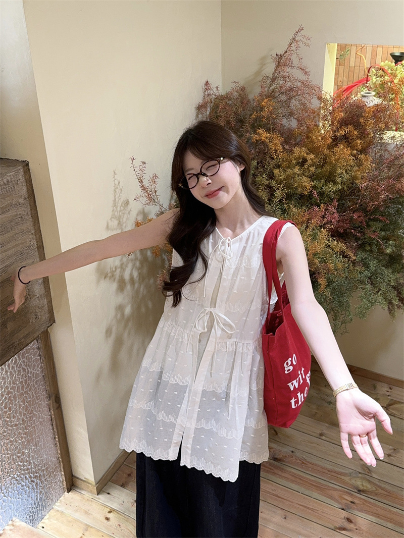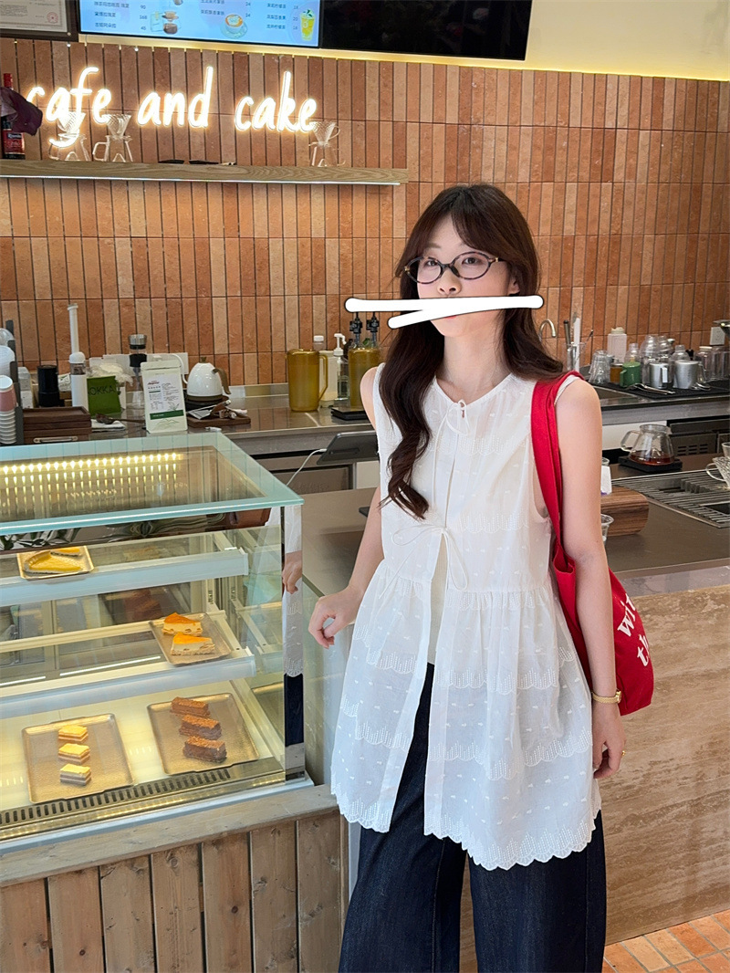 프랑스 매운 자수 민소매 블라우스 스택 디자인 빅 원피스스토어 가기