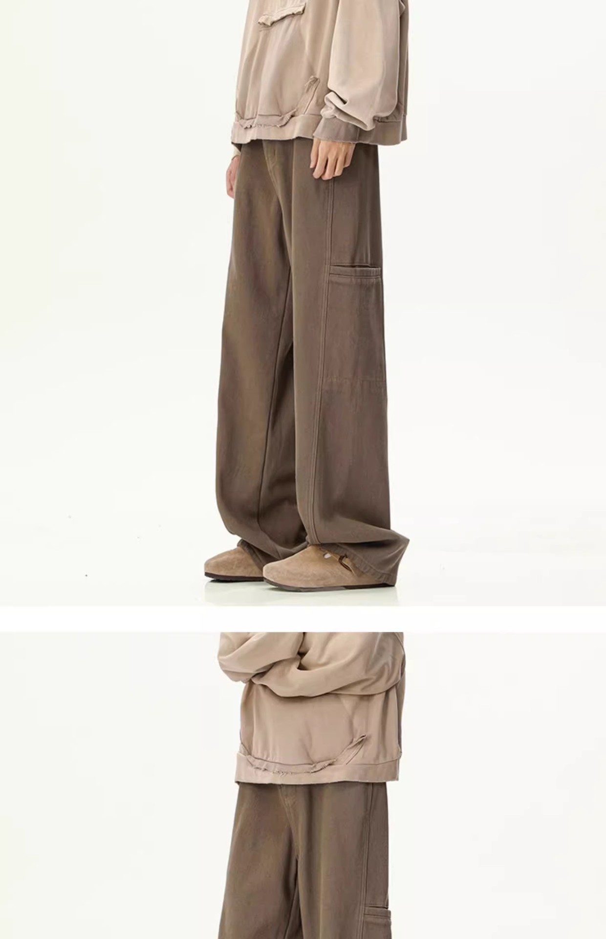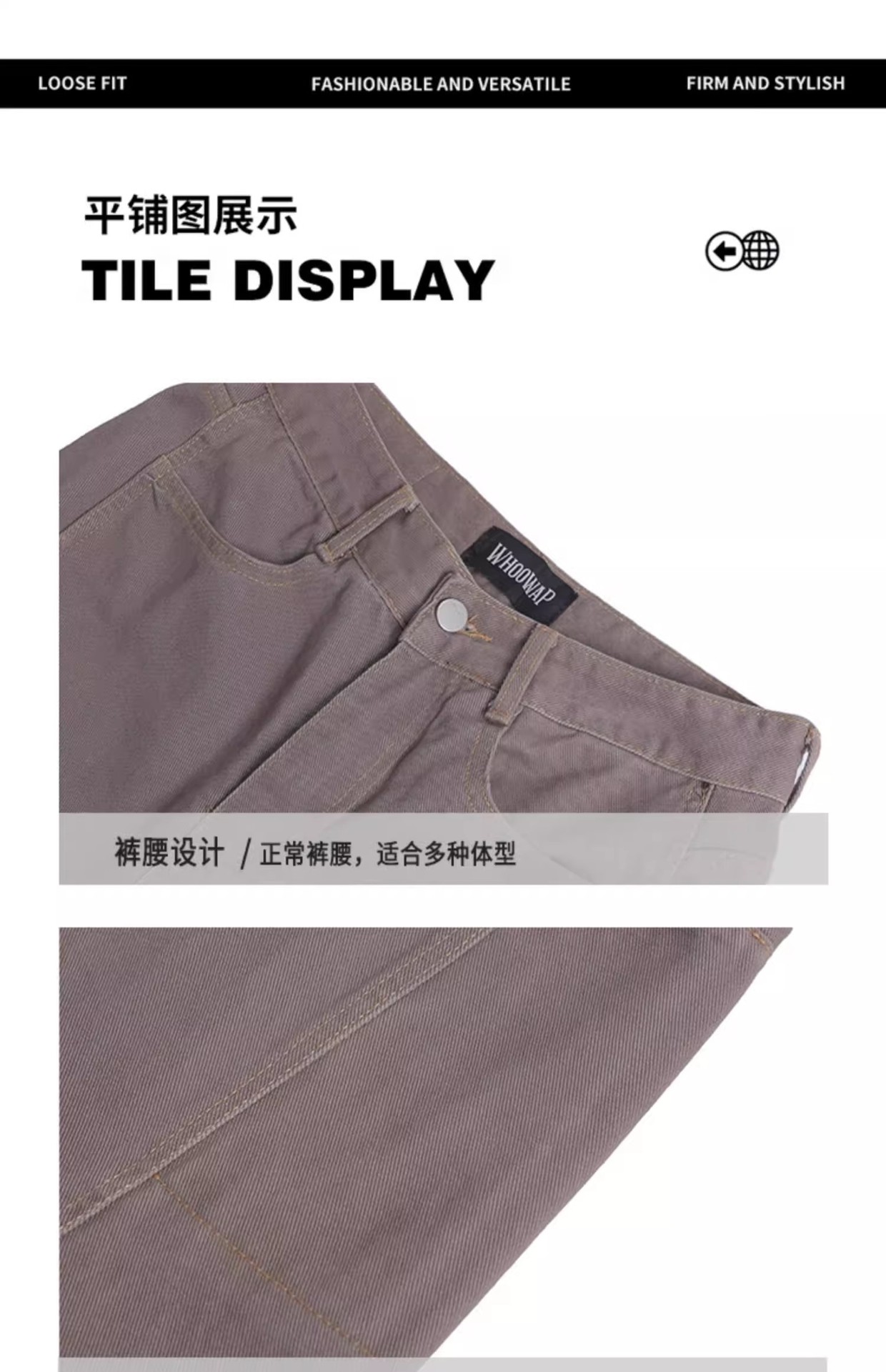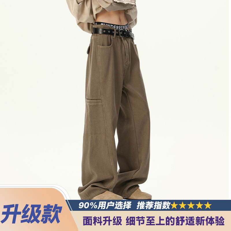 남성과 여성을 위한 메일라드 커피 컬러 작업복 청바지 봄과 가을 루즈 스트레이트 캐주얼 소년 드레이프 와이드 팬츠스토어 가기