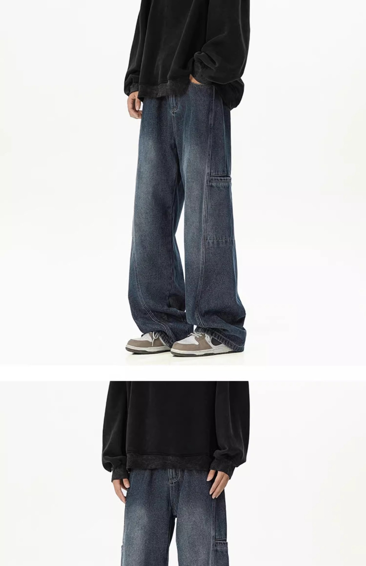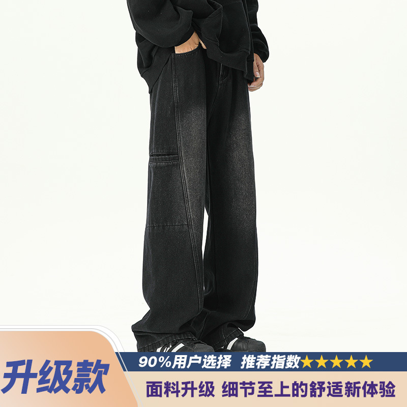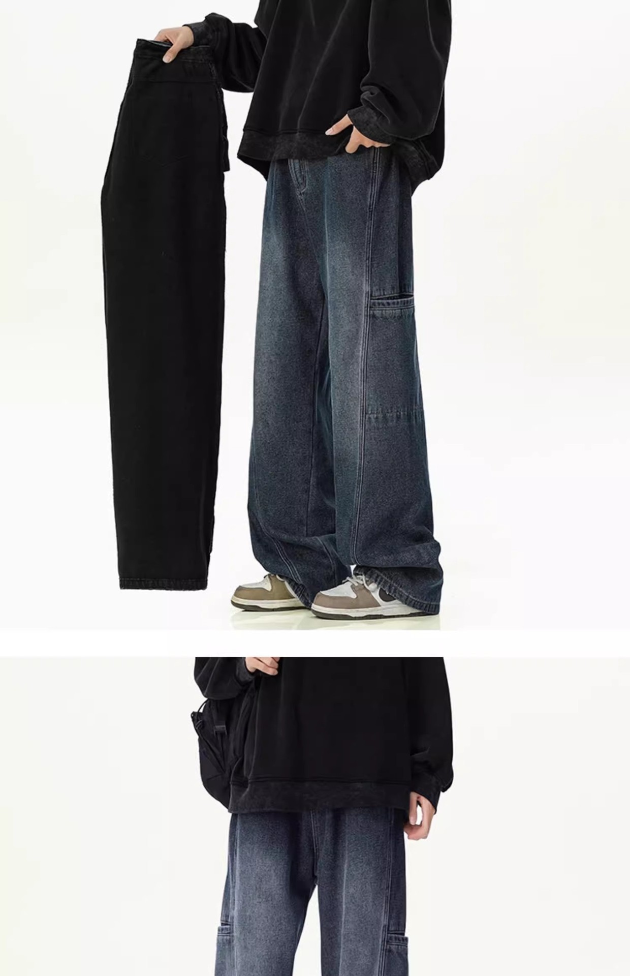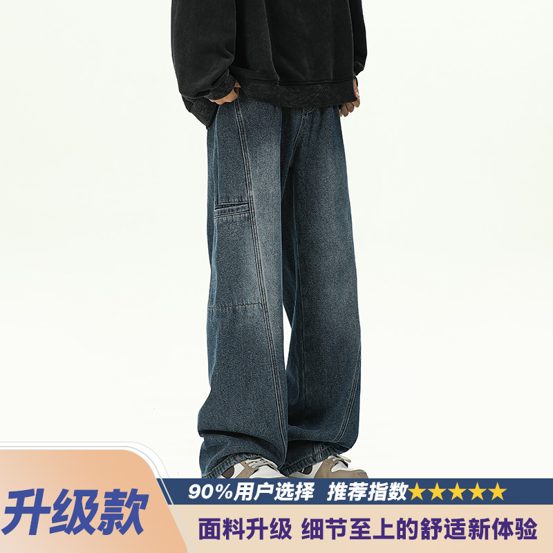 남성과 여성을 위한 메일라드 커피 컬러 작업복 청바지 봄과 가을 루즈 스트레이트 캐주얼 소년 드레이프 와이드 팬츠스토어 가기