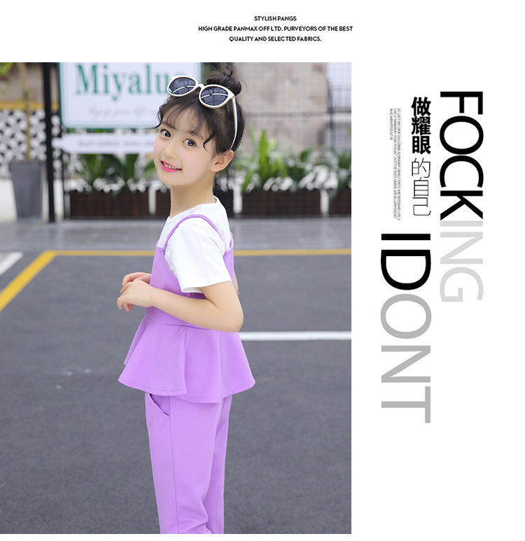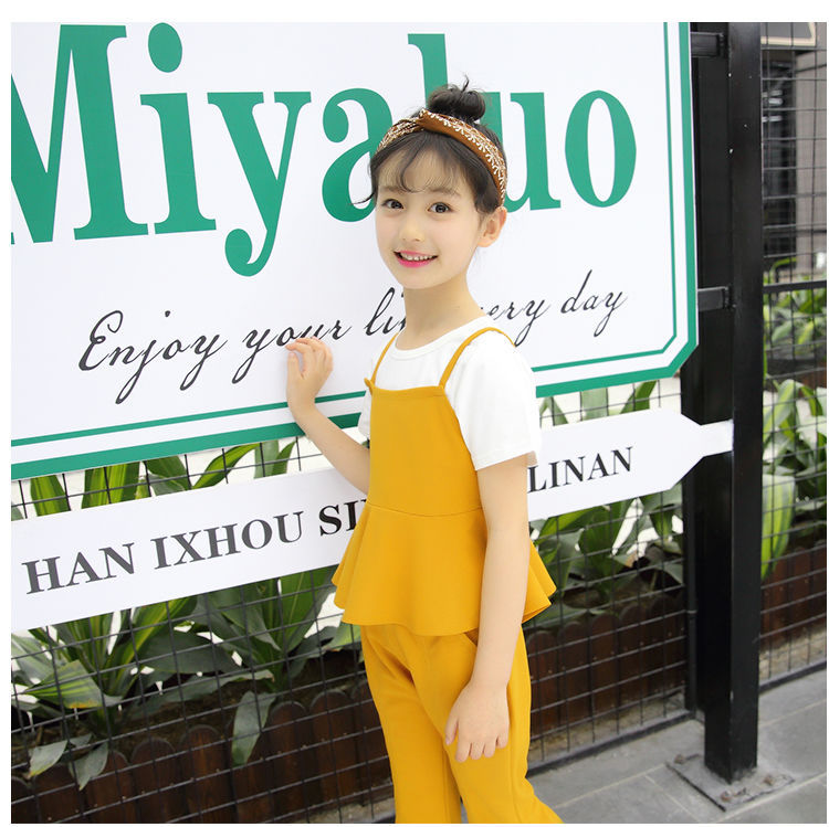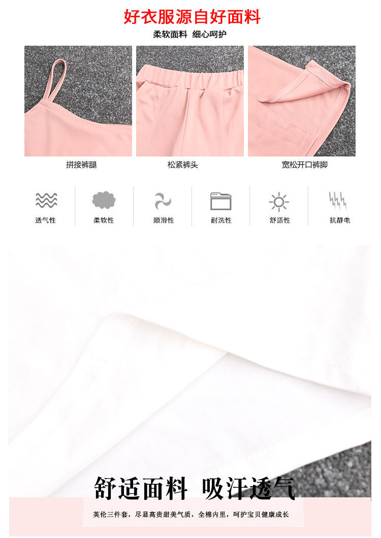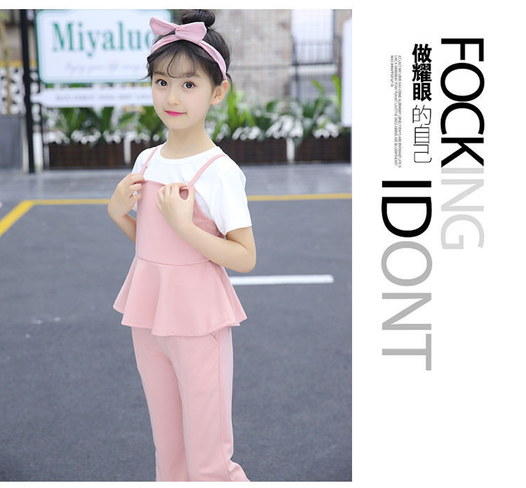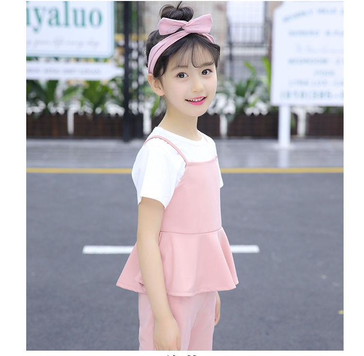 여자 여름 세 조각 세트 한국 스타일 여름 새로운 어린이 착용 세련된 반팔 세트 헤어