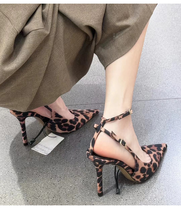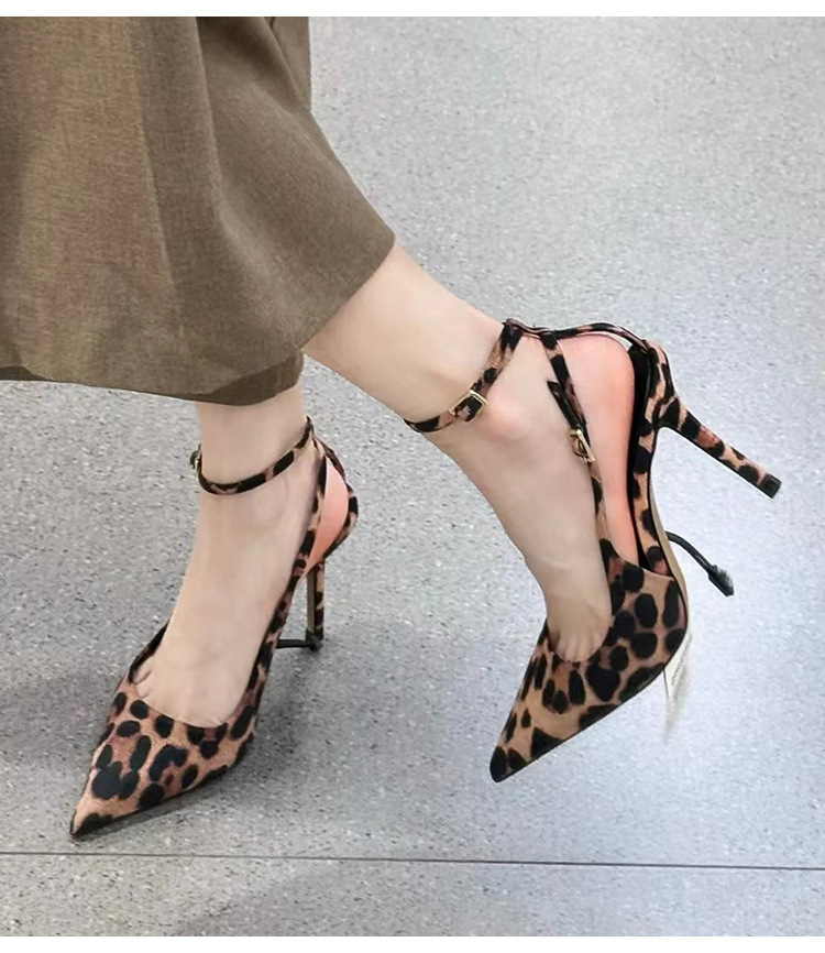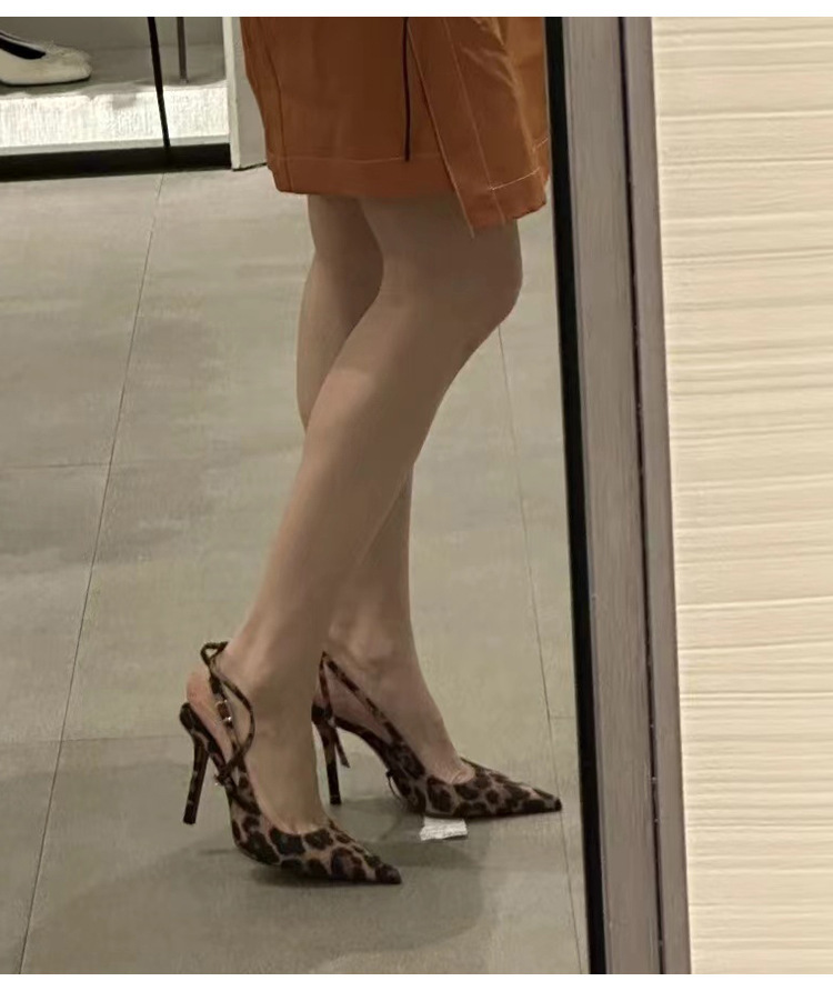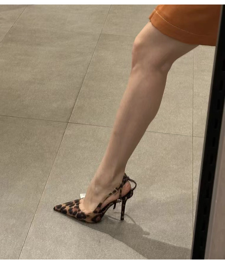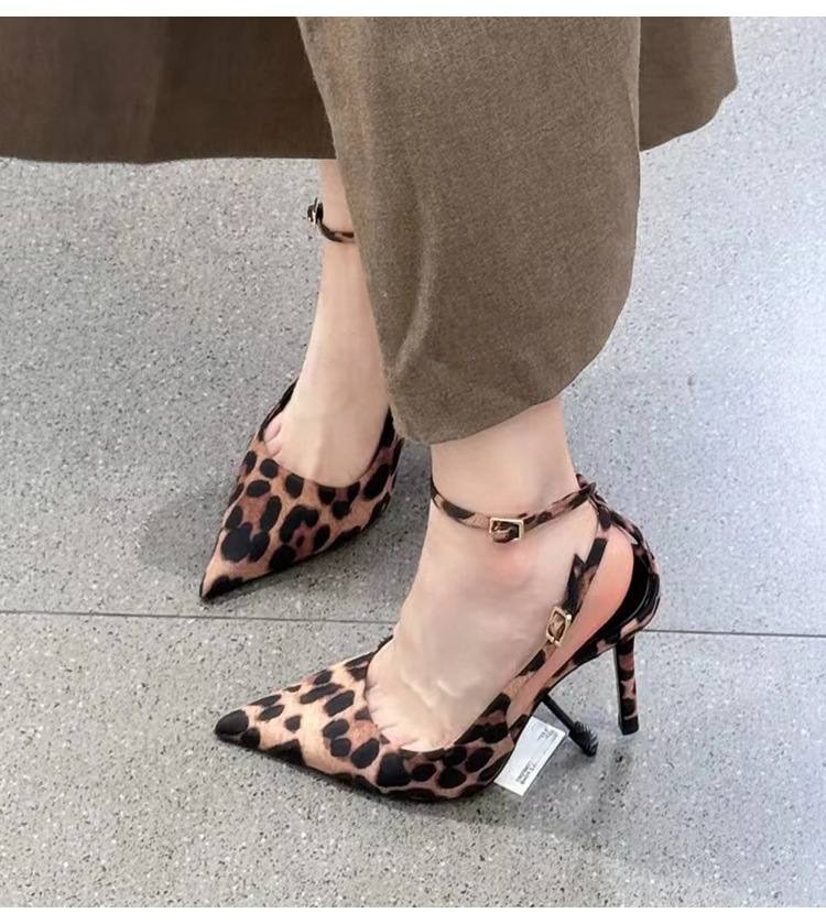 여성을위한 뾰족한 레오파드 프린트 원 버튼 하이힐 2025 여름 새로운 스타일 프랑스 스타일 발이 피곤하지 않은 섹시한 스틸레토 슈즈스토어 가기