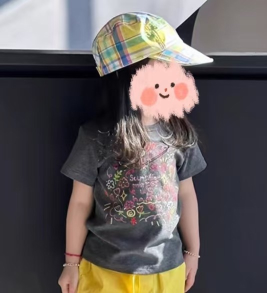 어린이 의류 소녀 세트 2025 여름 새로운 만화 낙서 인쇄 회색 짧은 소매 티셔츠 탑 캐주얼 반바지스토어 가기