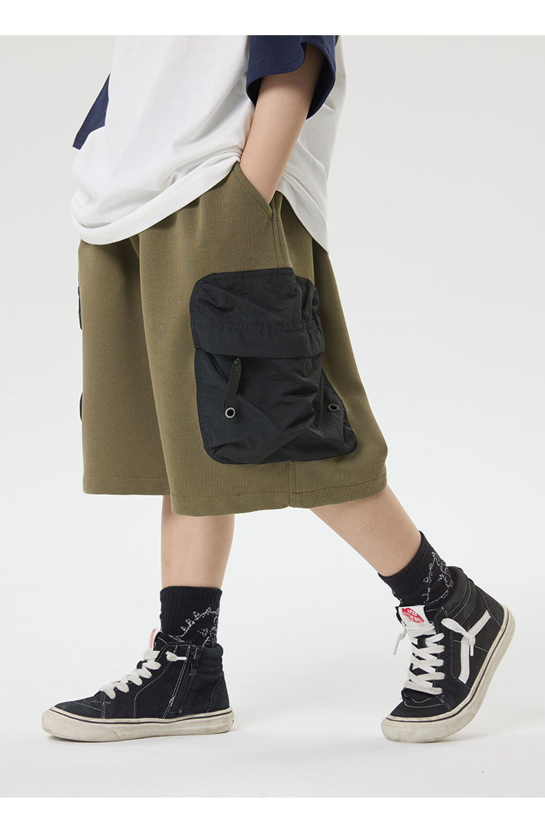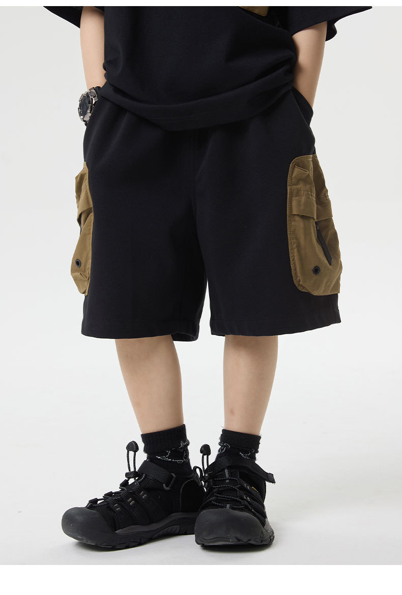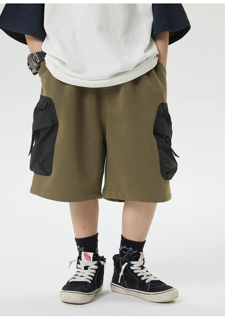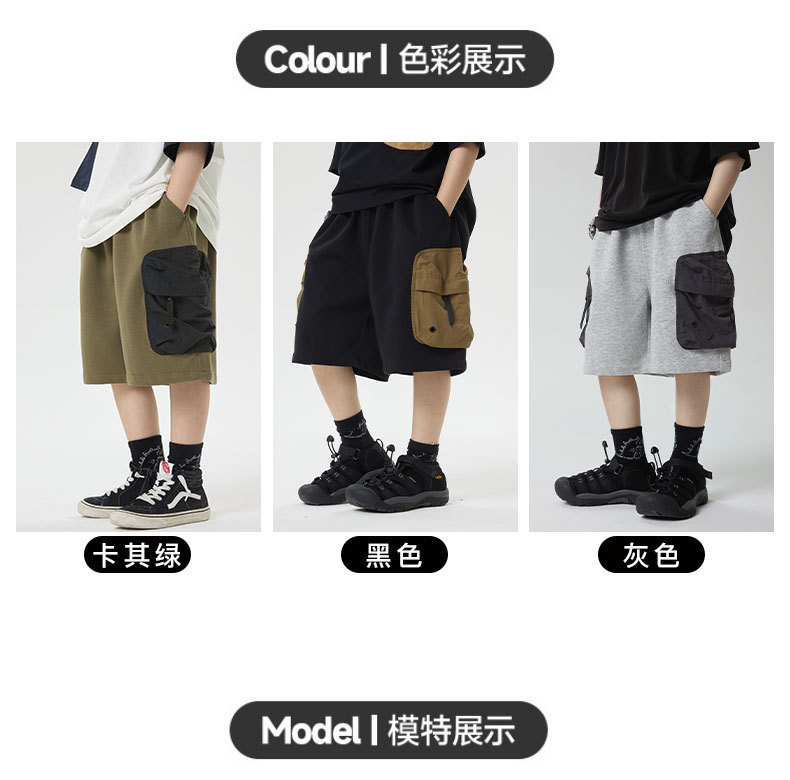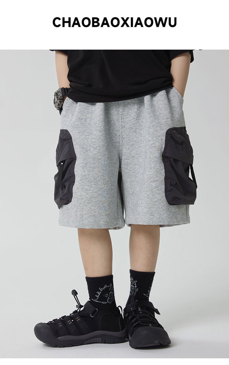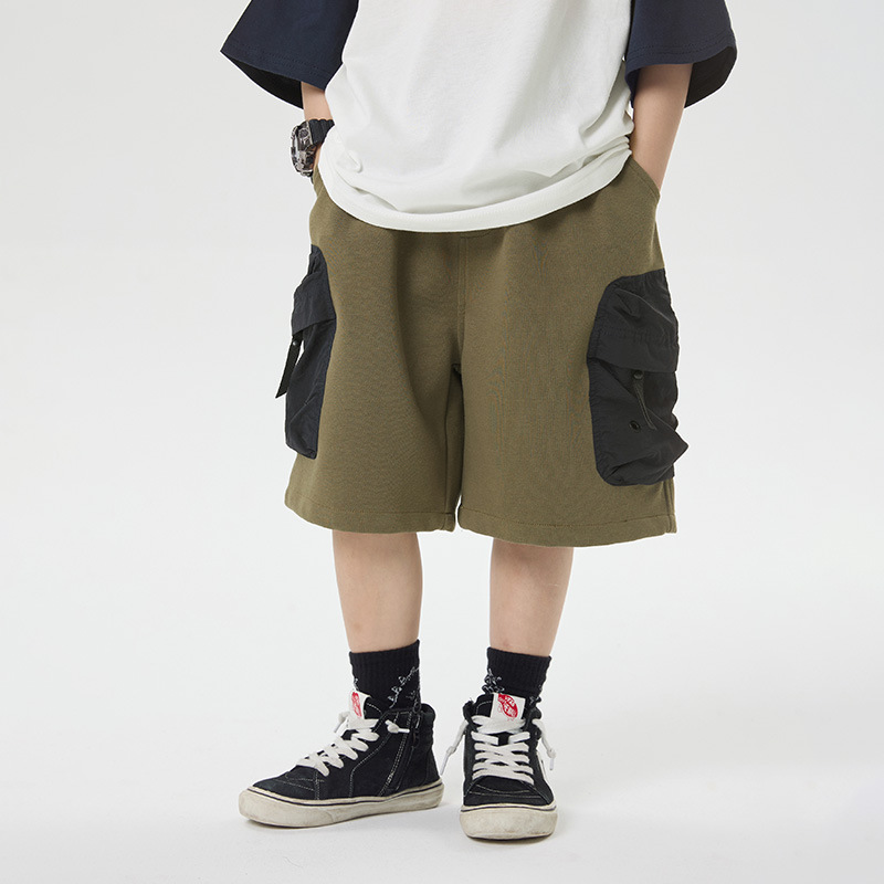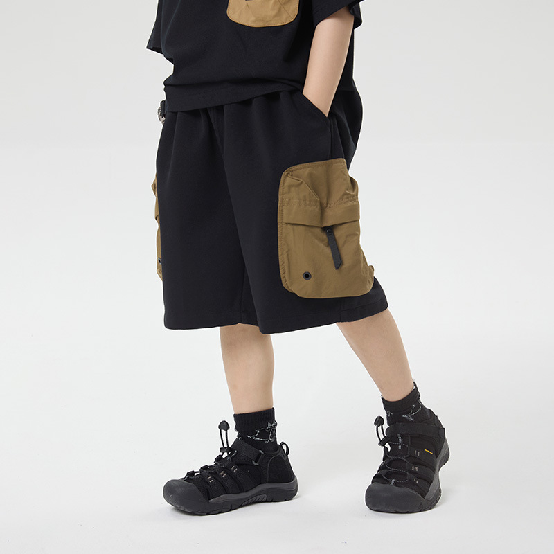 소년 반바지 2025 어린이 여름 새로운 대형 포켓 짧은 운동복 어린이 컬러 대비 올매치 5 부 바지 웨스턴 스타일스토어 가기