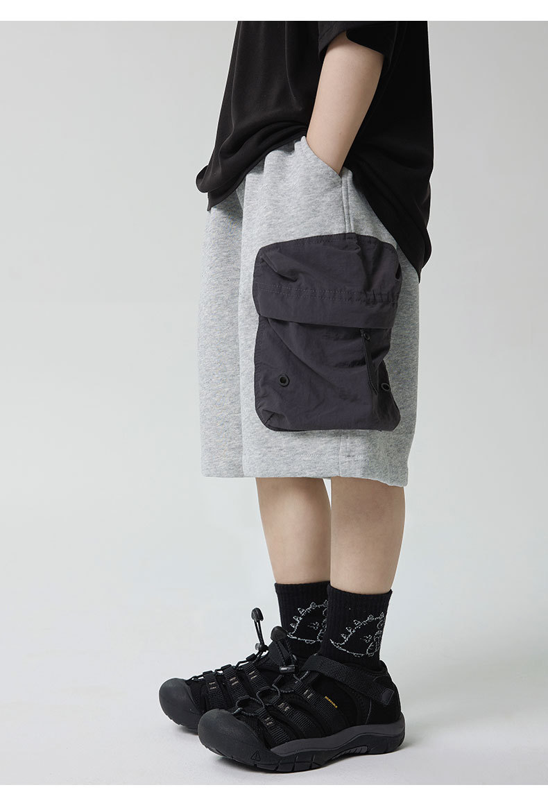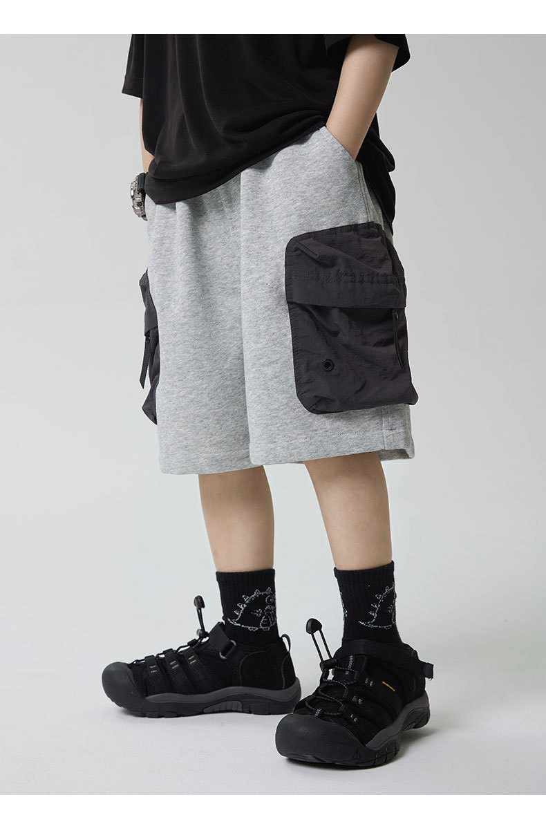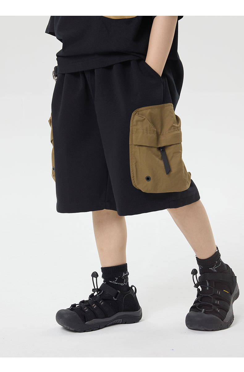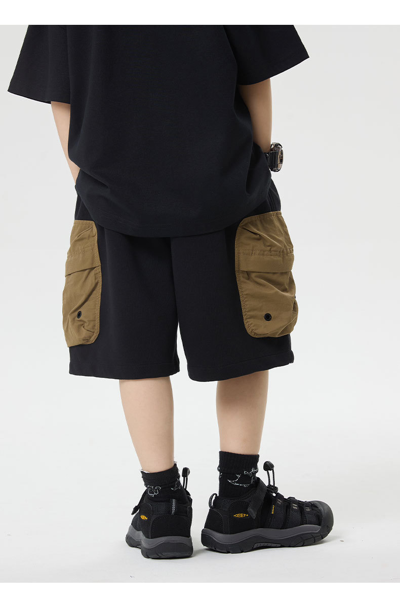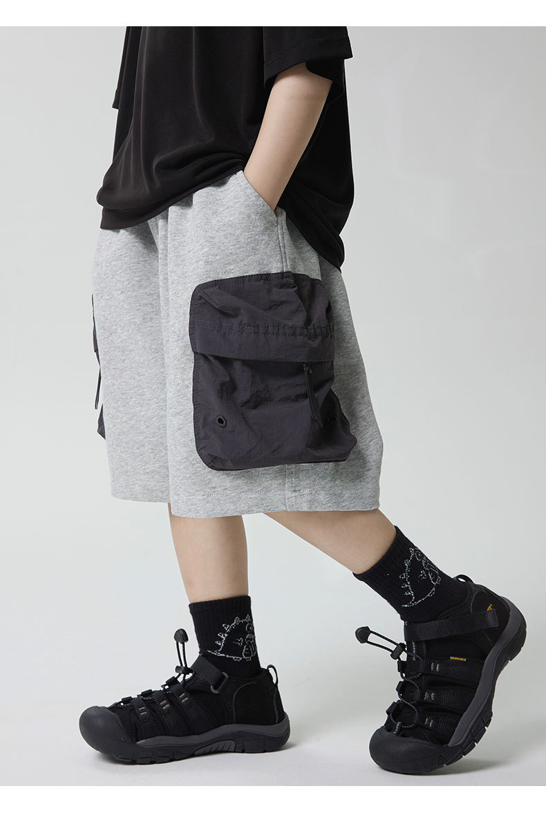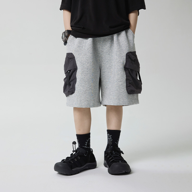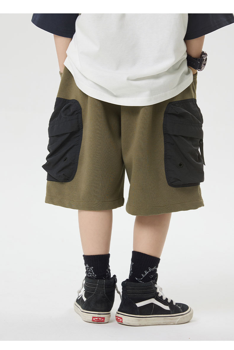 소년 반바지 2025 어린이 여름 새로운 대형 포켓 짧은 운동복 어린이 컬러 대비 올매치 5 부 바지 웨스턴 스타일스토어 가기