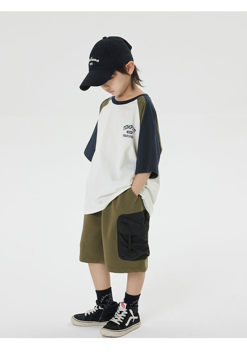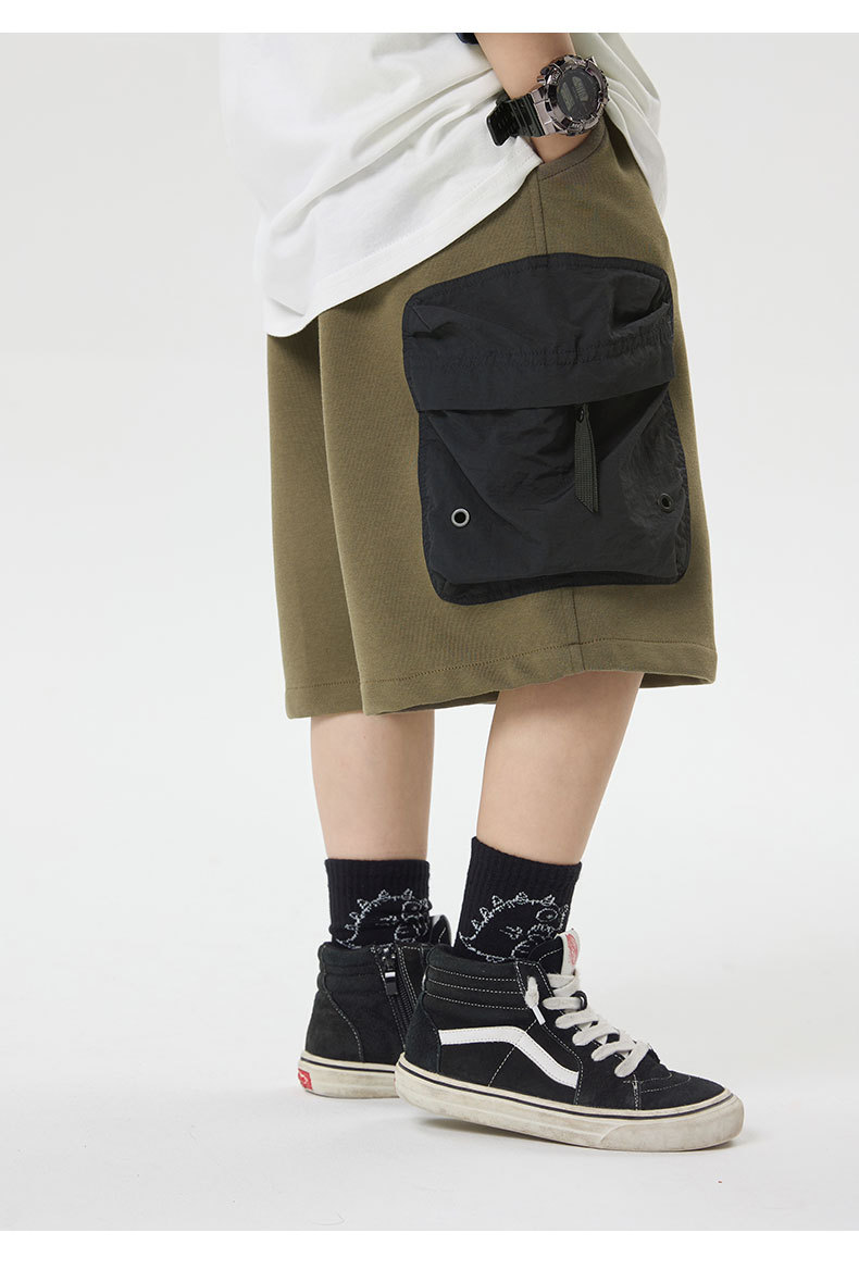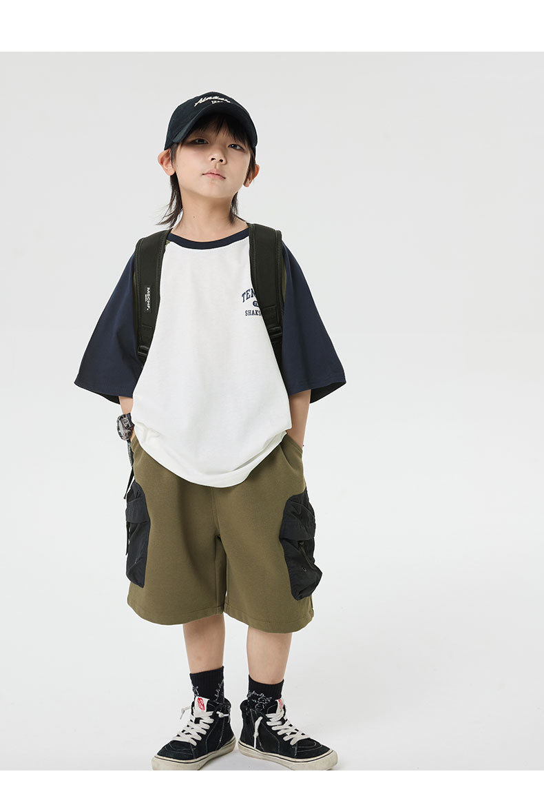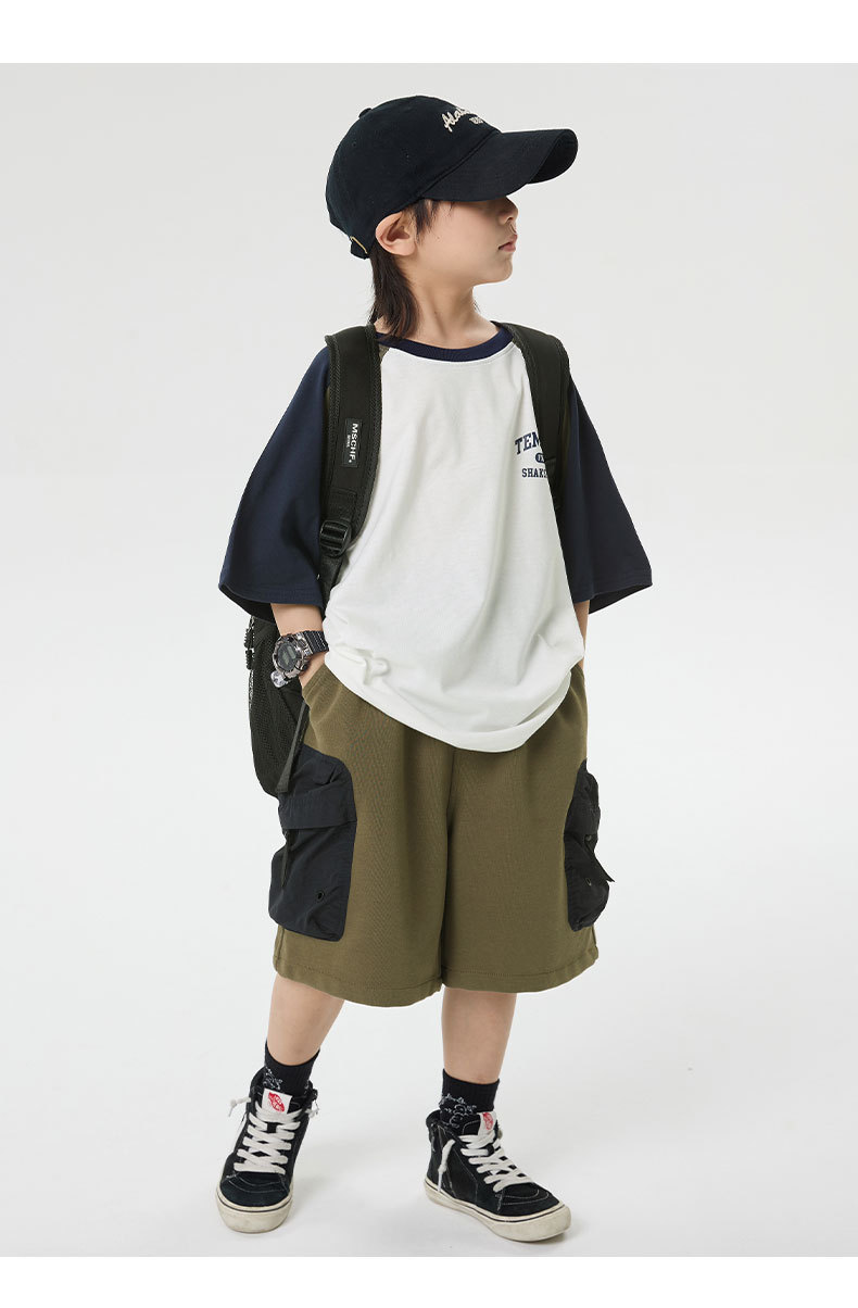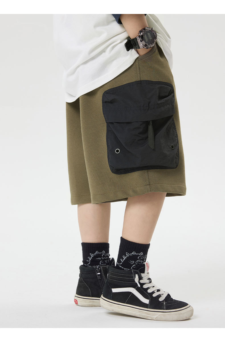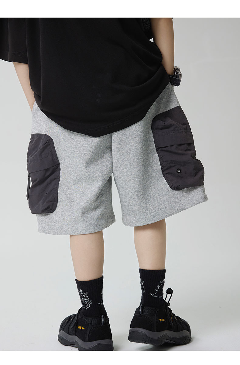 소년 반바지 2025 어린이 여름 새로운 대형 포켓 짧은 운동복 어린이 컬러 대비 올매치 5 부 바지 웨스턴 스타일스토어 가기