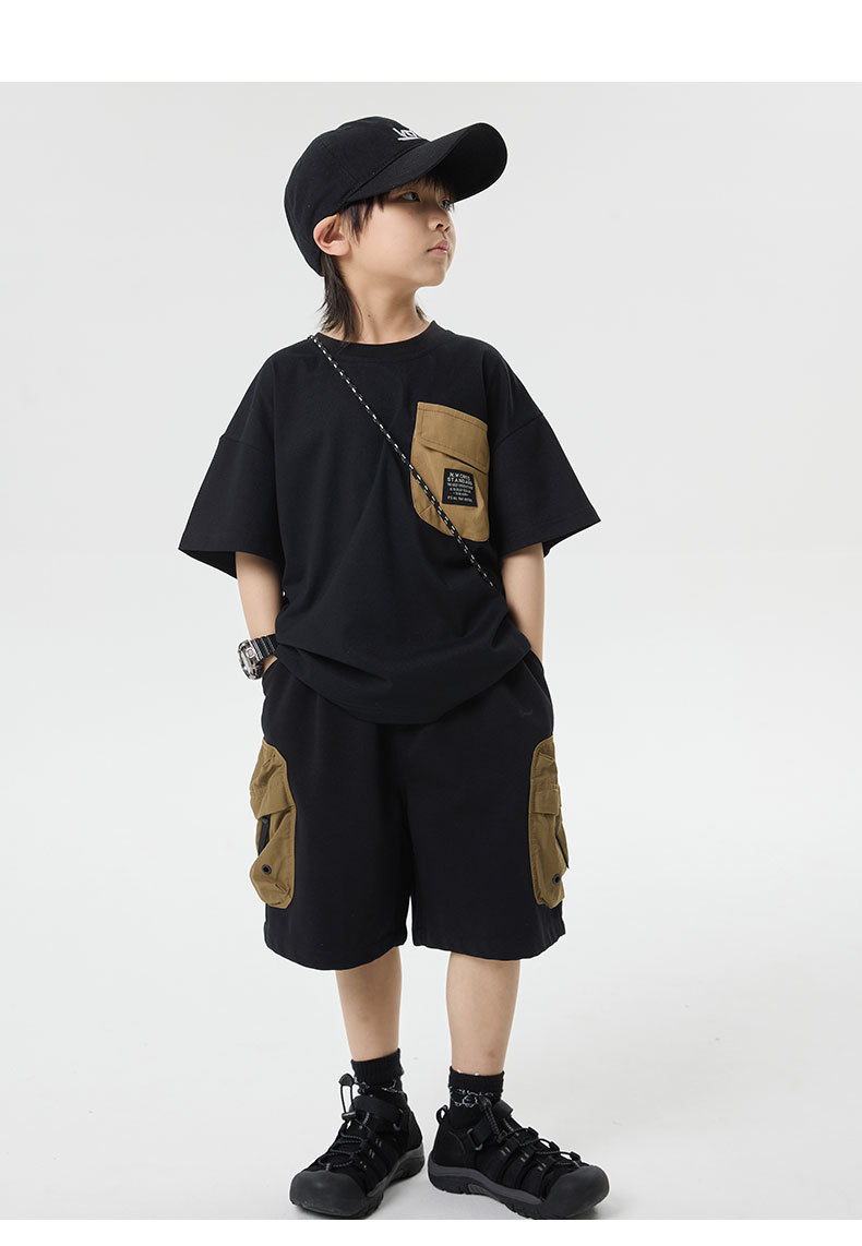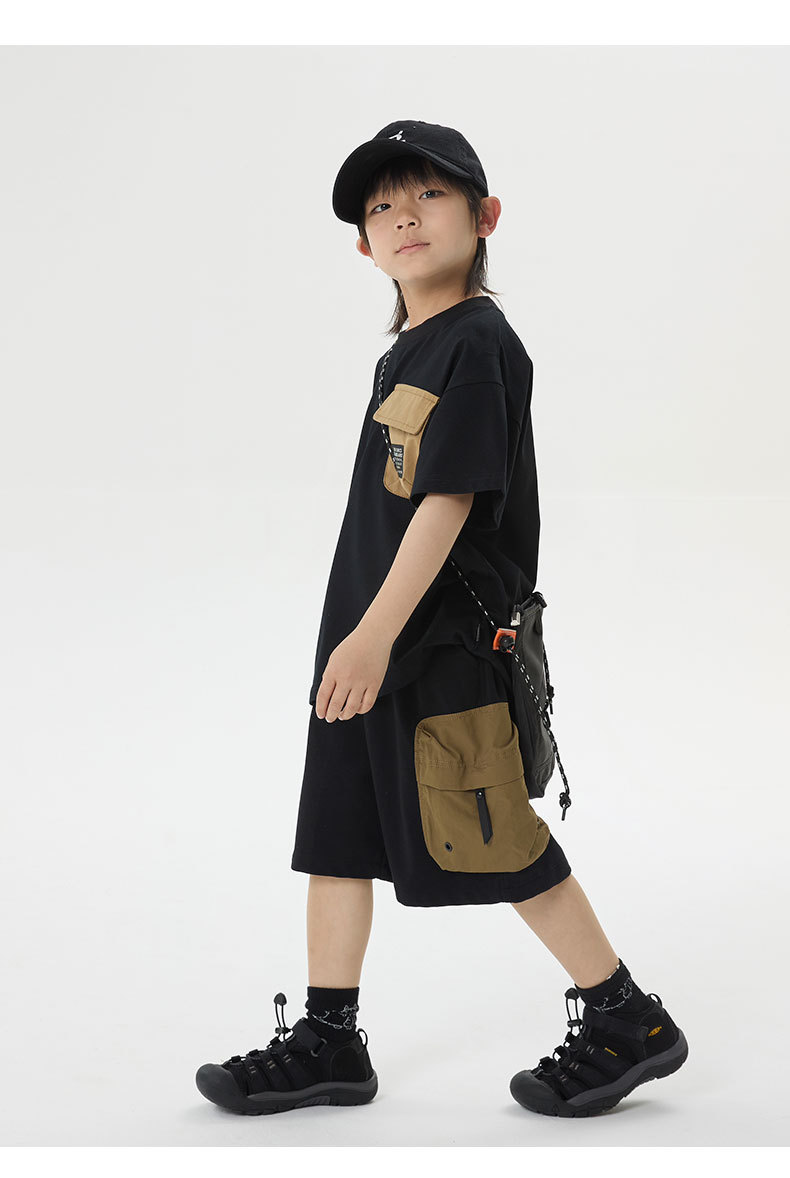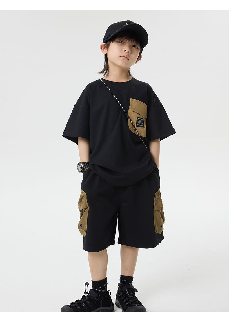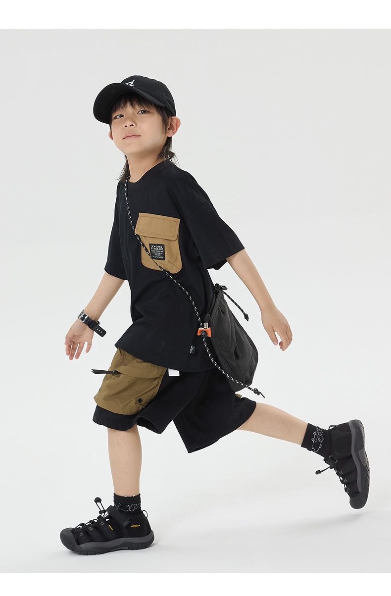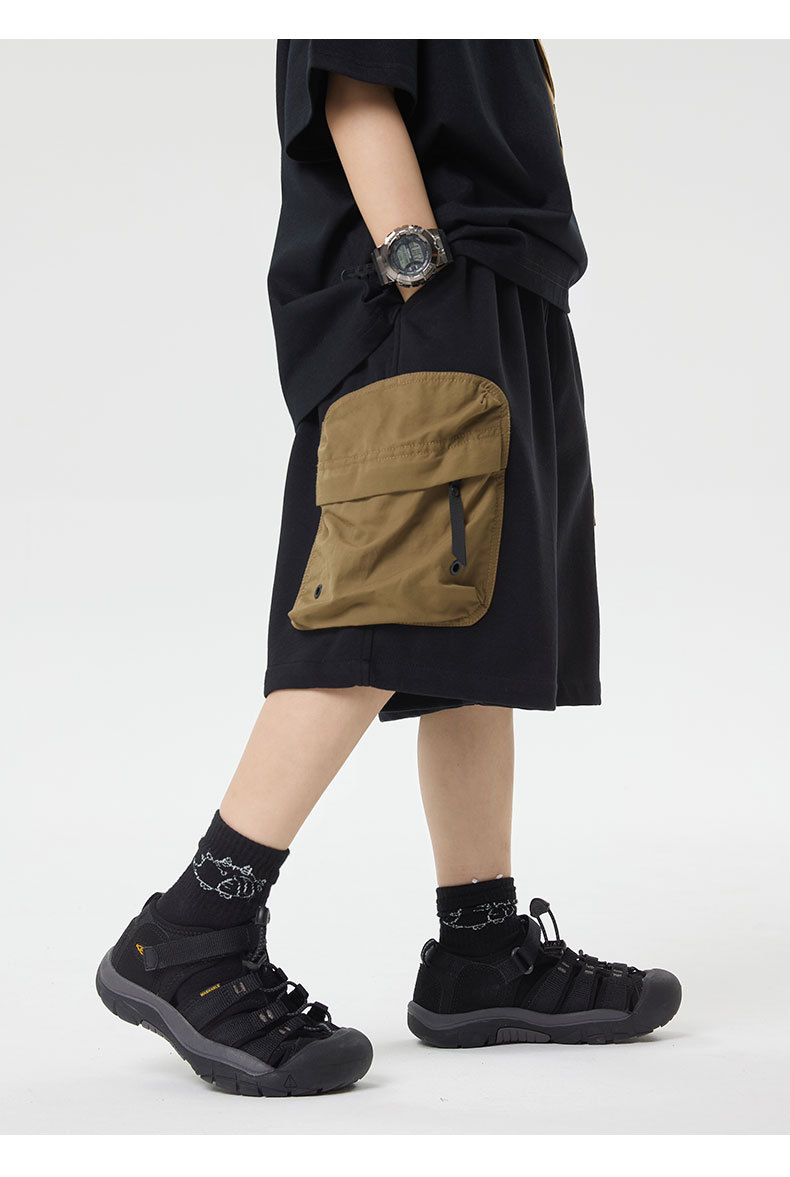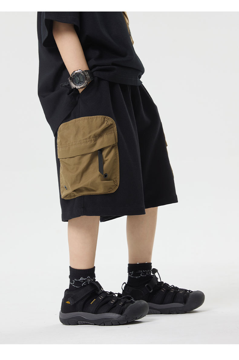 소년 반바지 2025 어린이 여름 새로운 대형 포켓 짧은 운동복 어린이 컬러 대비 올매치 5 부 바지 웨스턴 스타일스토어 가기