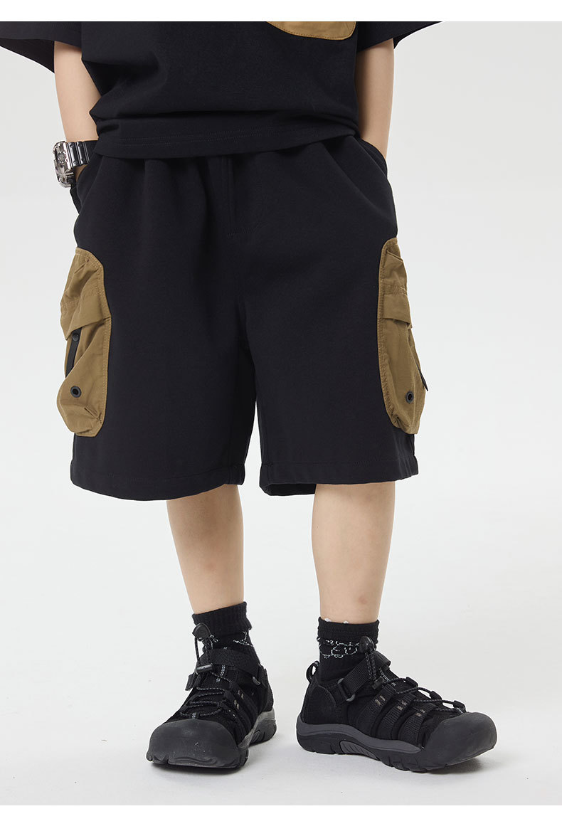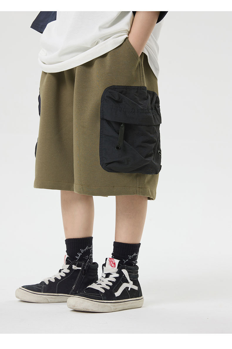 소년 반바지 2025 어린이 여름 새로운 대형 포켓 짧은 운동복 어린이 컬러 대비 올매치 5 부 바지 웨스턴 스타일