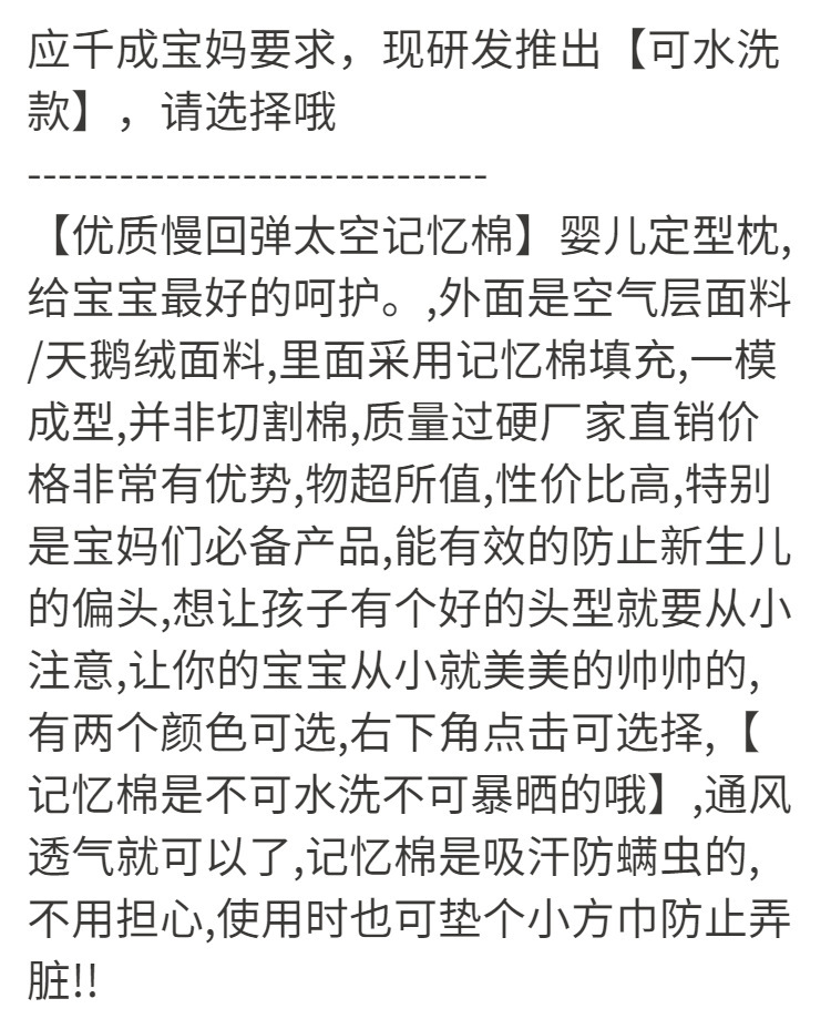 아기 베개 스타일링 베개 0-1 세 신생아 수정 편차 방지 머리 어린이 아기 베개 메모리 면 사계절스토어 가기