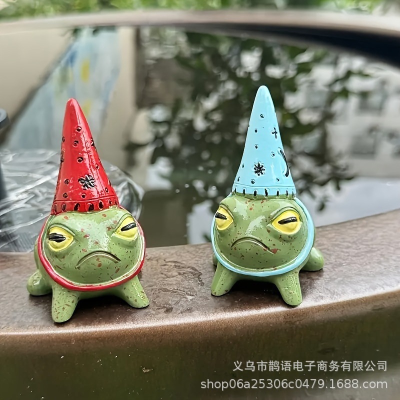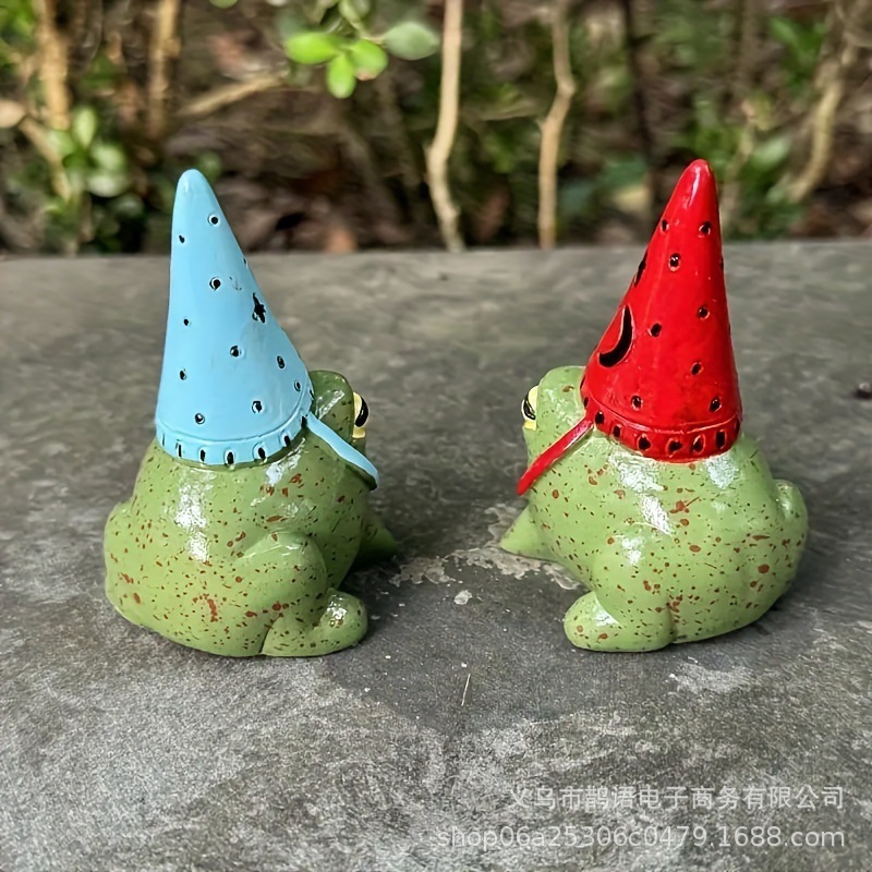 국경을 넘는 뜨거운 판매 새로운 작은 개구리 수지 장식품 파티 모자를 쓴 작은 개구리 야외 장식 수지 공예품스토어 가기