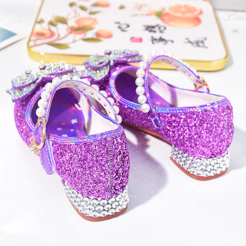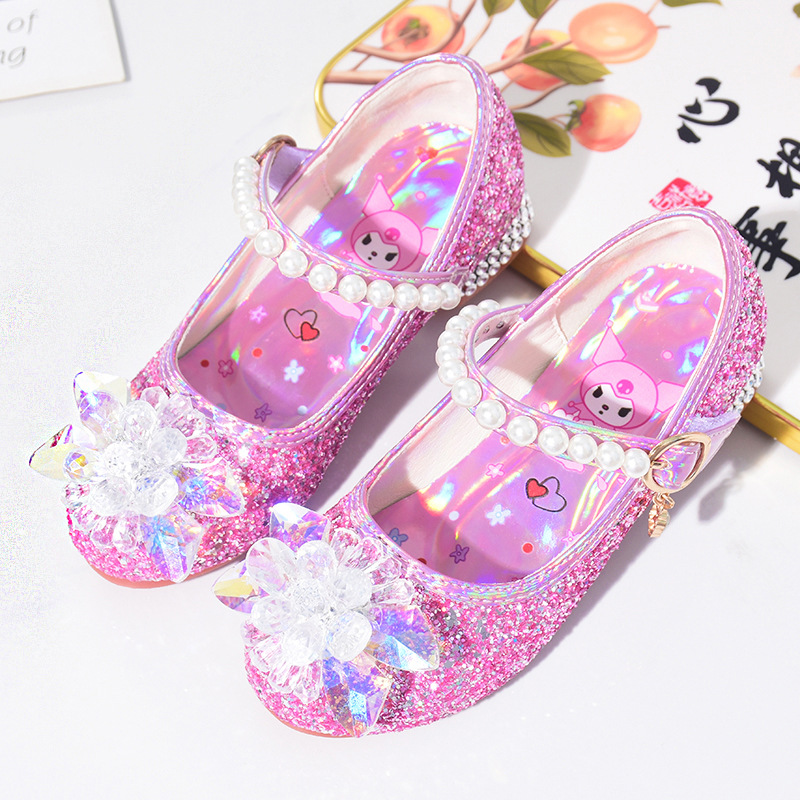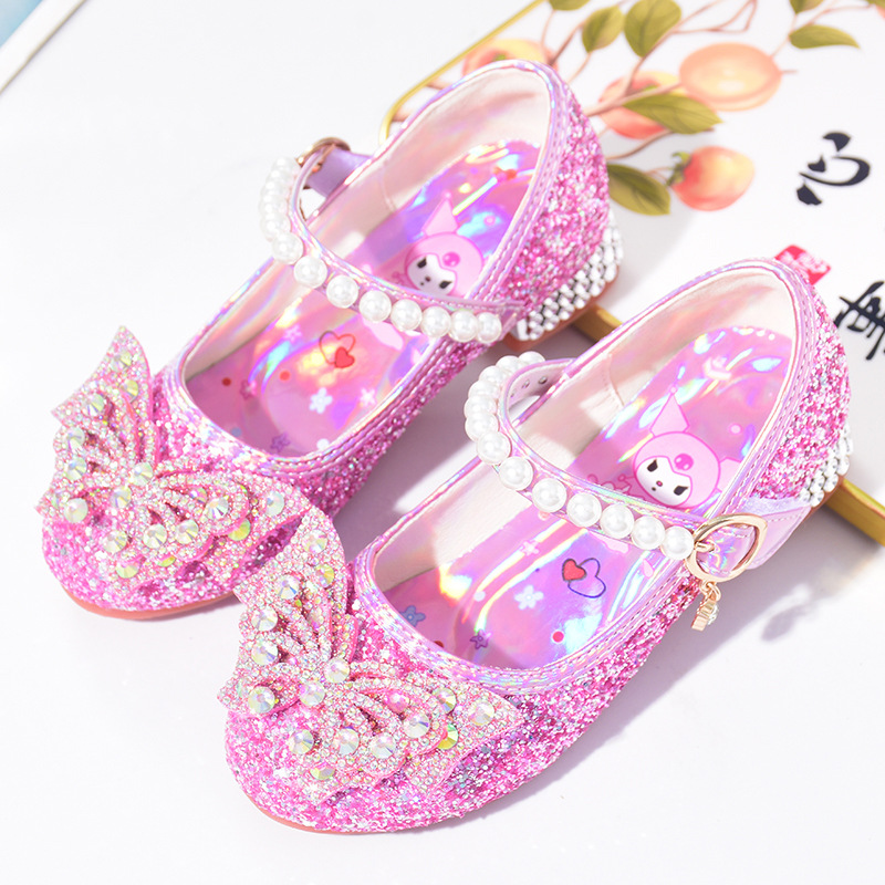 Kuromi 신발 어린 소녀 밝은 다이아몬드 크리스탈 신발 봄과 가을 어린이 신발 소녀 공주 신발 드레스 하이힐스토어 가기