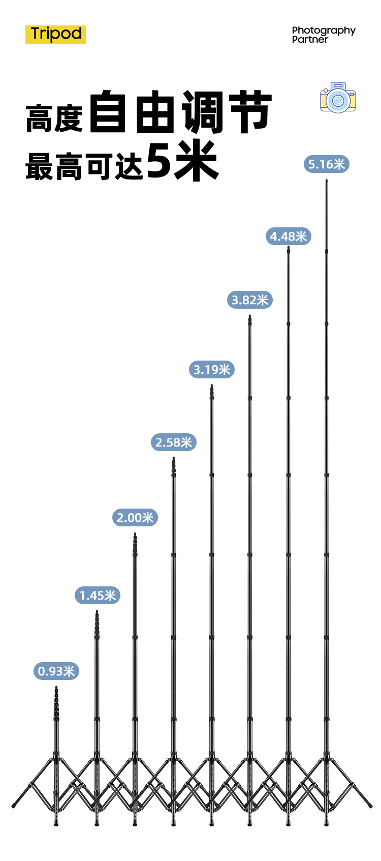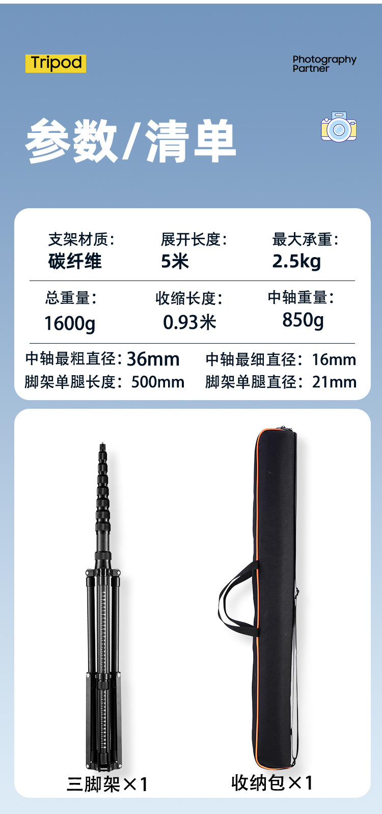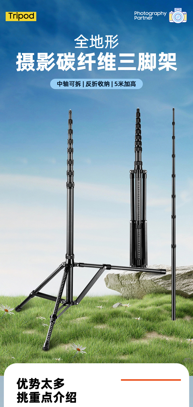 5.3m 초장형 셀카봉 삼각대 탄소섬유 스포츠 카메라 파노라마 휴대폰 연장봉 고화질 촬영 스탠드