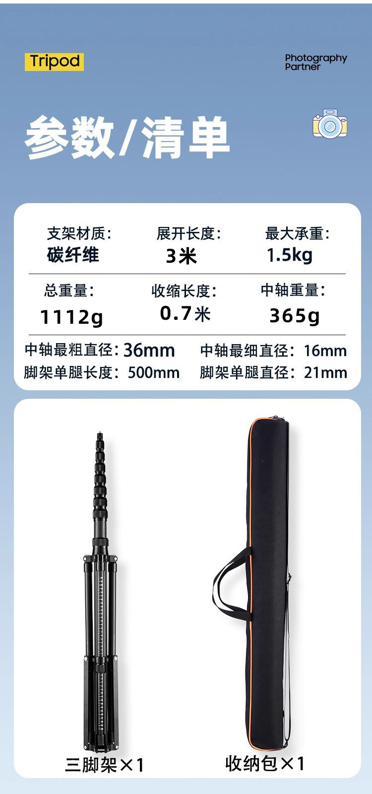 5.3m 초장형 셀카봉 삼각대 탄소섬유 스포츠 카메라 파노라마 휴대폰 연장봉 고화질 촬영 스탠드스토어 가기