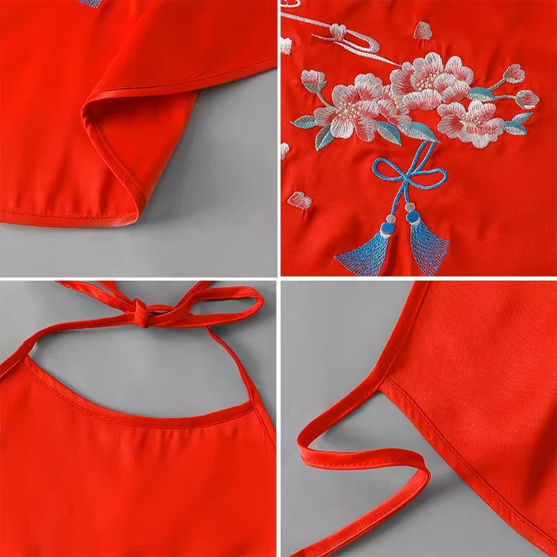 자수 더블 레이어 시뮬레이션 실크 자수 여성 성인 배꼽 벨트 복고풍 중국 스타일 속옷 여성 수 자수 서스펜더 잠옷