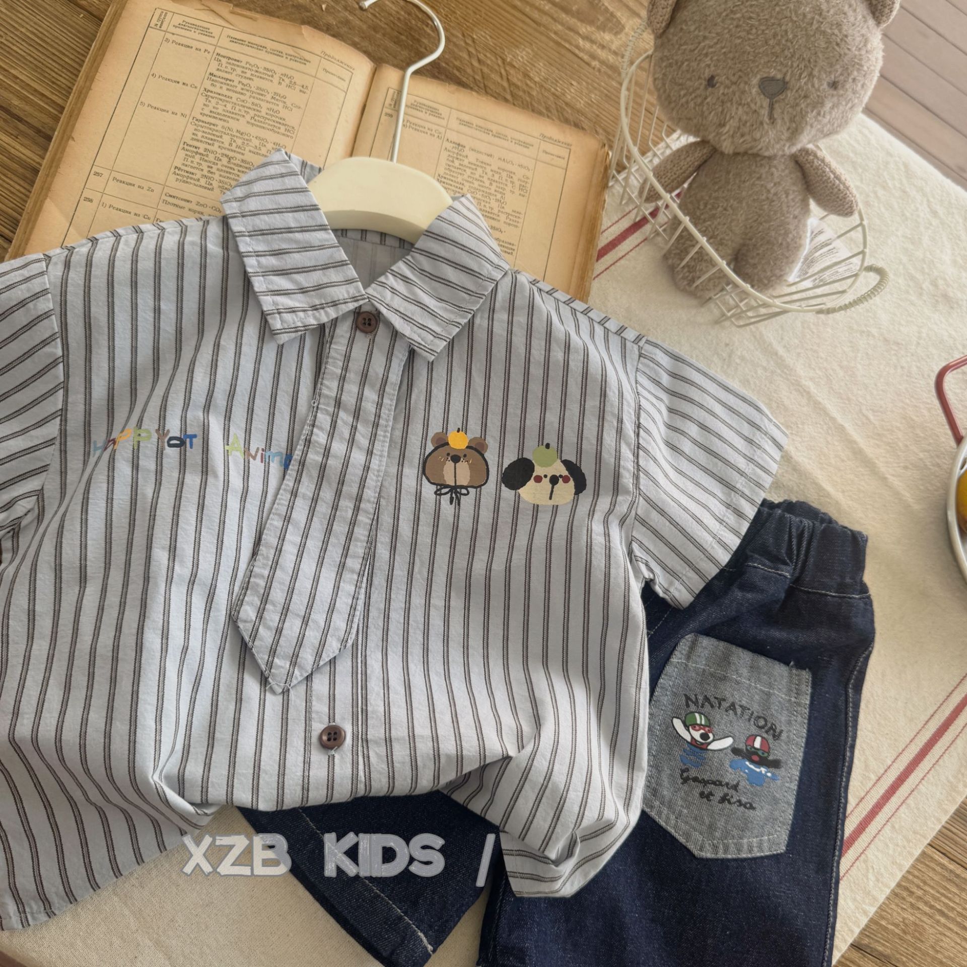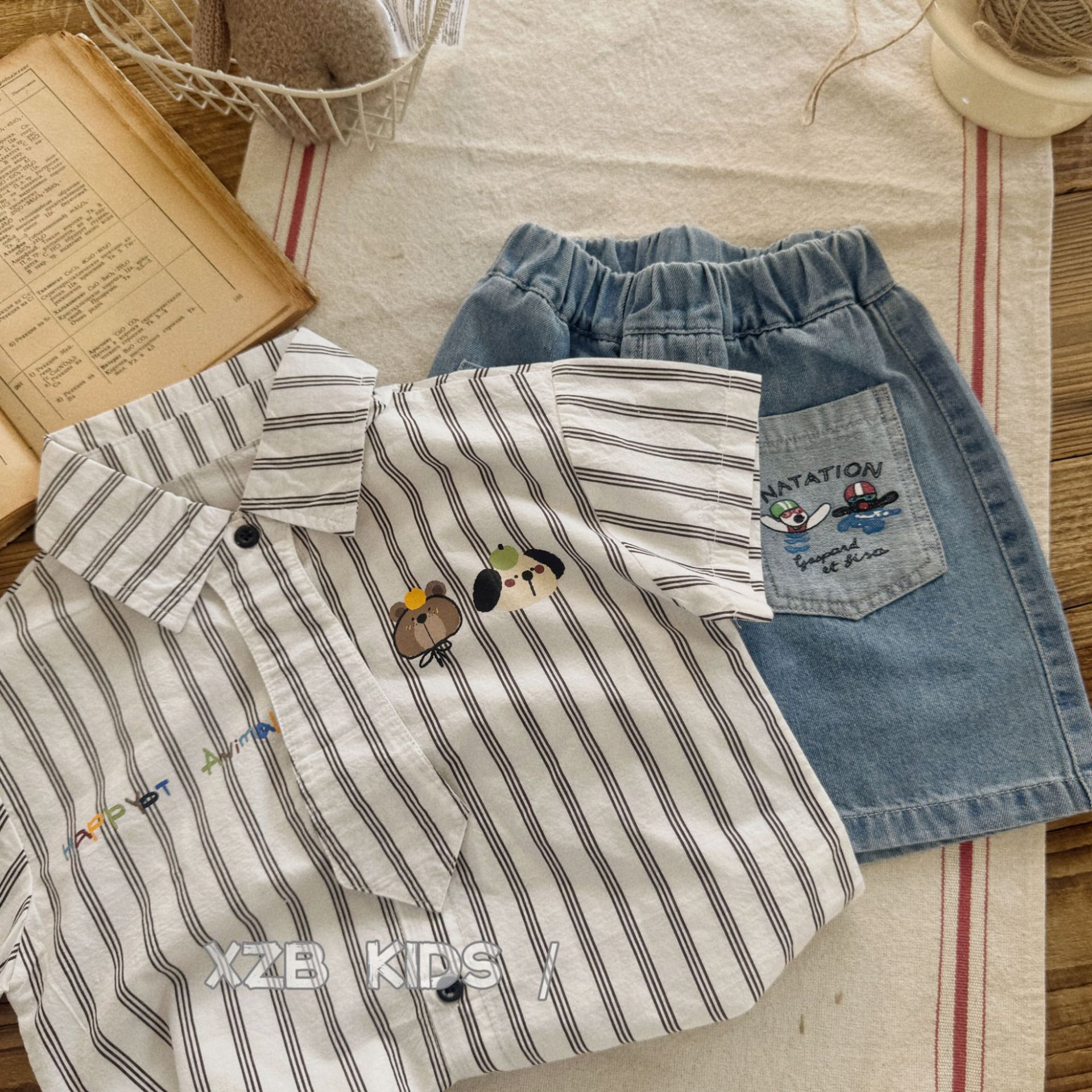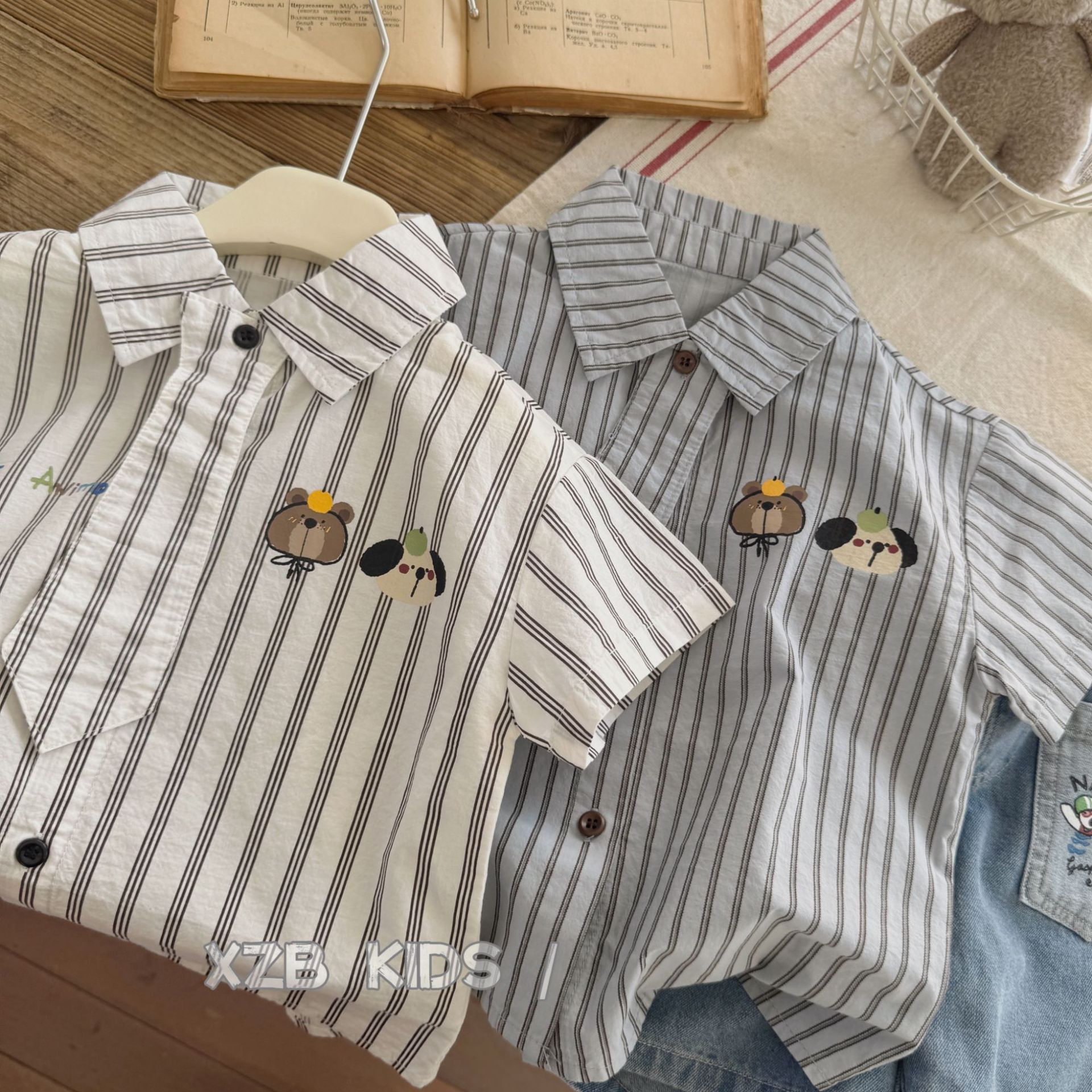 2025 새로운 어린이 수직 줄무늬 셔츠 한국 스타일 어린이 순면 셔츠 그 소녀 아기의 유행 잘 생긴 최고 유행스토어 가기
