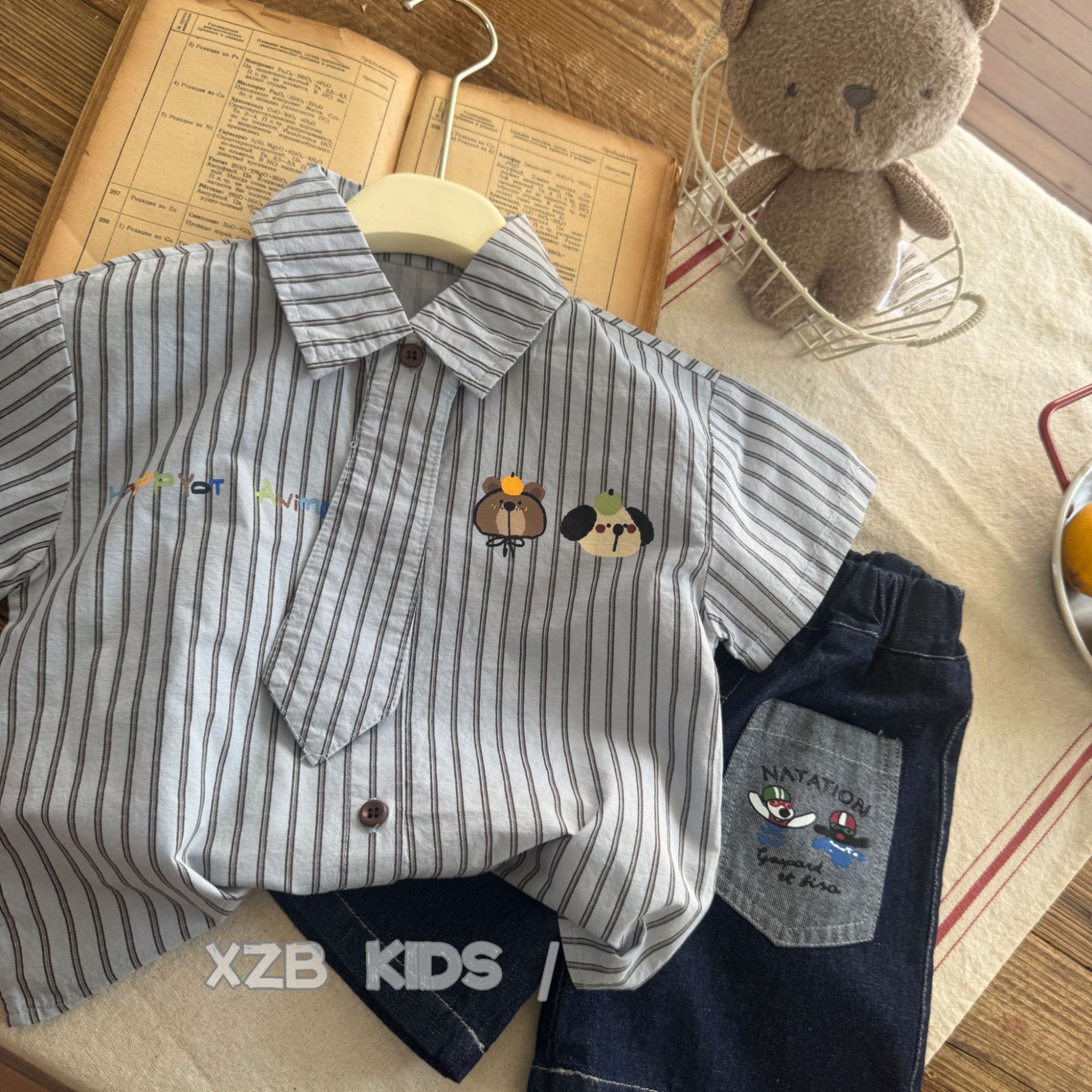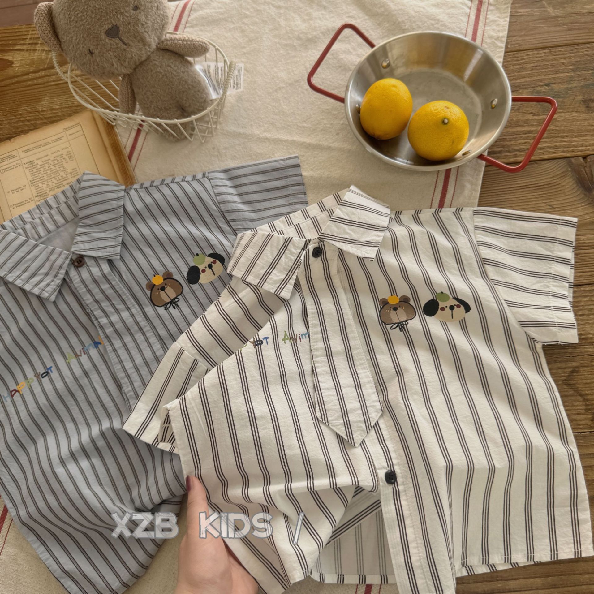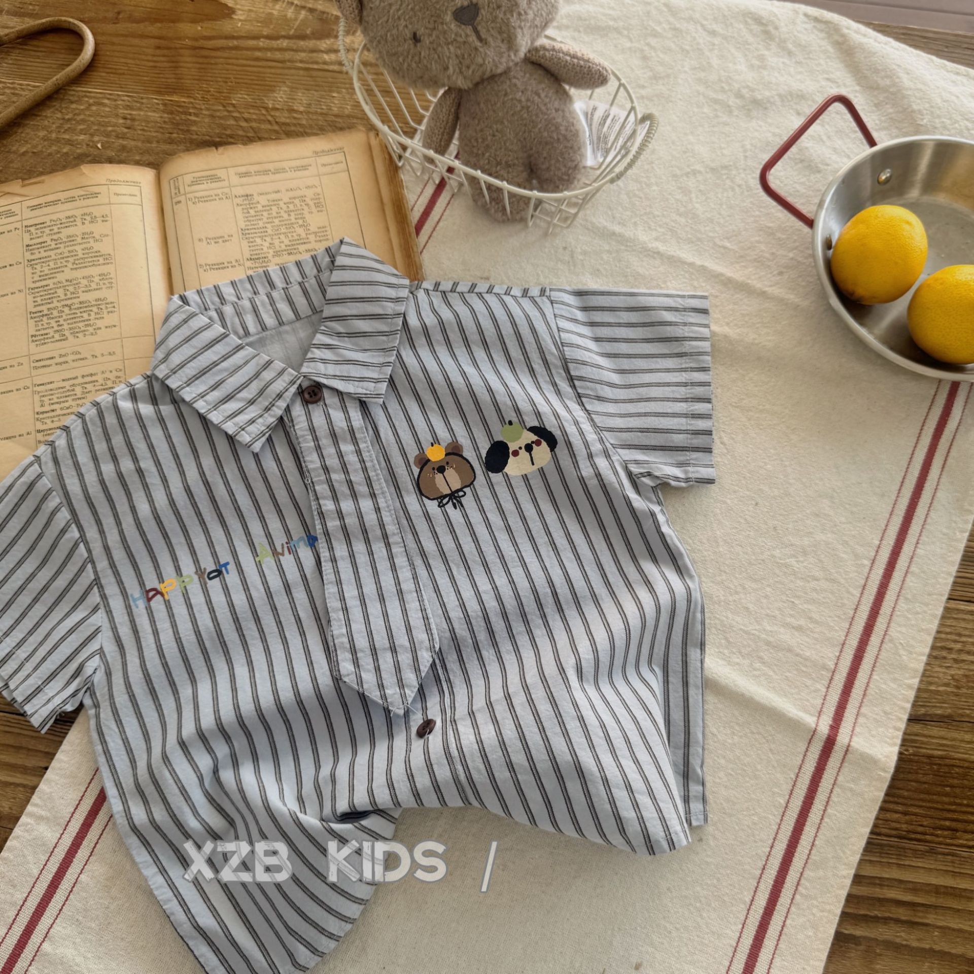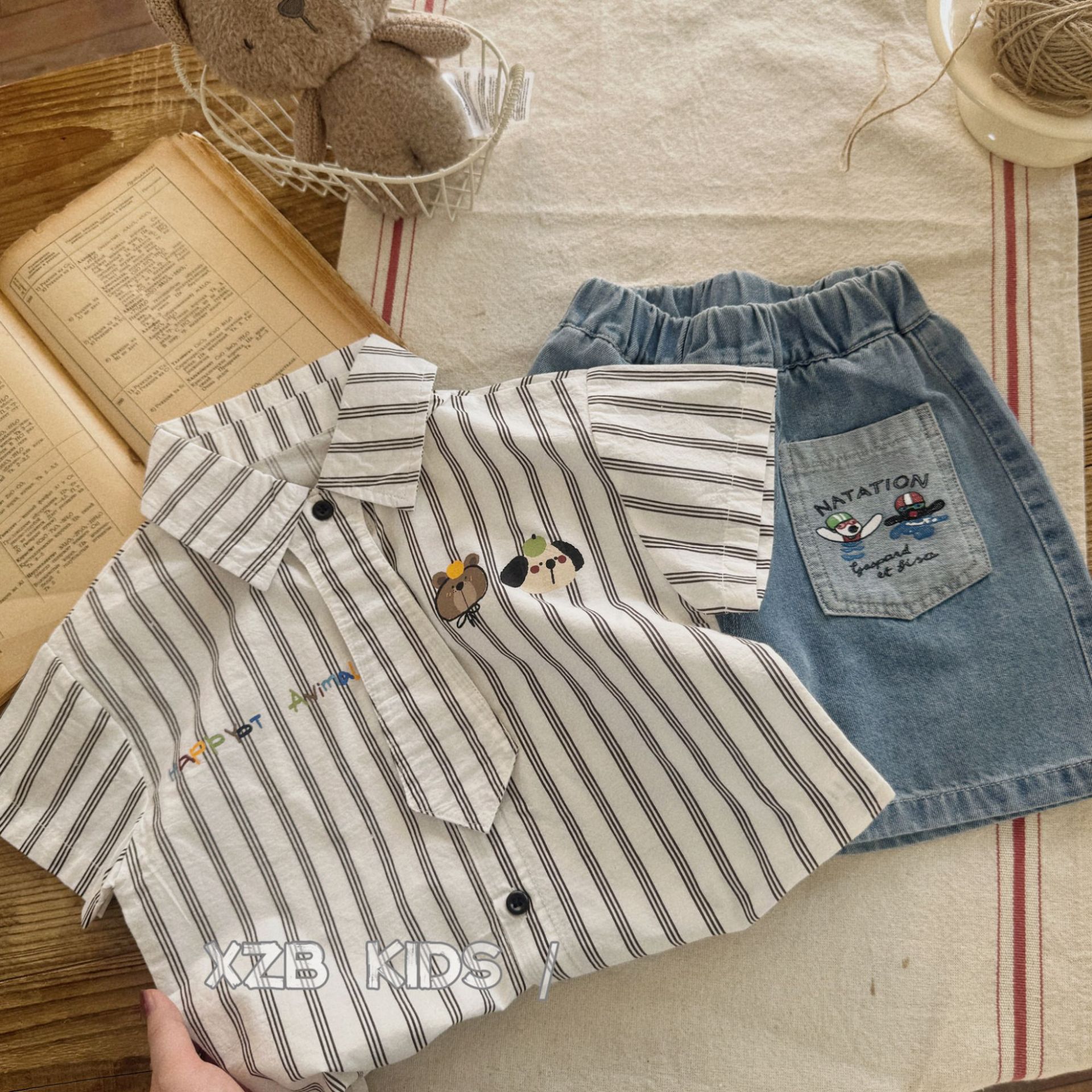 2025 새로운 어린이 수직 줄무늬 셔츠 한국 스타일 어린이 순면 셔츠 그 소녀 아기의 유행 잘 생긴 최고 유행스토어 가기
