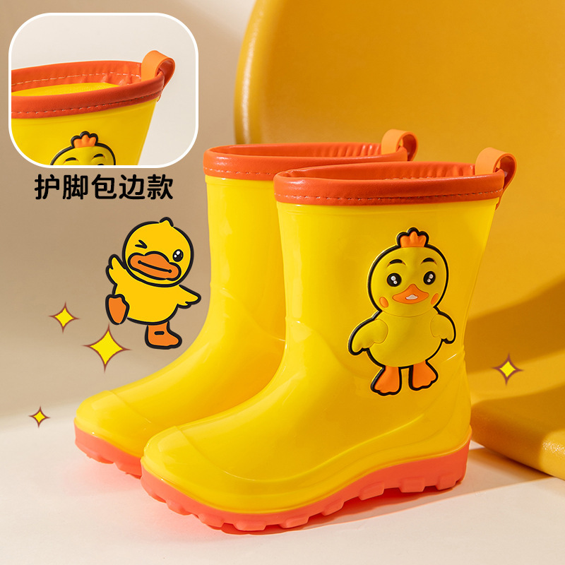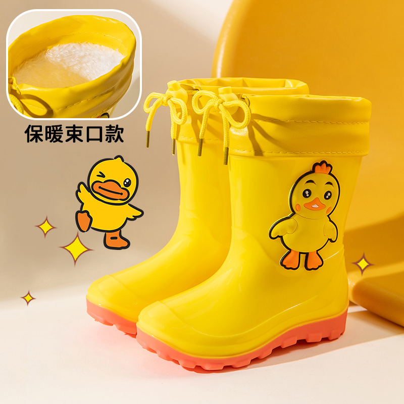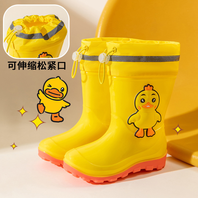 어린이 장화 만화 소년과 소녀 미끄럼 방지 장화 덧신 유치원 학생 방수 신발 어린이 아기 고무 신발